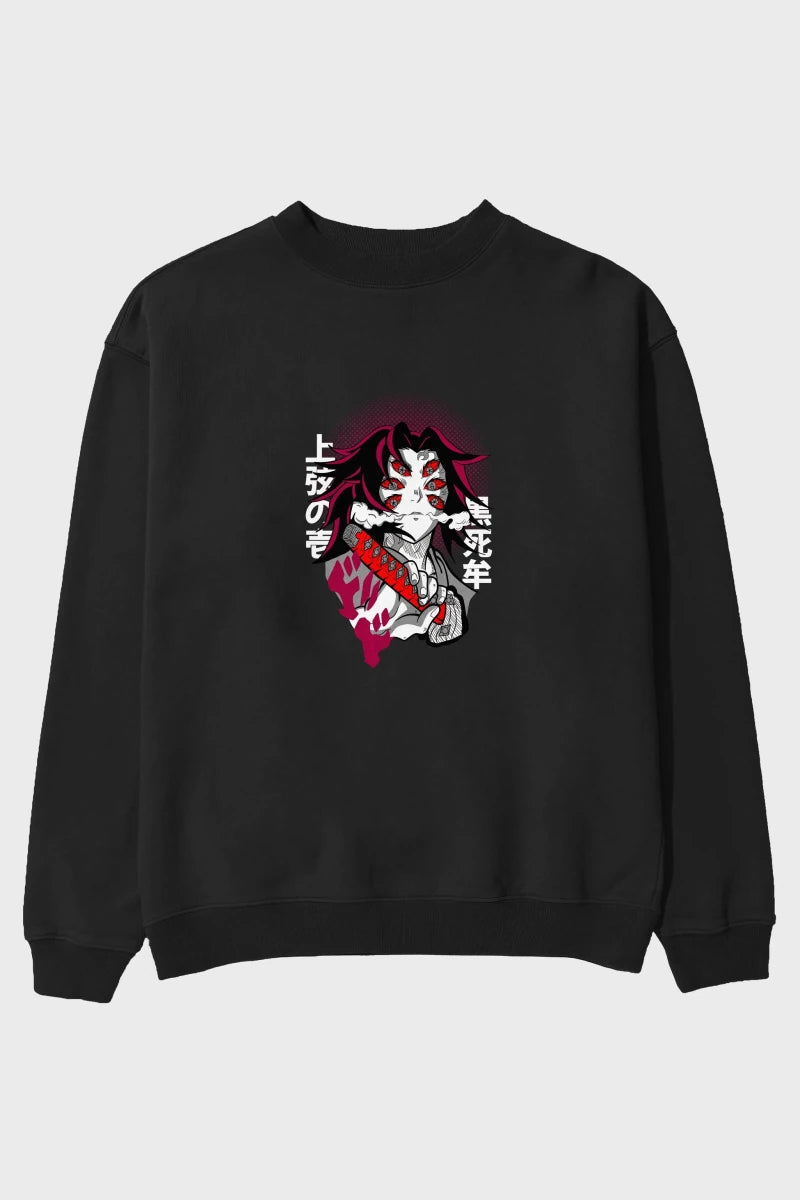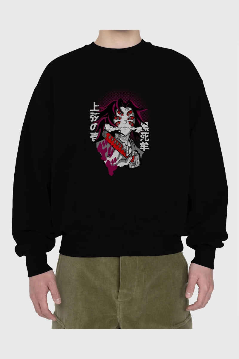 kokushibo DEMON SLAYER Anime Ön Baskılı Oversize Sweatshirt Erkek Kadın Unisex