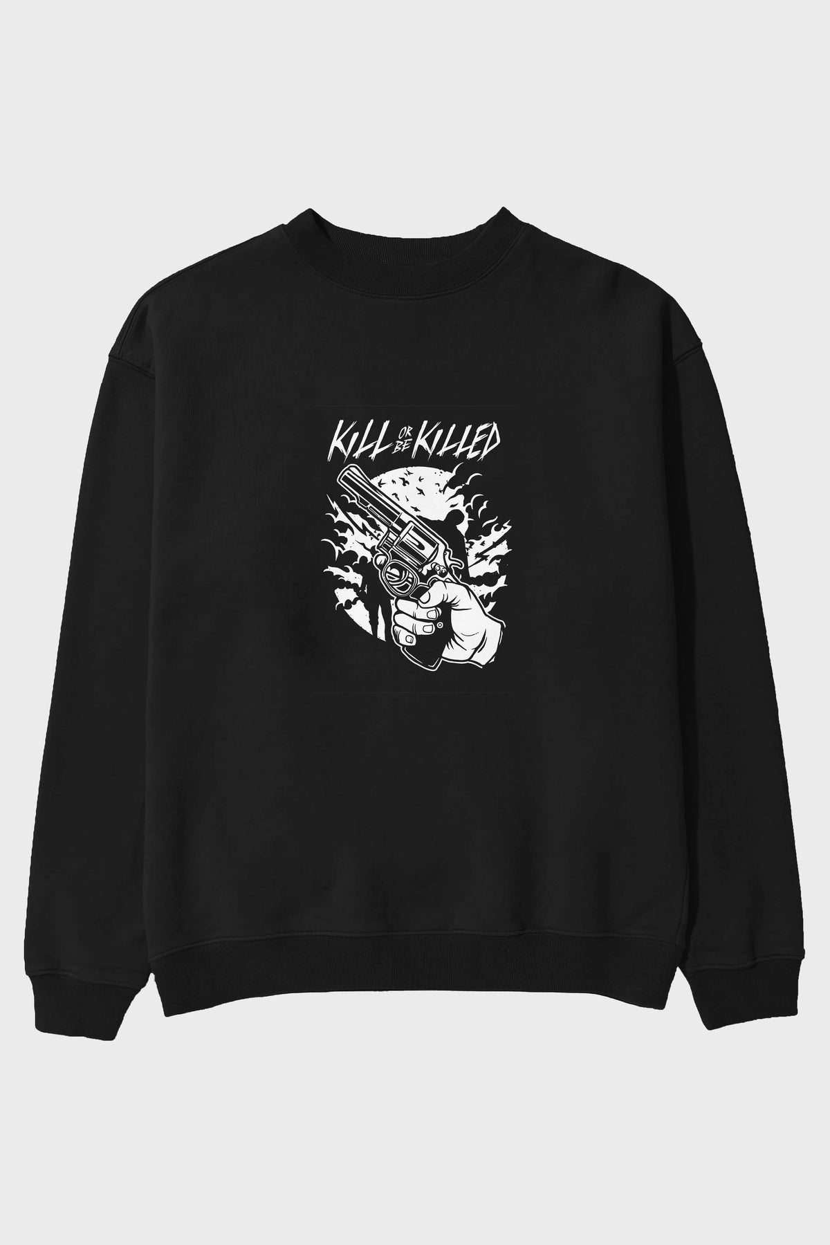 Zombie Shooter Ön Baskılı Oversize Sweatshirt Erkek Kadın Unisex