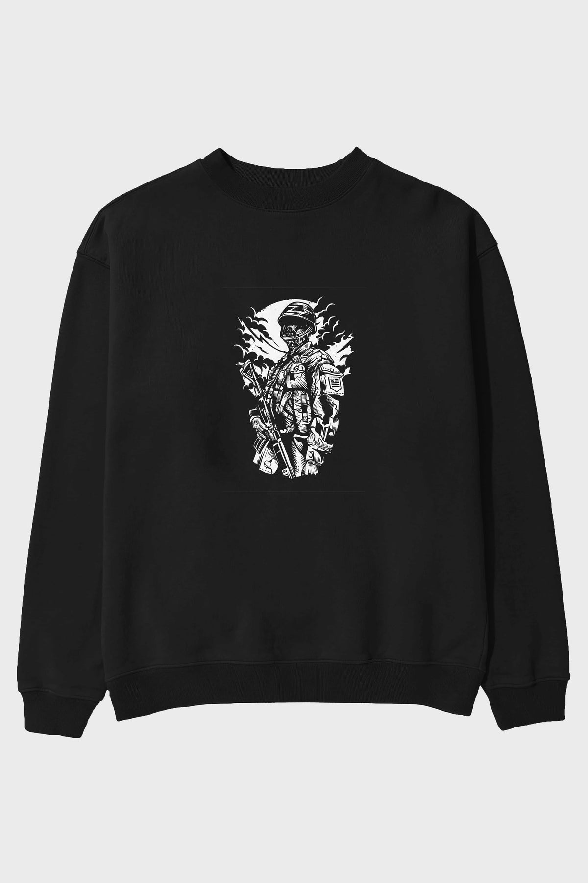 Zombie Soldier Ön Baskılı Oversize Sweatshirt Erkek Kadın Unisex