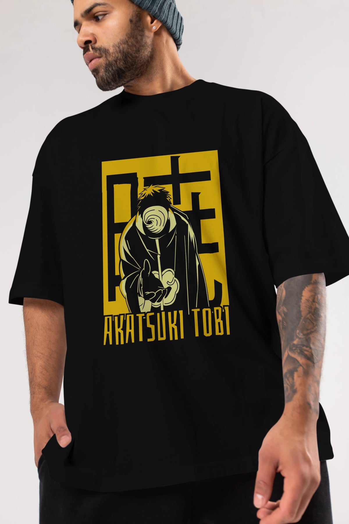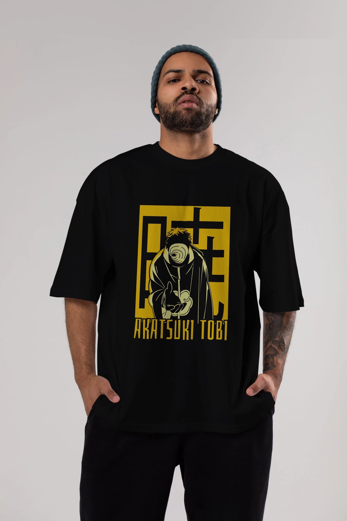 AKATSUKI OBITO NARUTO Anime Ön Baskılı Oversize t-shirt %100 pamuk Erkek Kadın Unisex