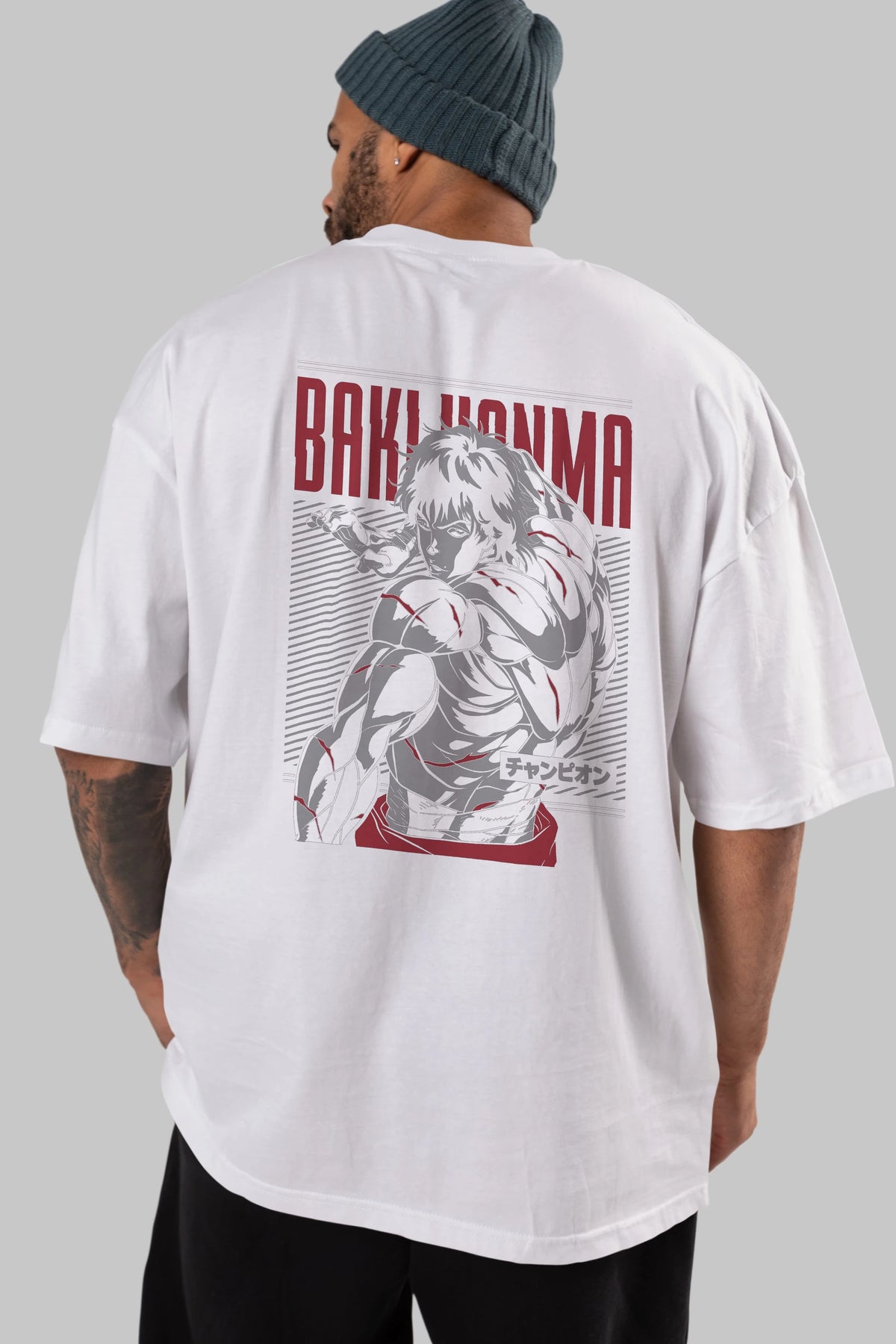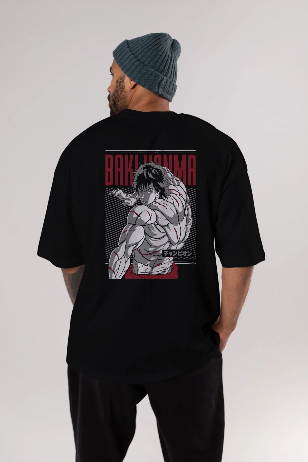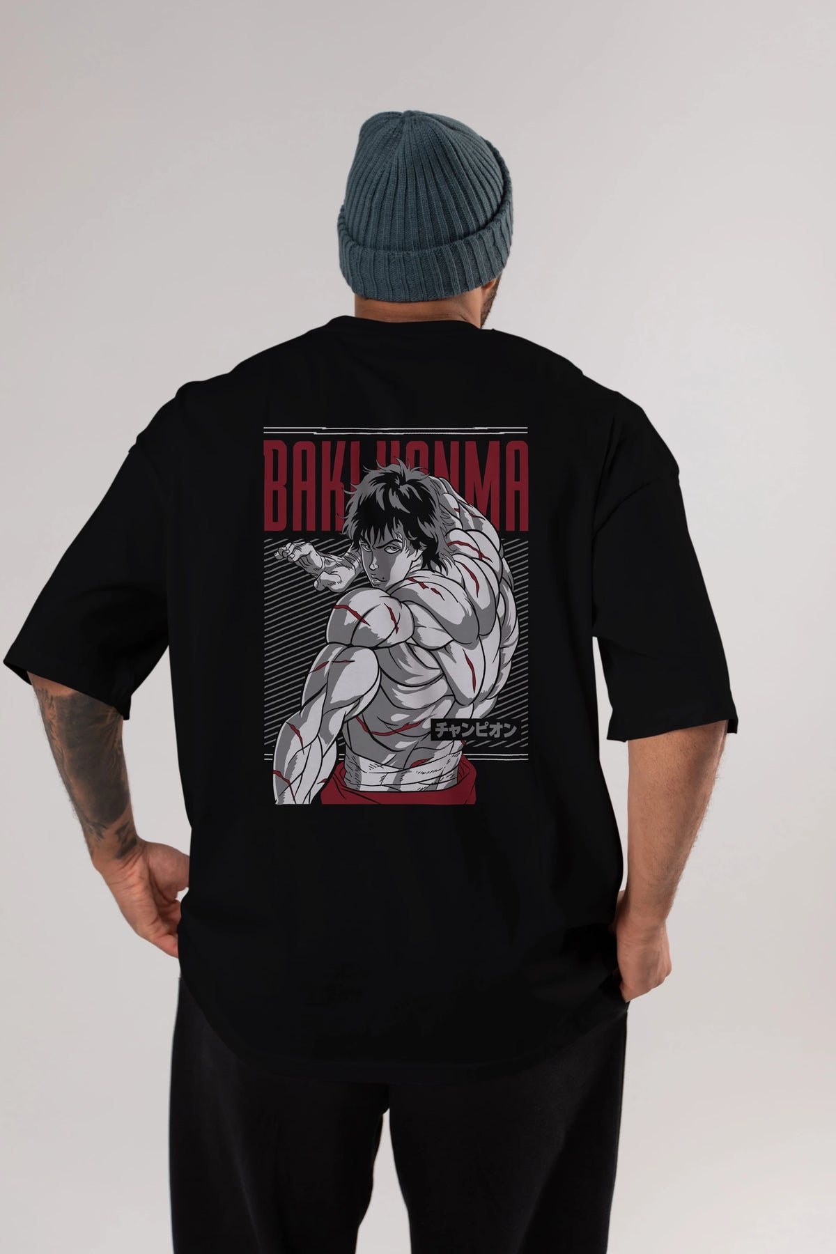 BAKI HANMA Anime Arka Baskılı Oversize t-shirt Erkek Kadın Unisex