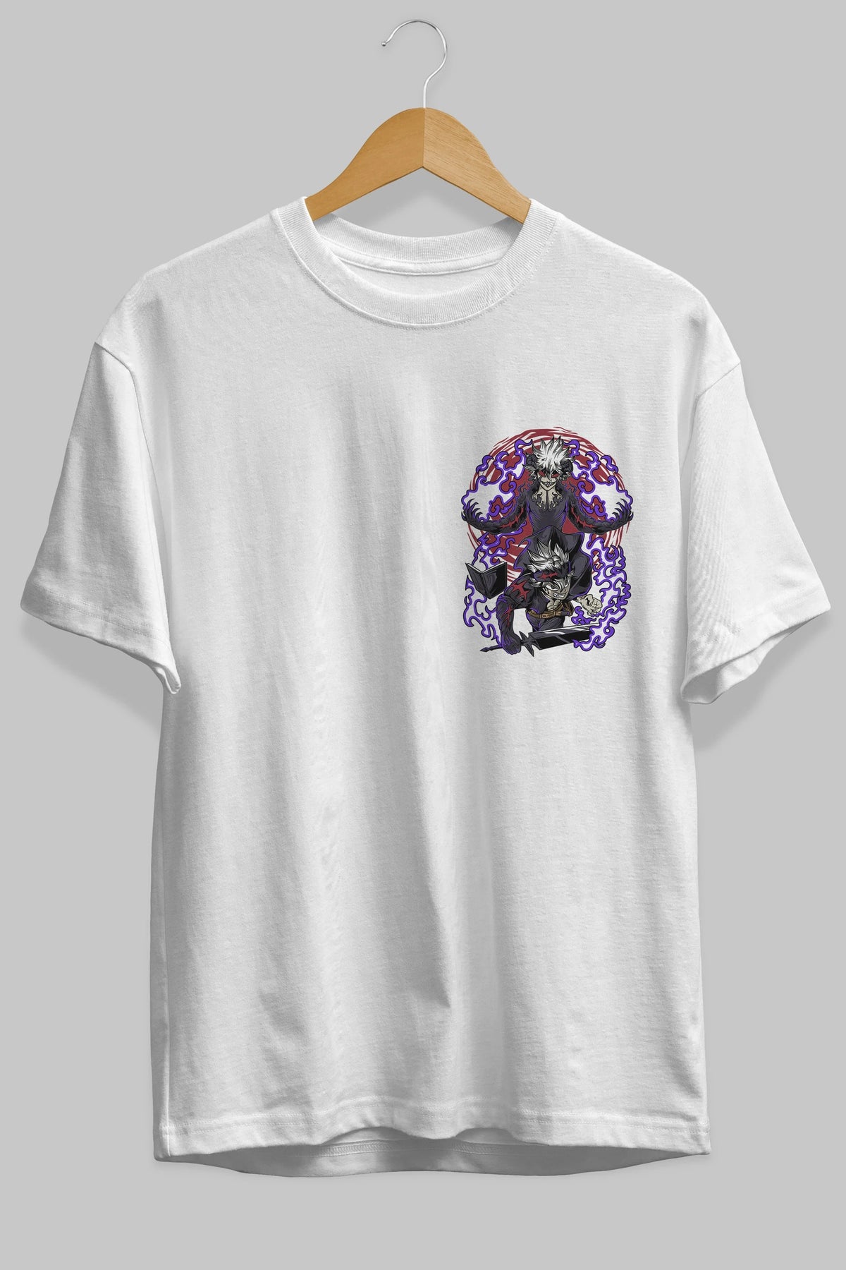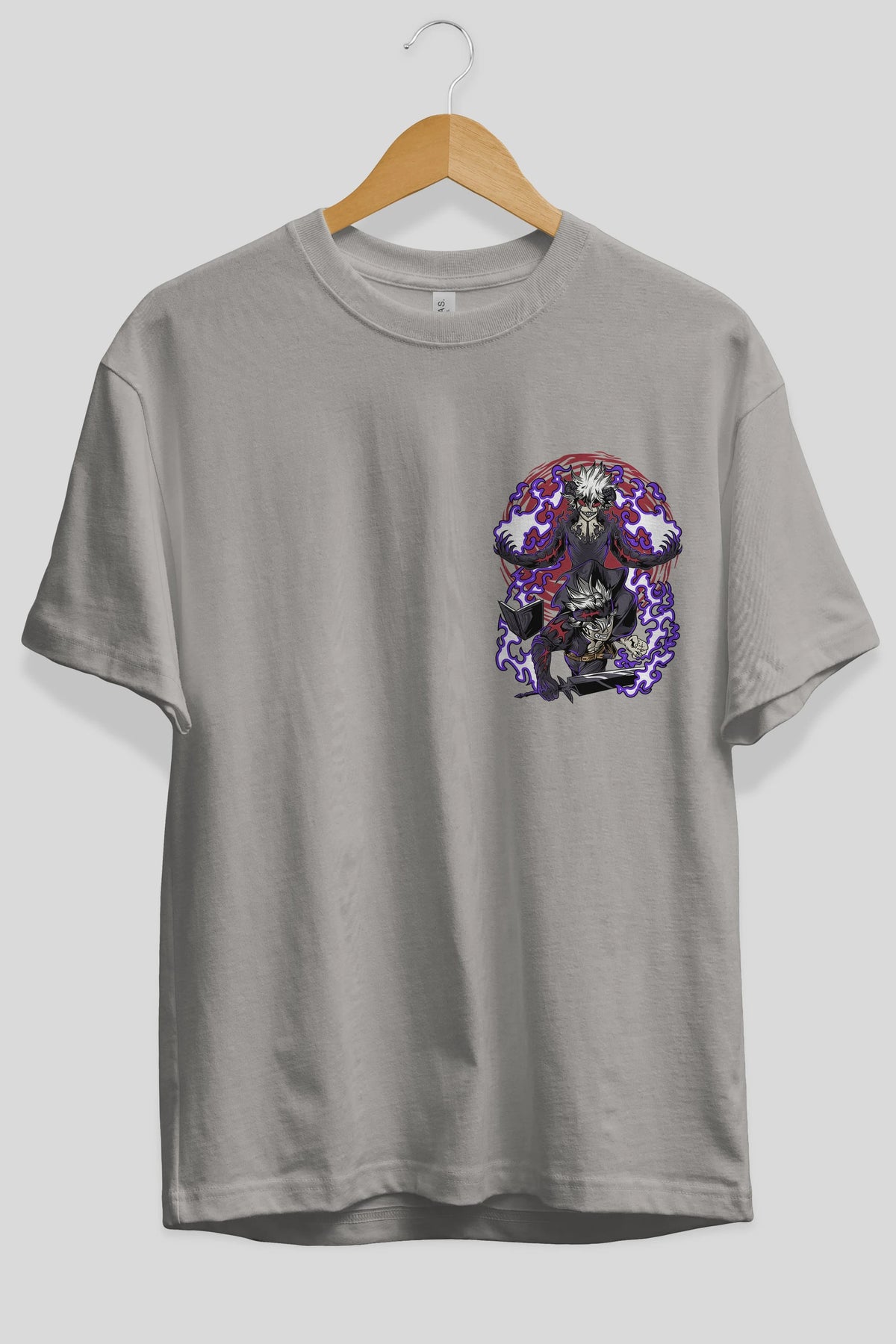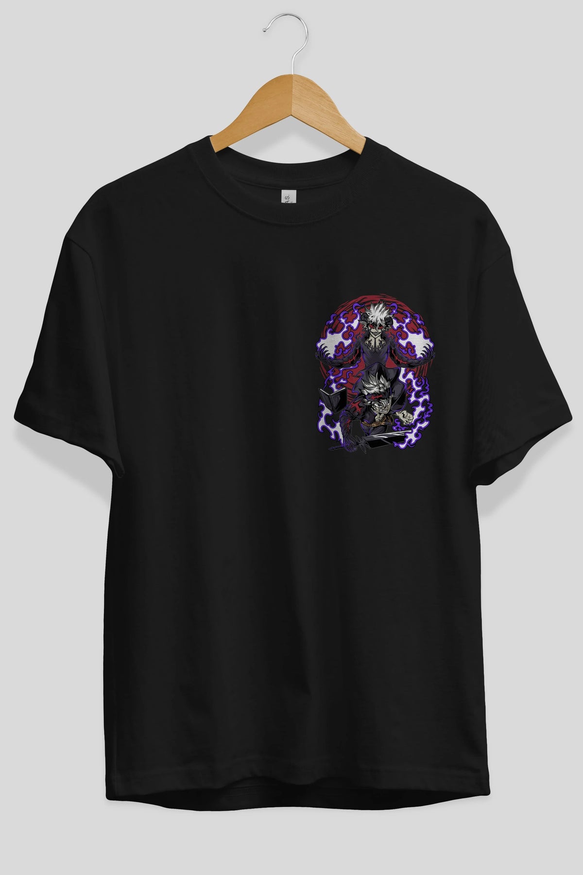 BLACK CLOVER DEVIL UNION Ön Sol Baskılı Oversize t-shirt Erkek Kadın Unisex %100 Pamuk Bisiklet Yaka tişort