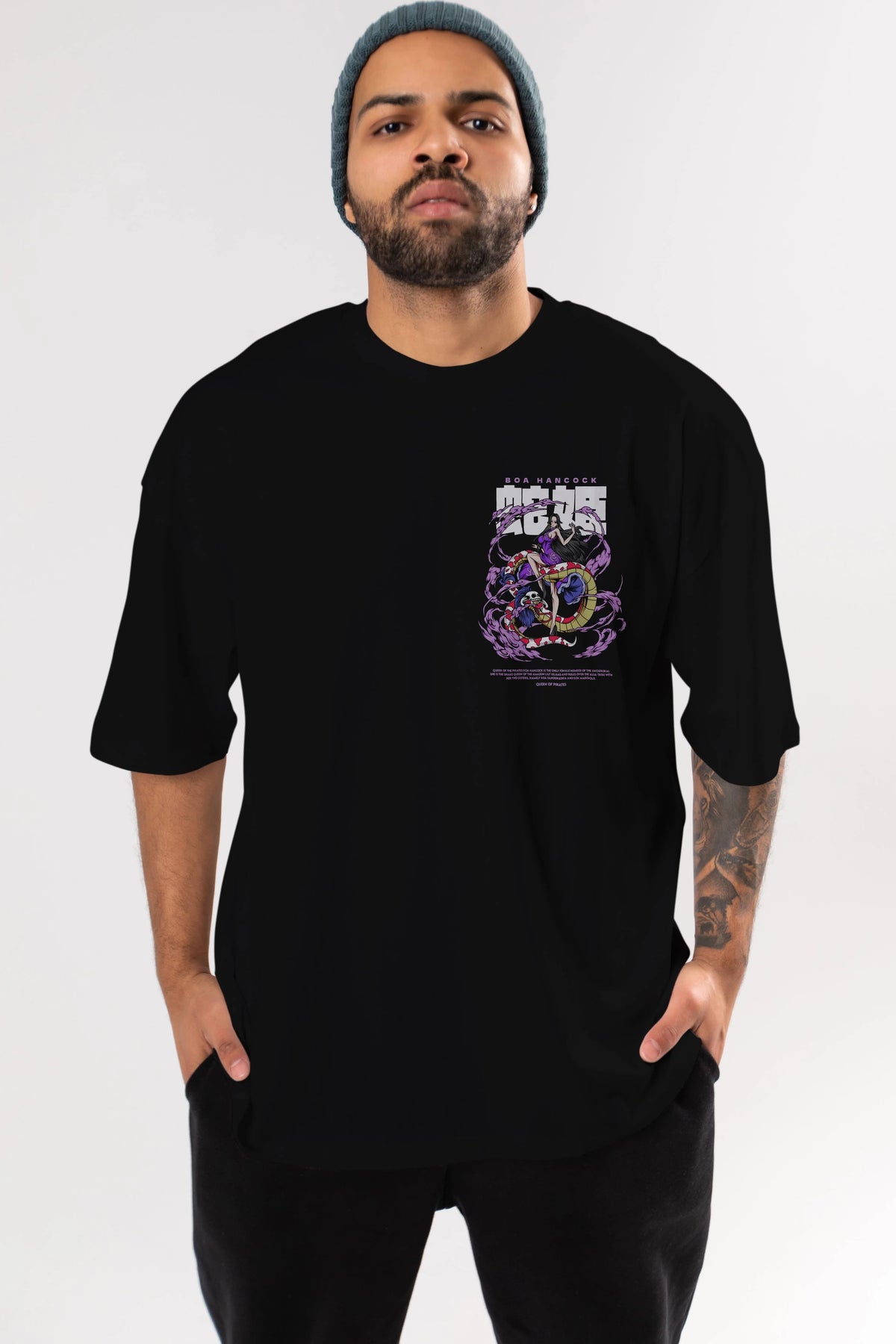 Boa Hancock Ön Sol Baskılı Oversize t-shirt Erkek Kadın Unisex %100 Pamuk Bisiklet Yaka tişort