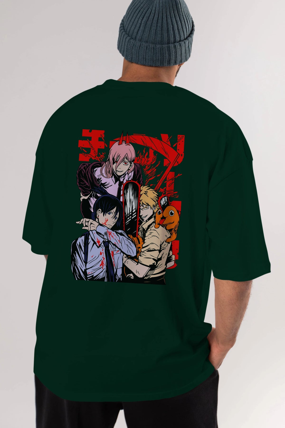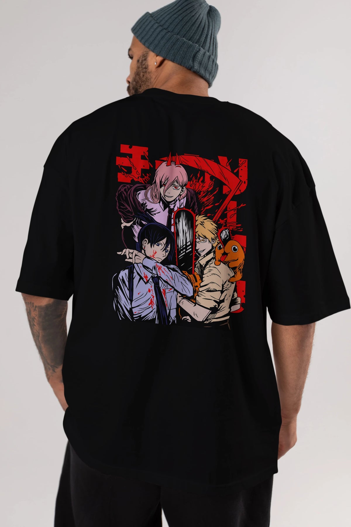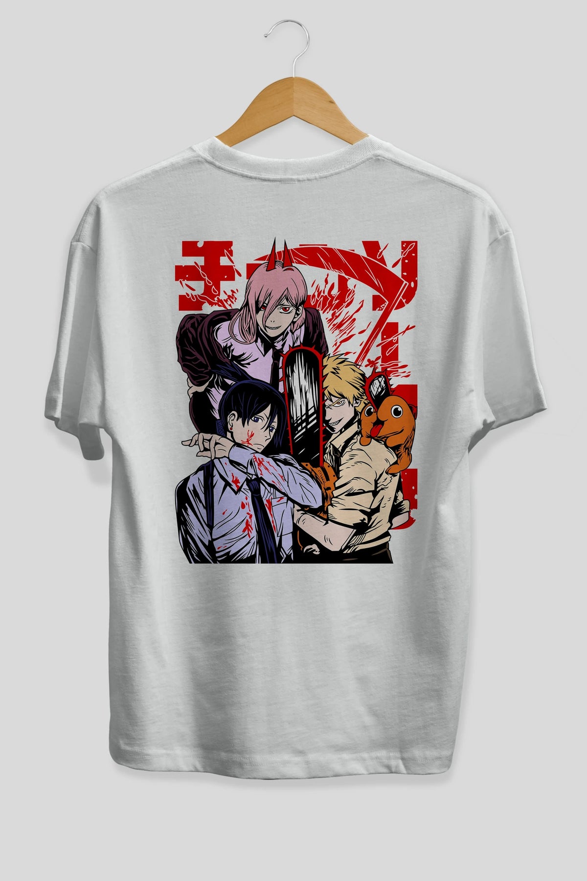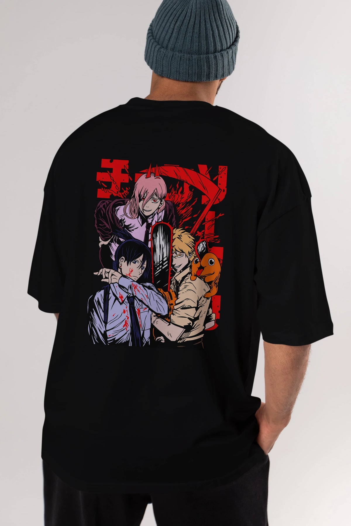 CHAINSAWMAN CREW Anime Arka Baskılı Oversize t-shirt Erkek Kadın Unisex