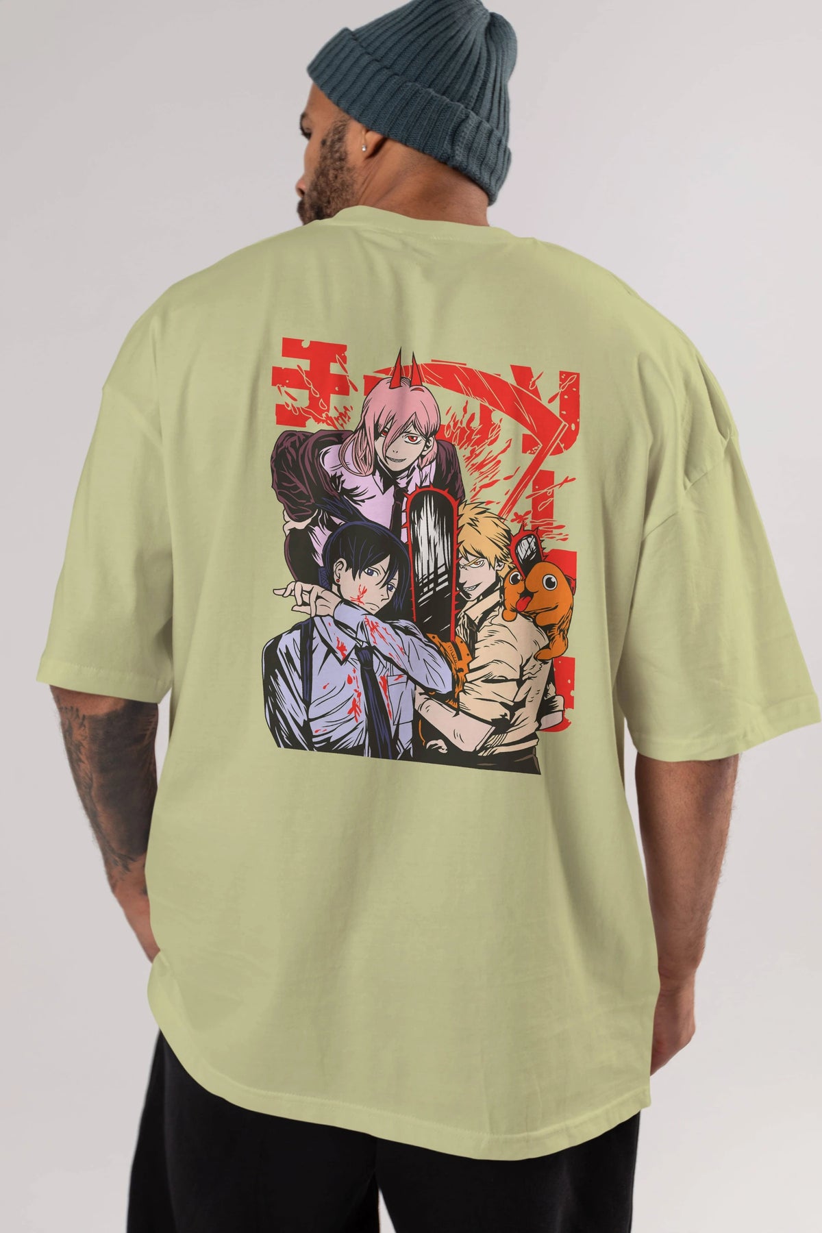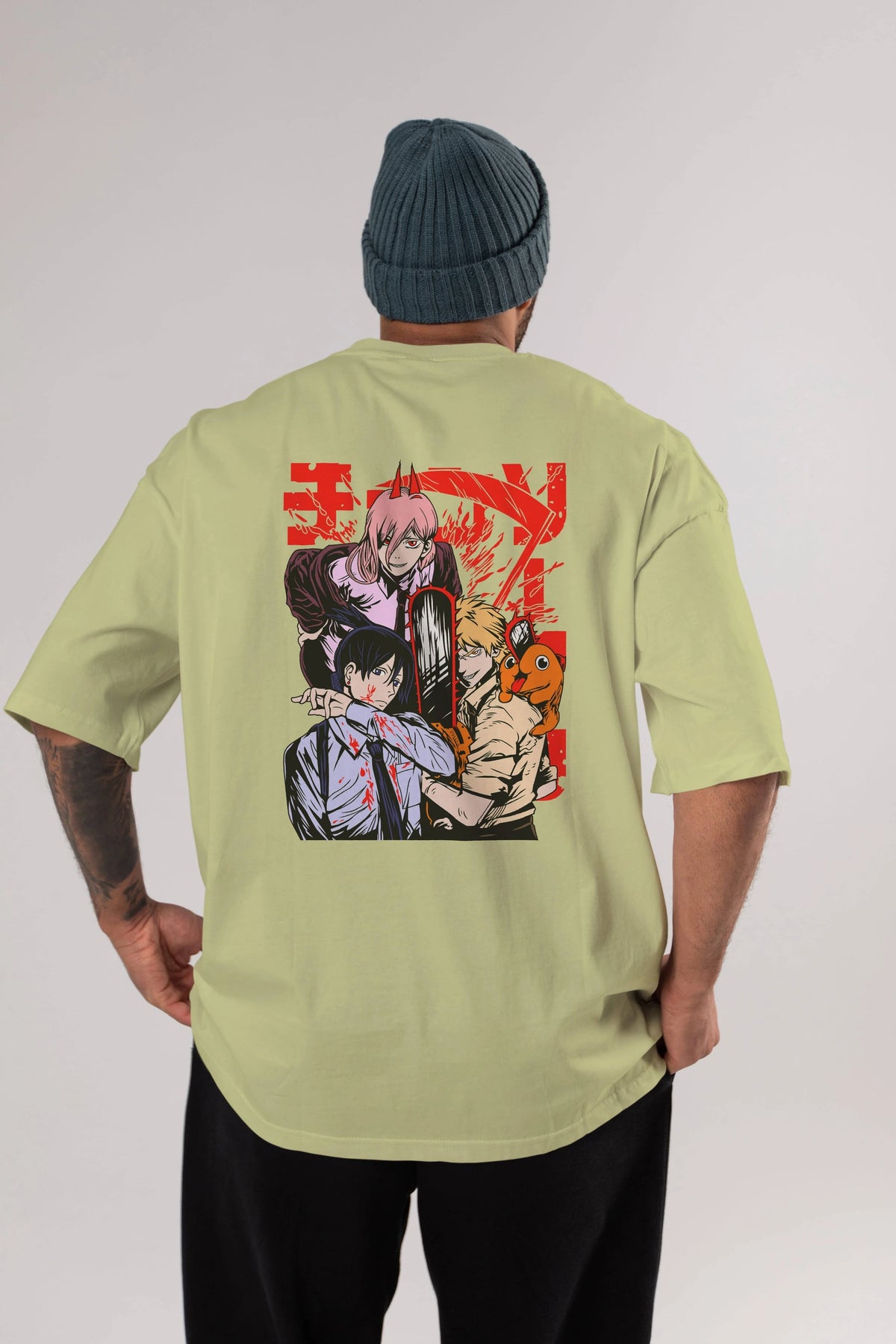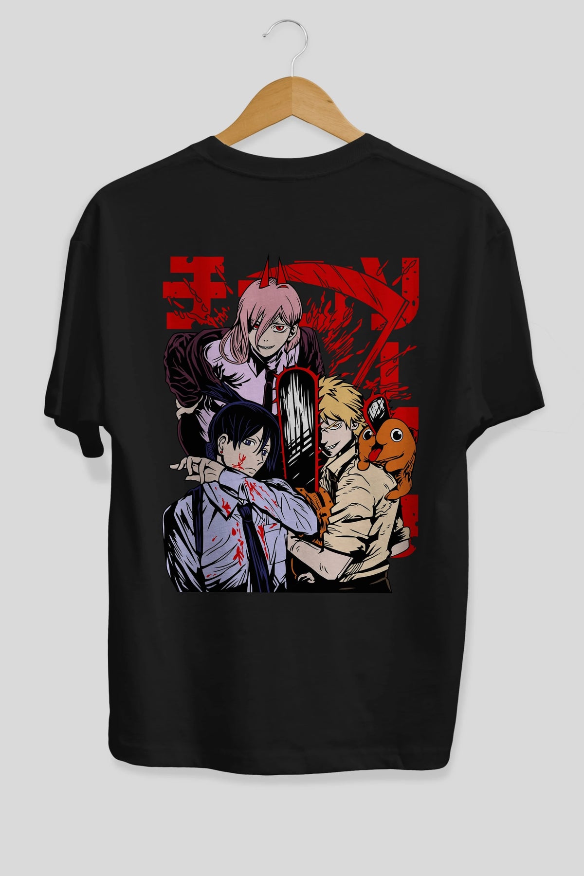 CHAINSAWMAN CREW Anime Arka Baskılı Oversize t-shirt Erkek Kadın Unisex