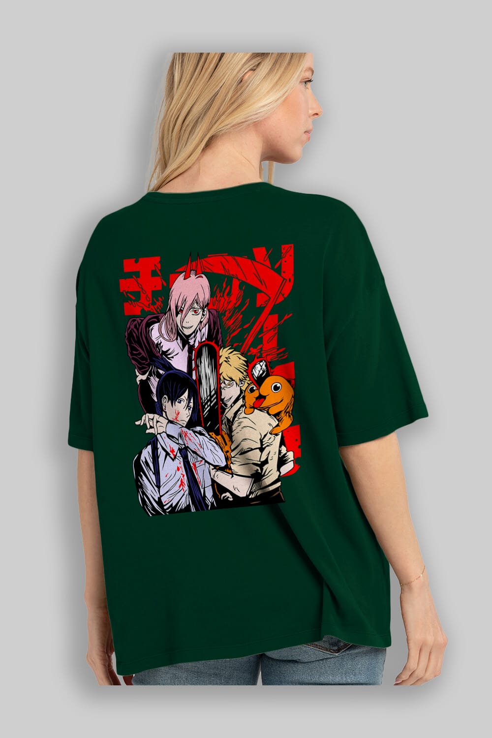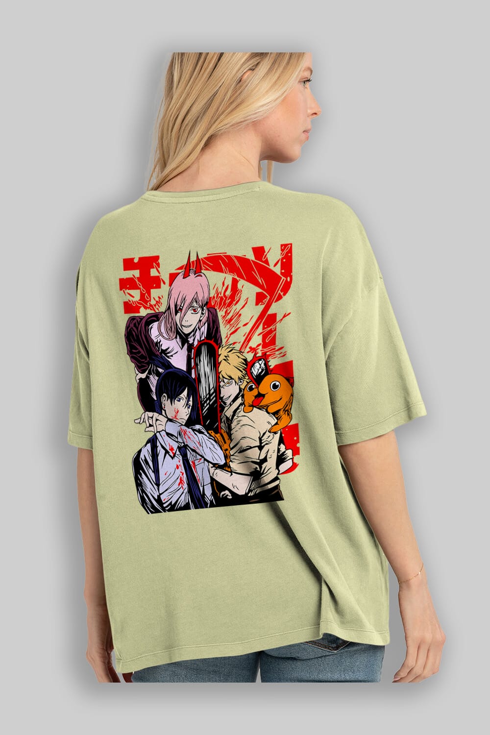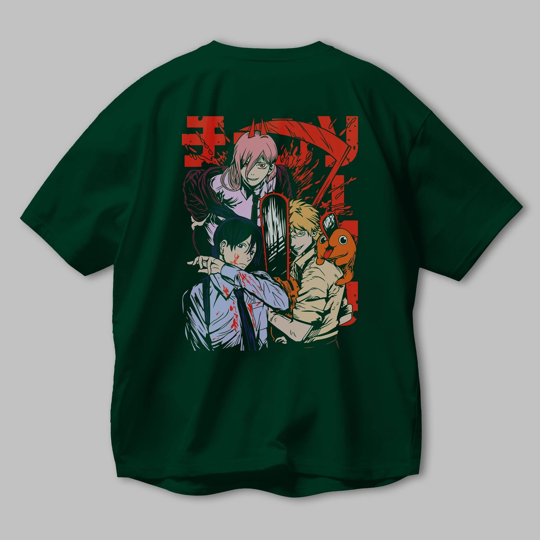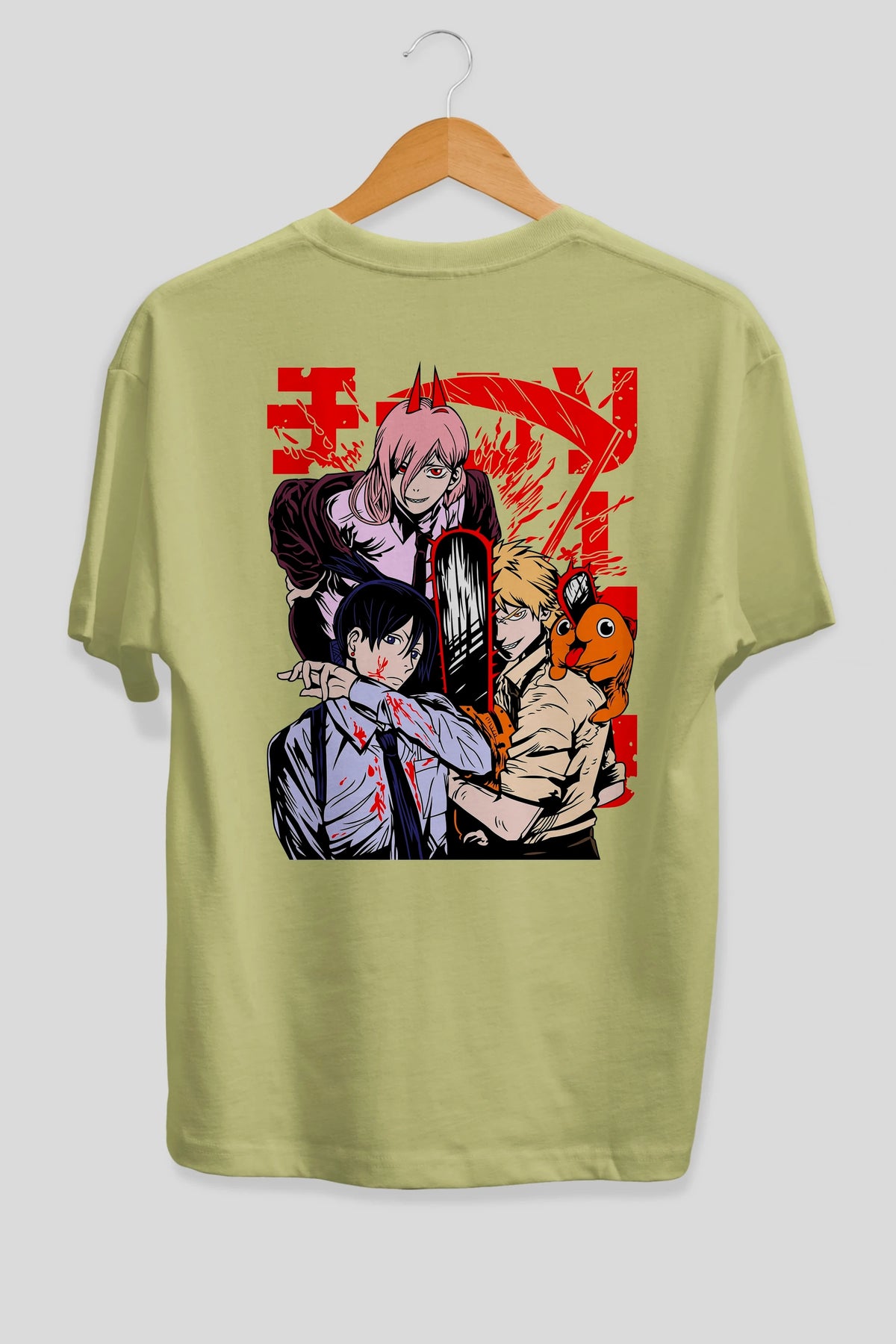 CHAINSAWMAN CREW Anime Arka Baskılı Oversize t-shirt Erkek Kadın Unisex
