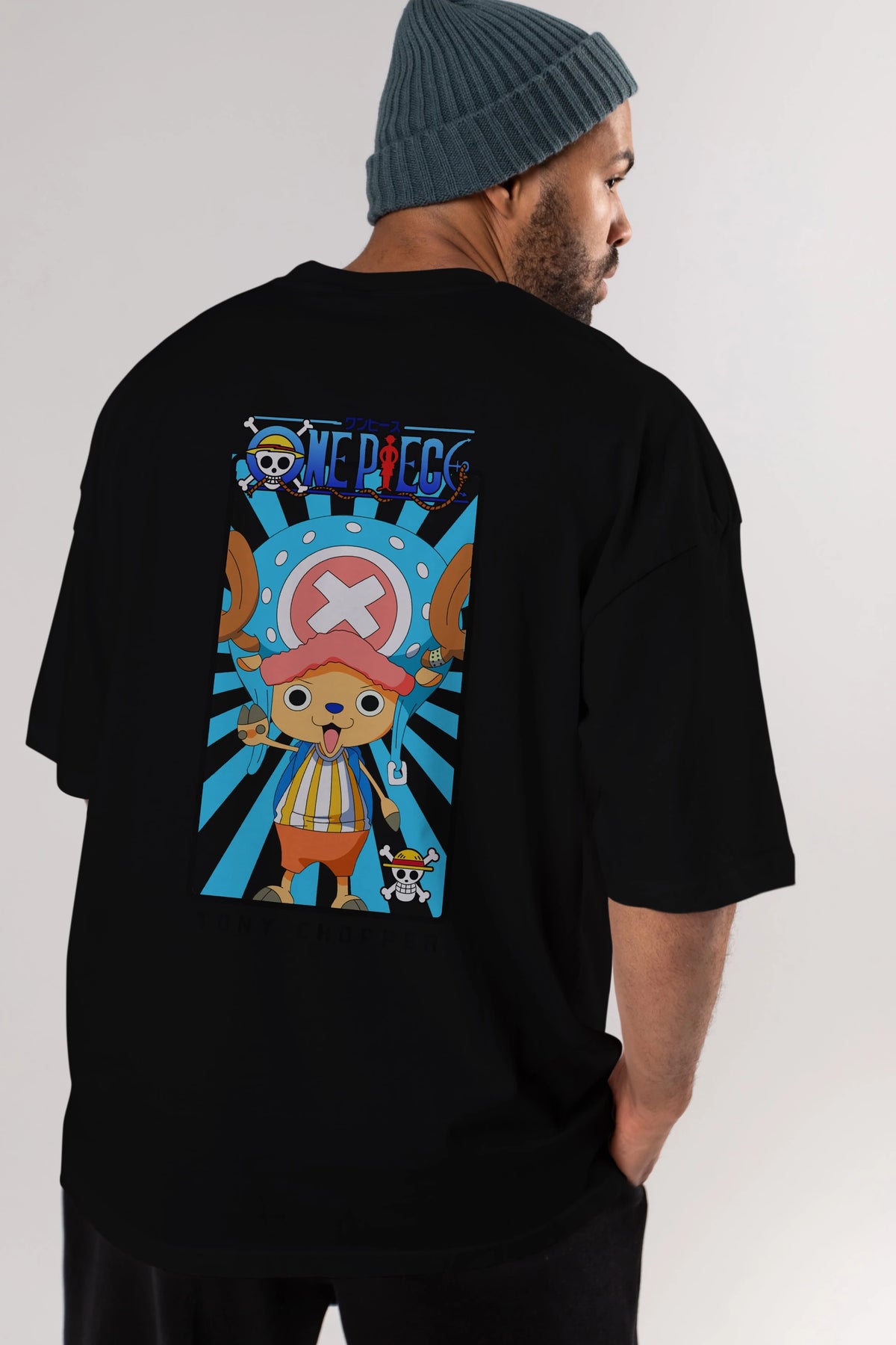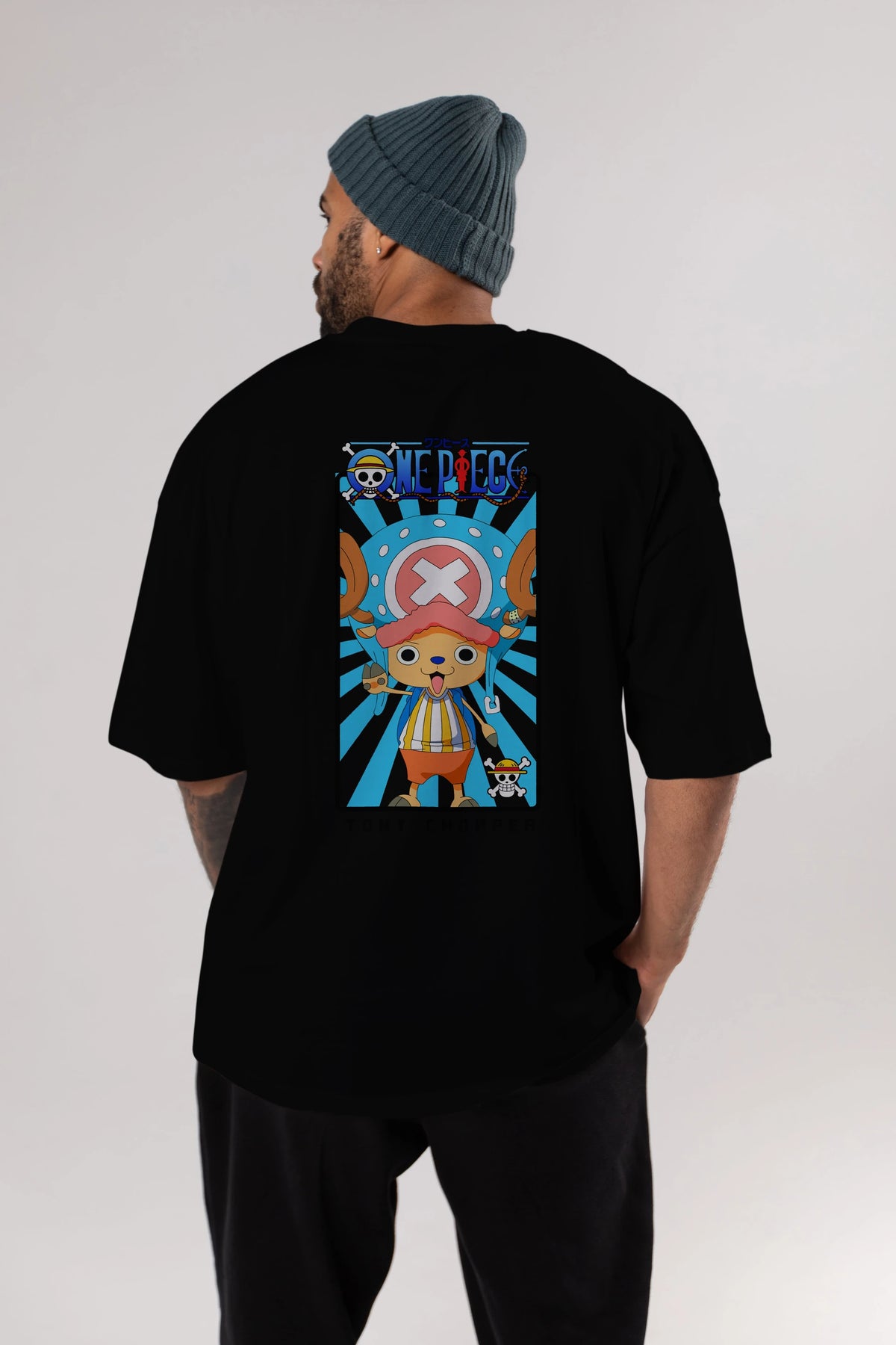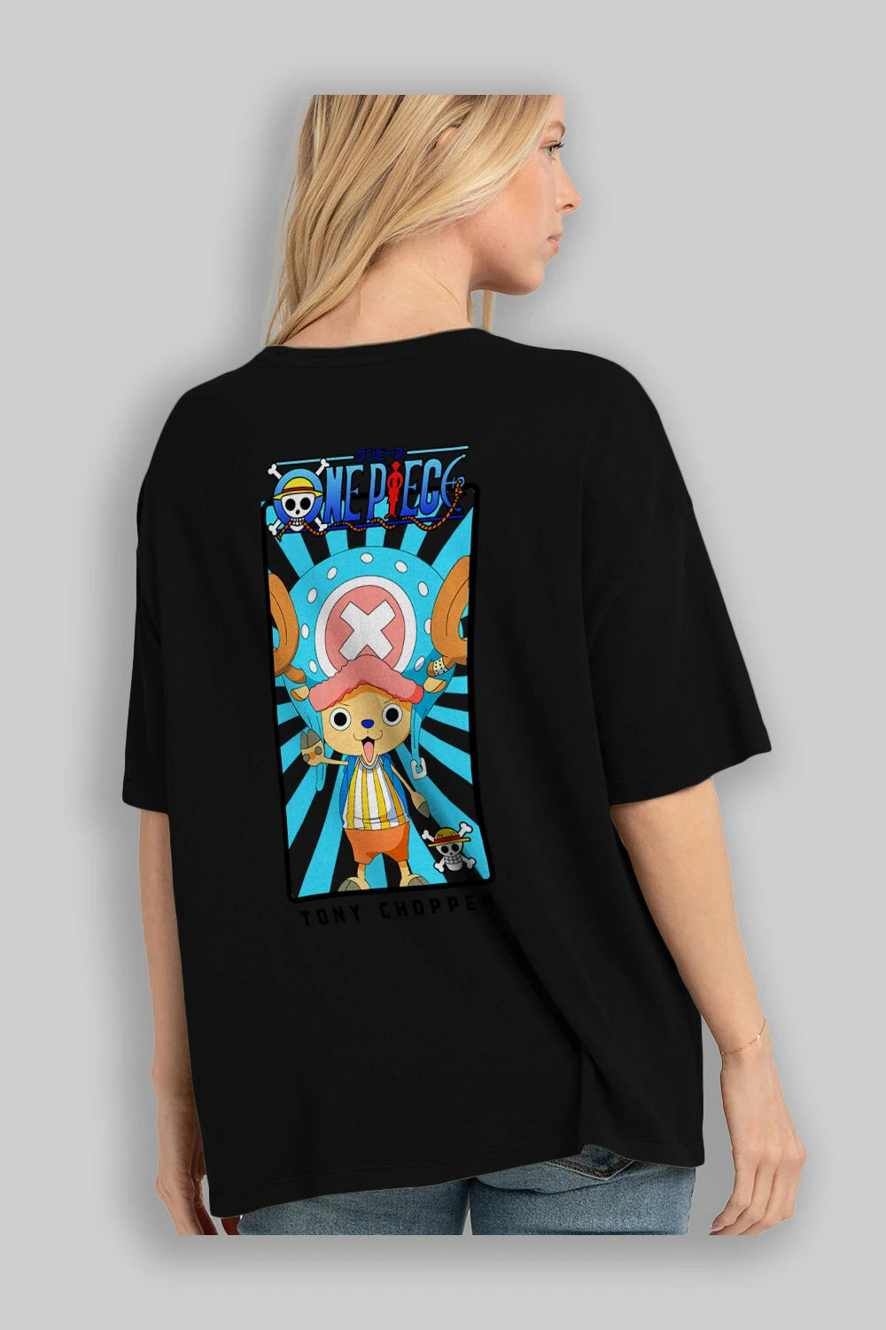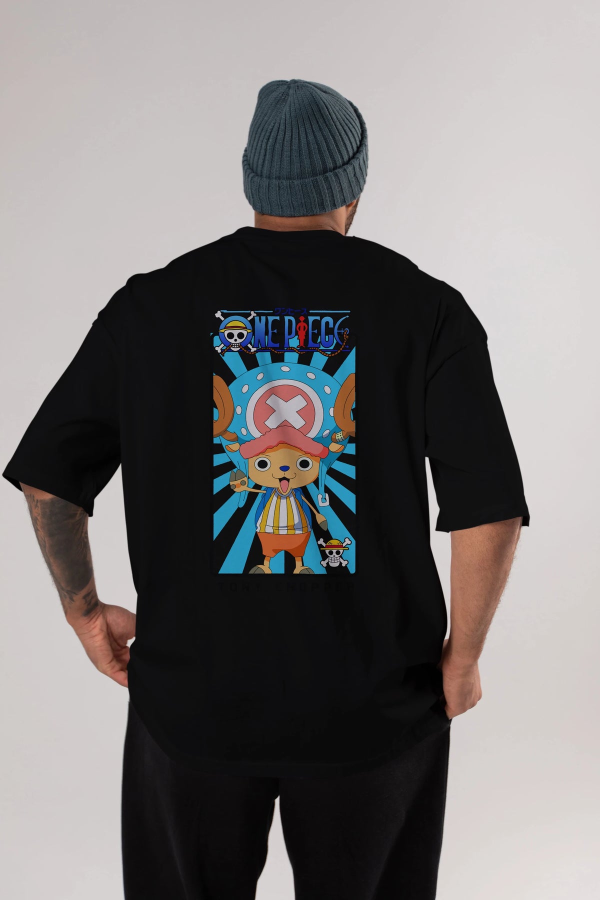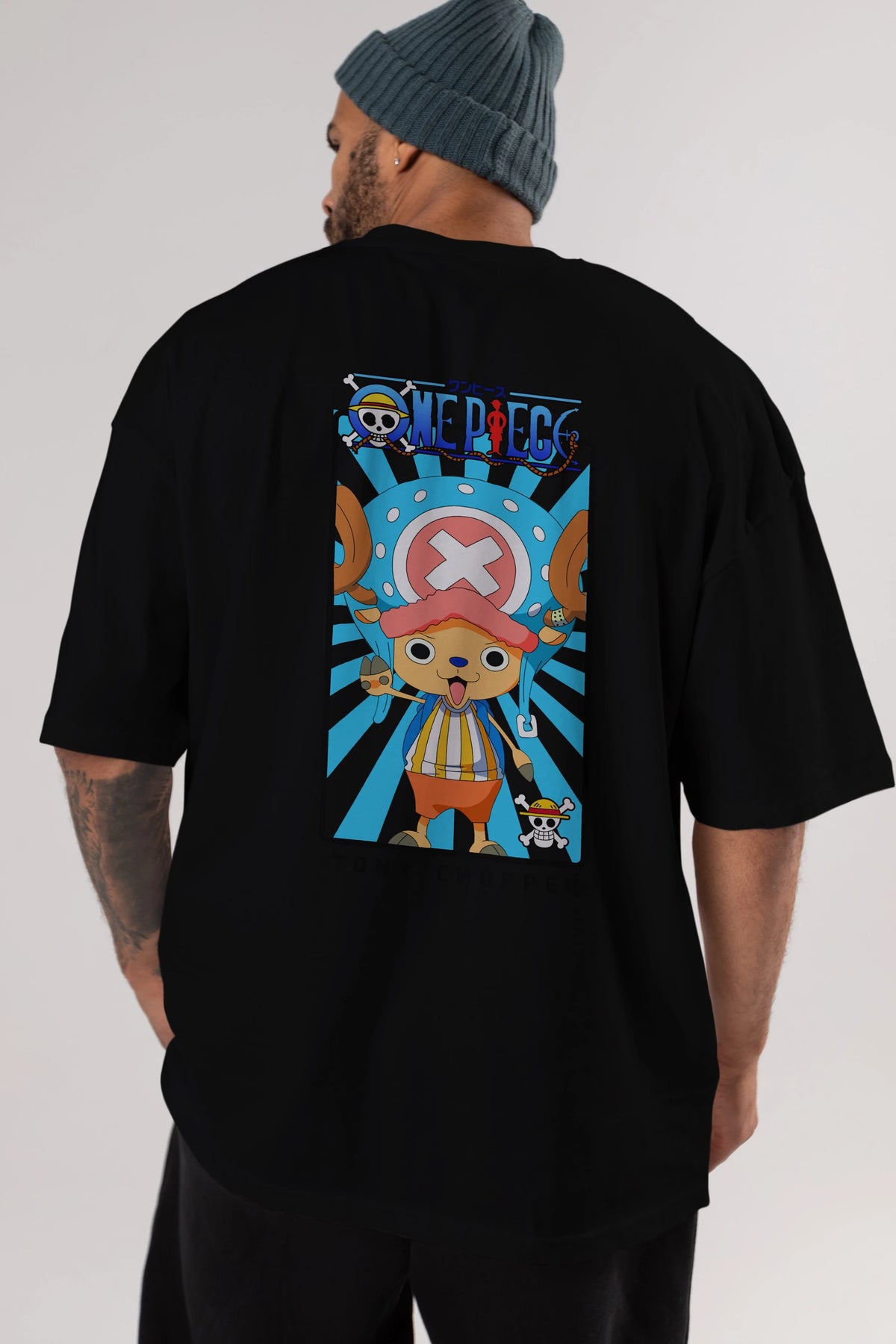Chopper Anime Arka Baskılı Oversize t-shirt Erkek Kadın Unisex %100 pamuk tişort