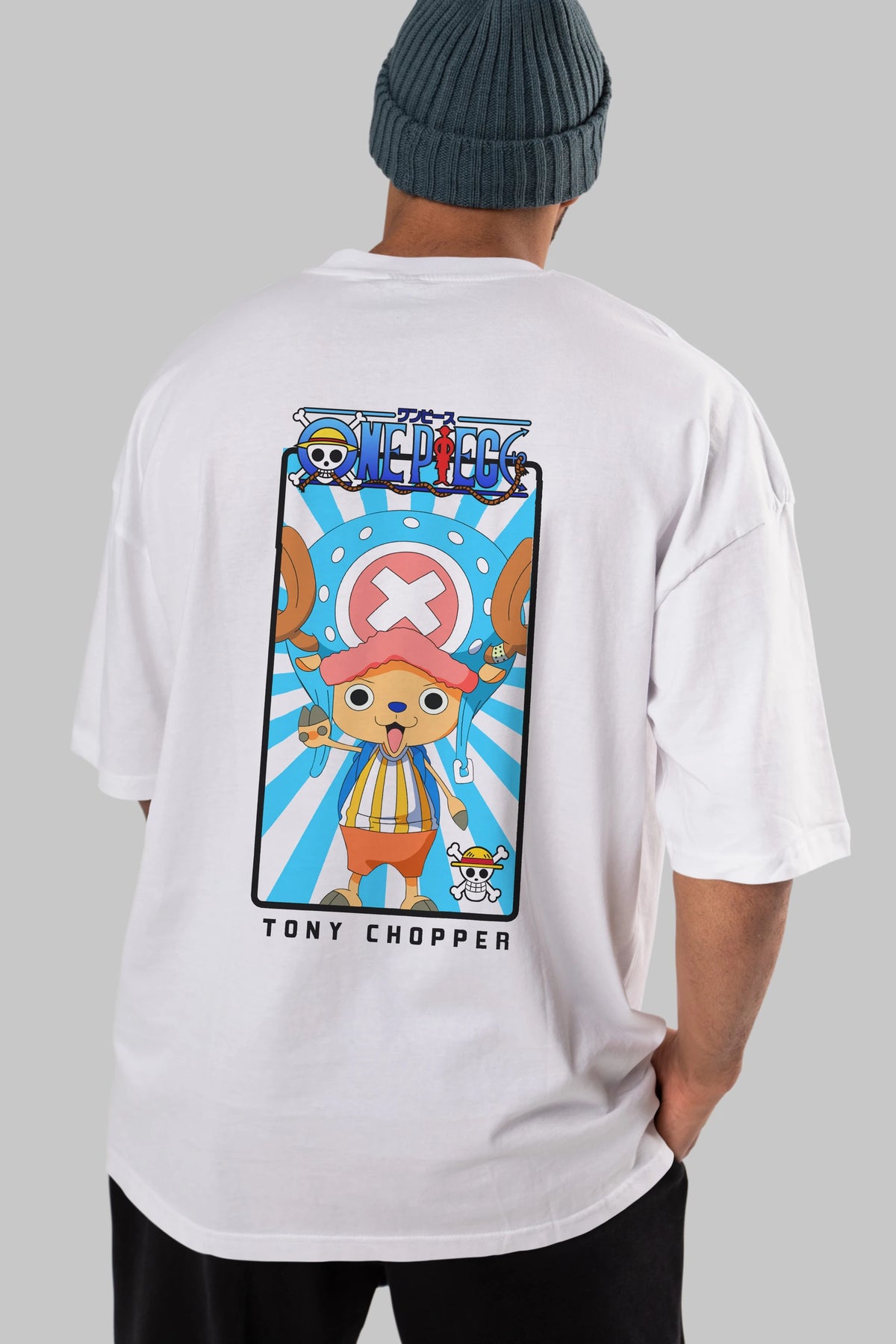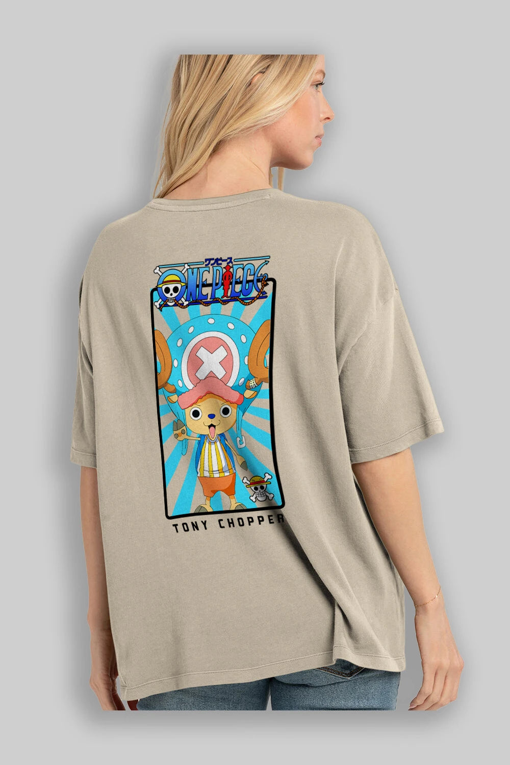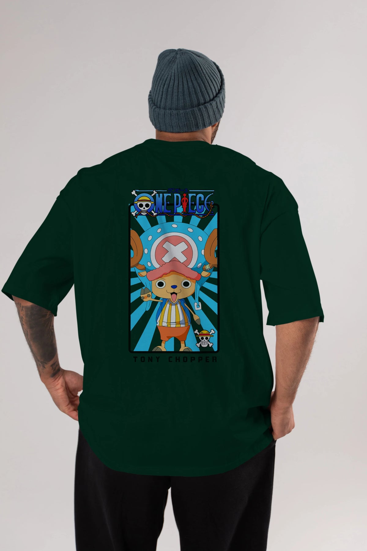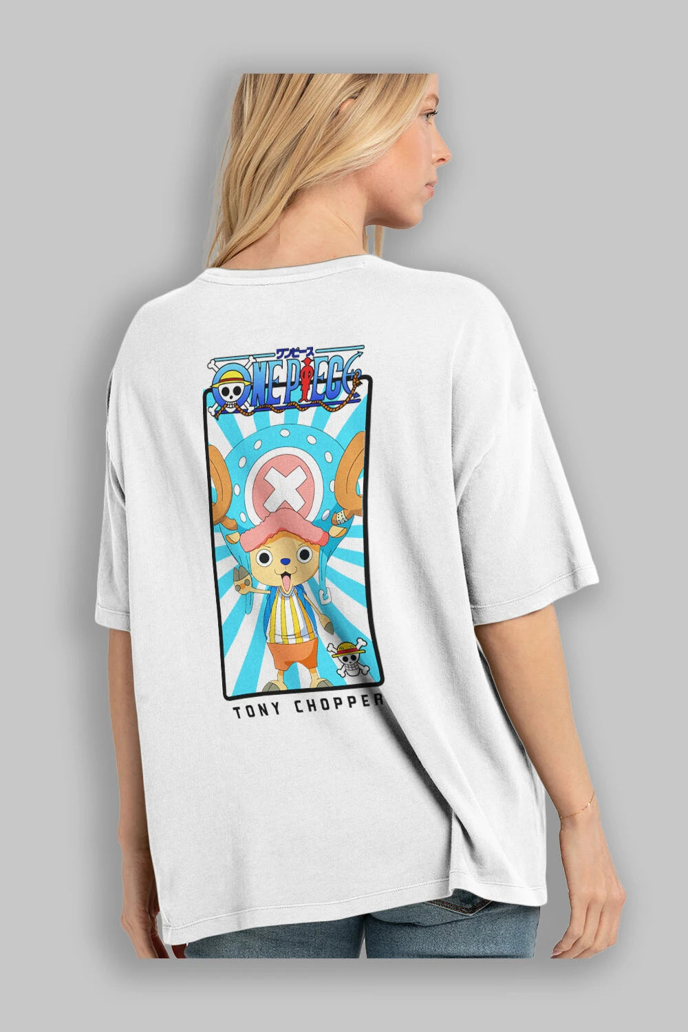 Chopper Anime Arka Baskılı Oversize t-shirt Erkek Kadın Unisex %100 pamuk tişort