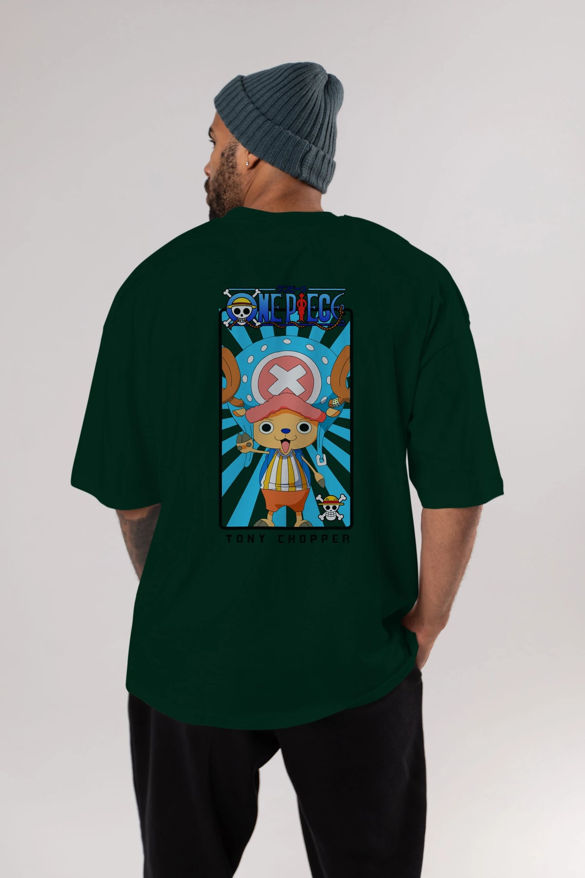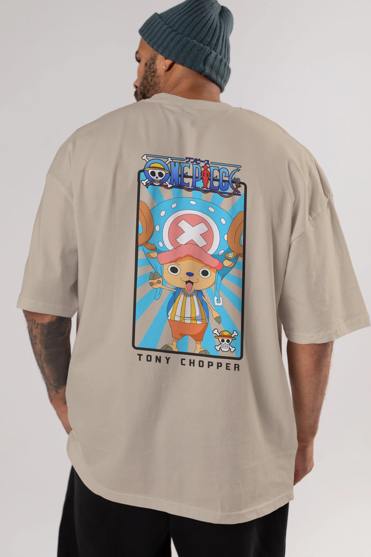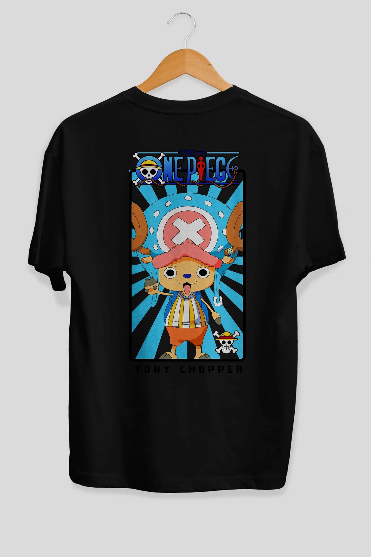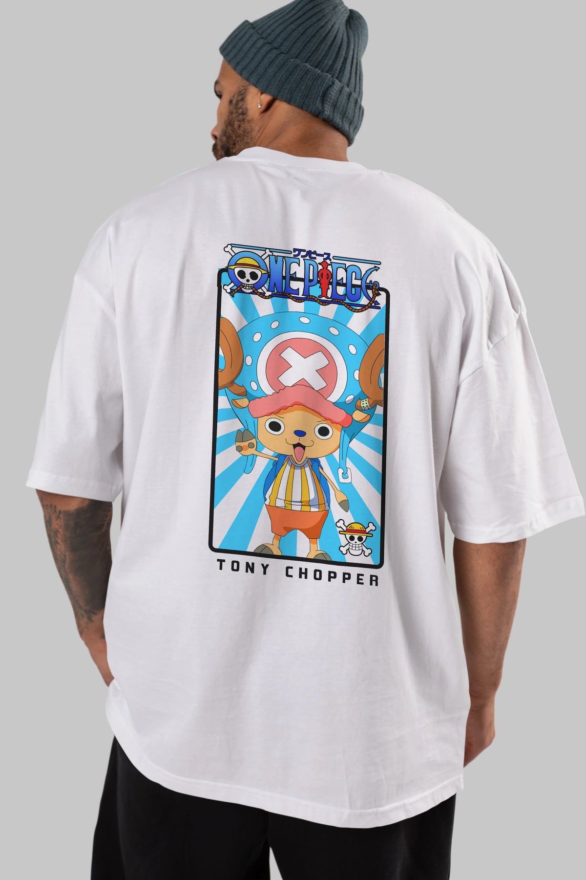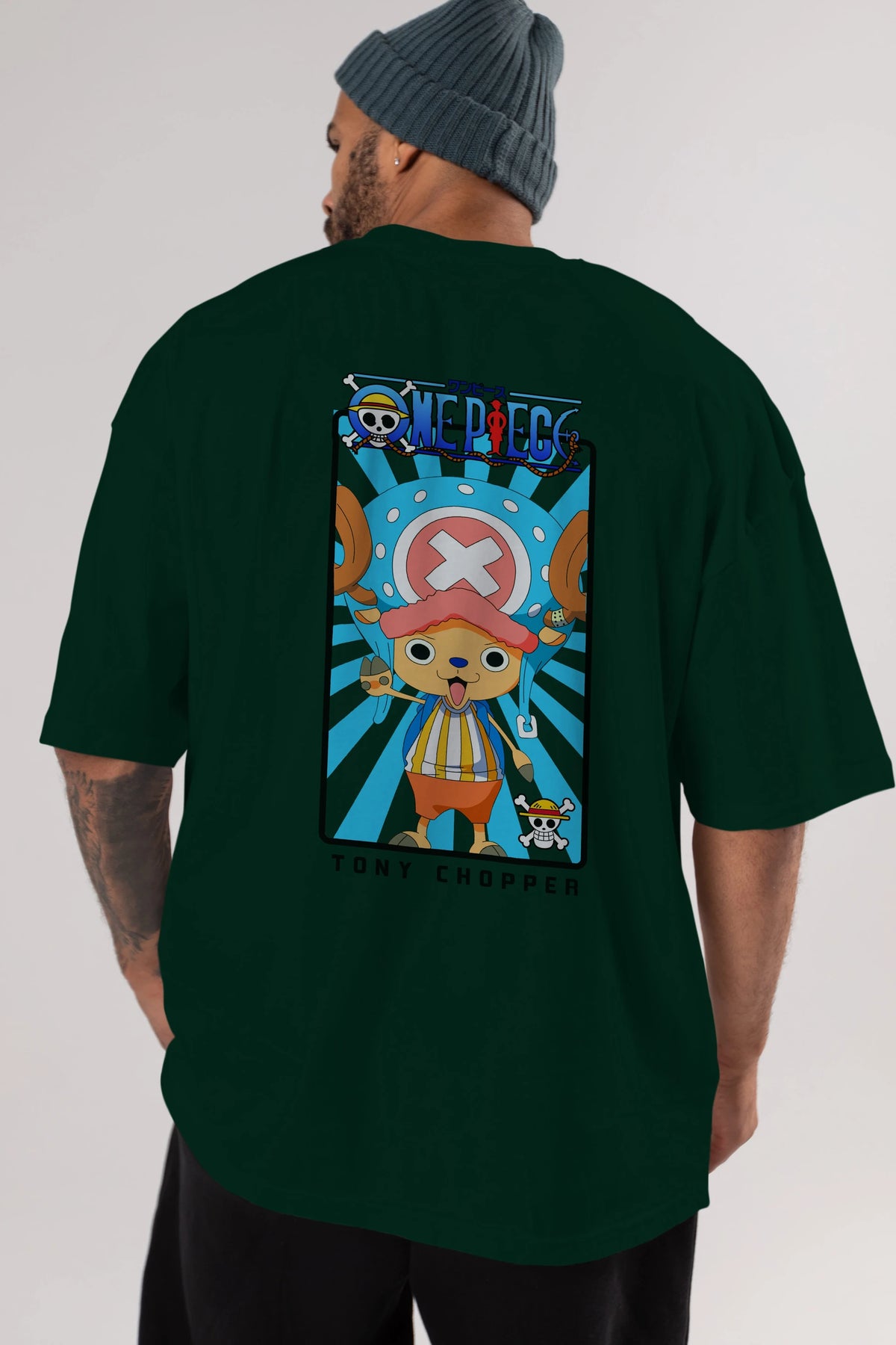 Chopper Anime Arka Baskılı Oversize t-shirt Erkek Kadın Unisex %100 pamuk tişort