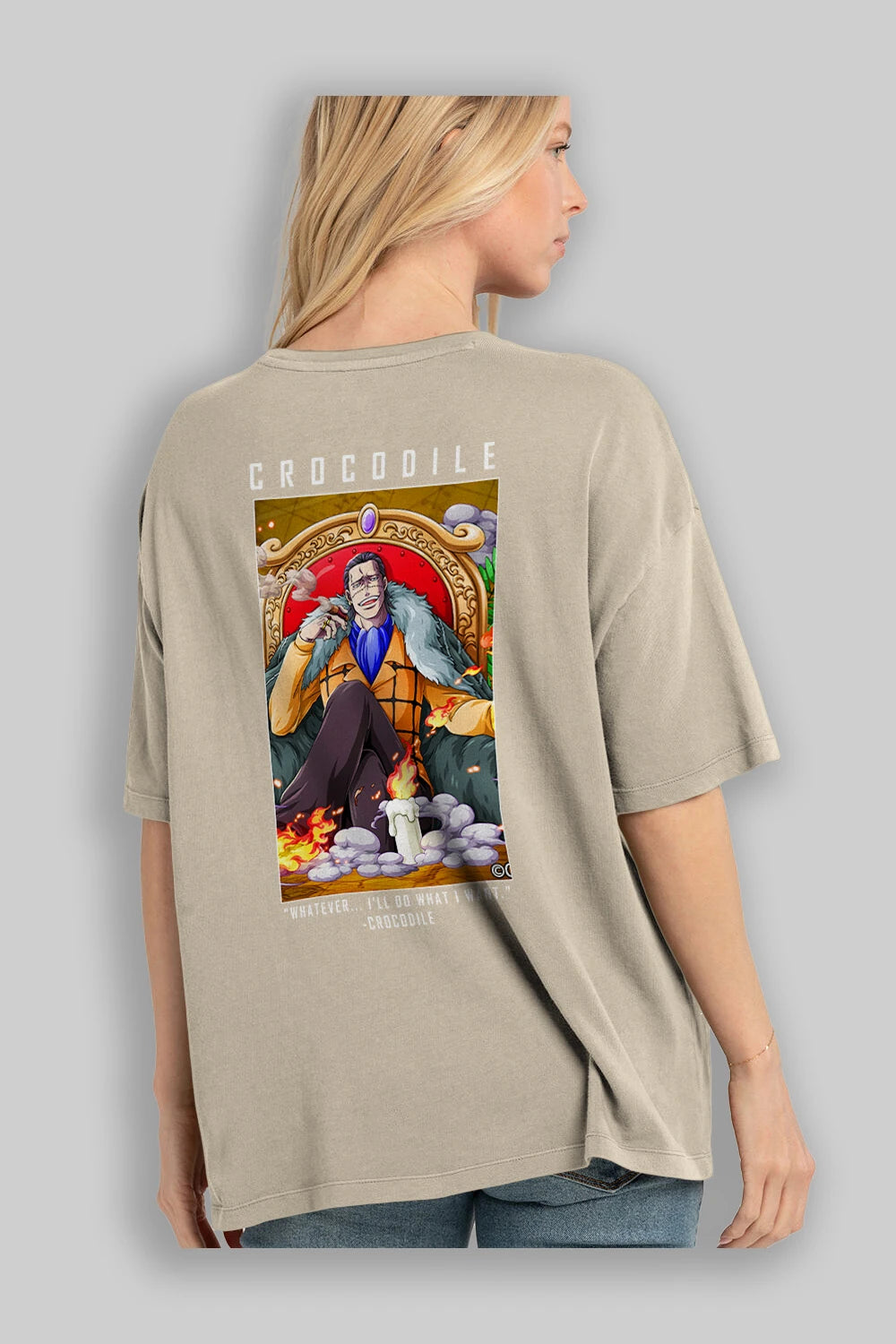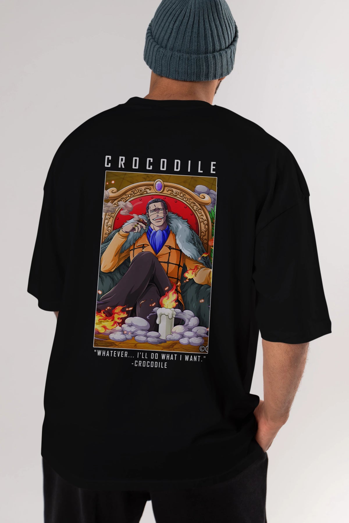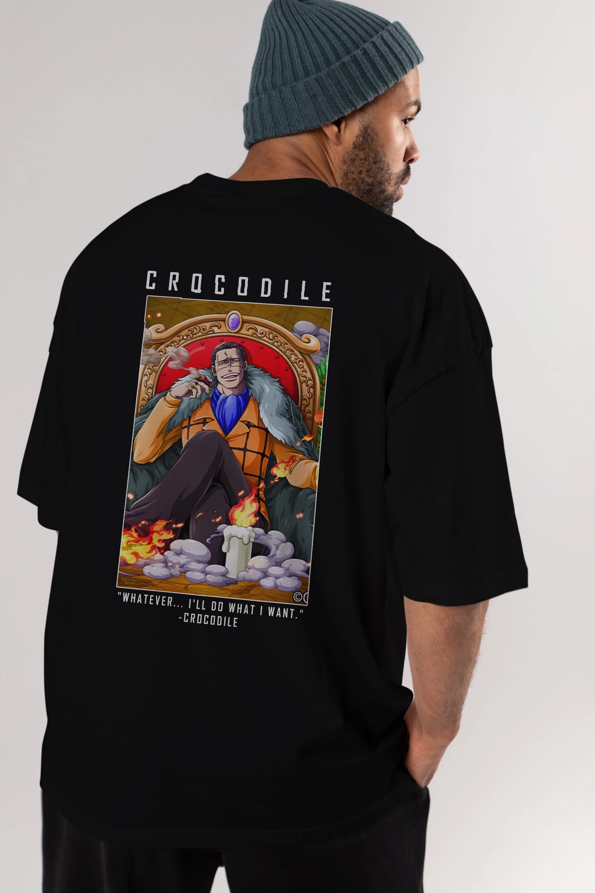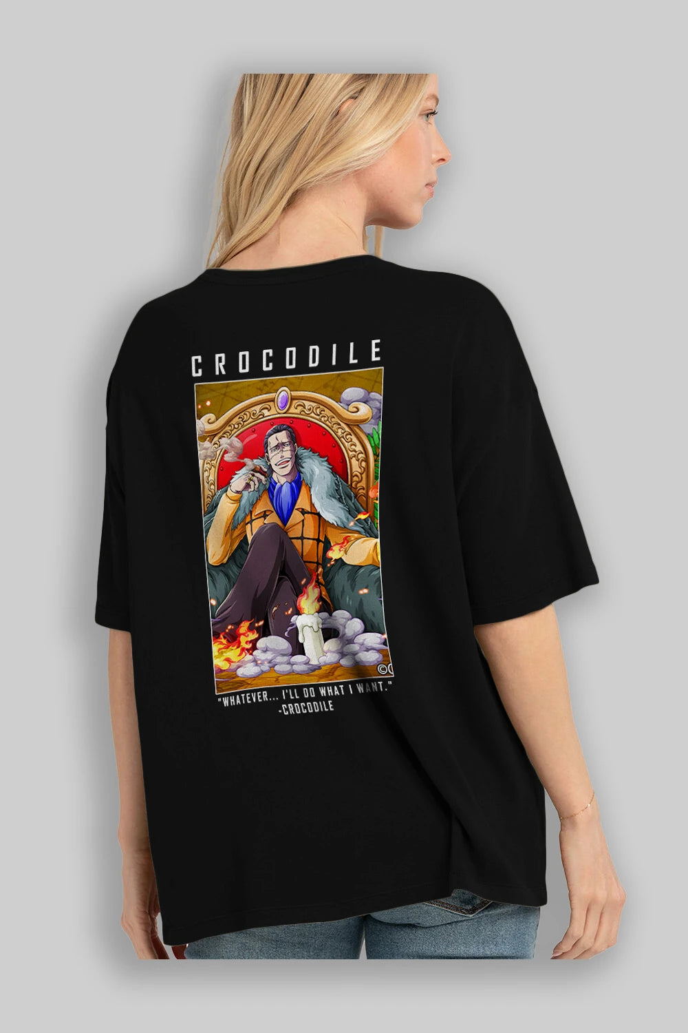 Crocodile Anime Arka Baskılı Oversize t-shirt Erkek Kadın Unisex %100 pamuk tişort