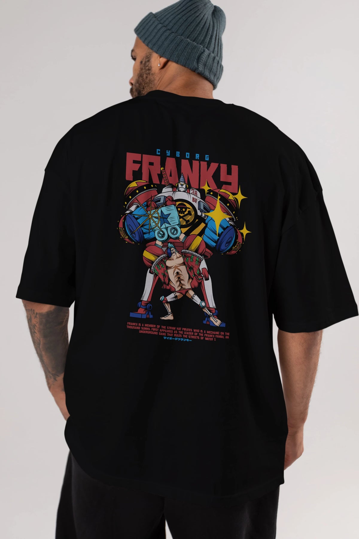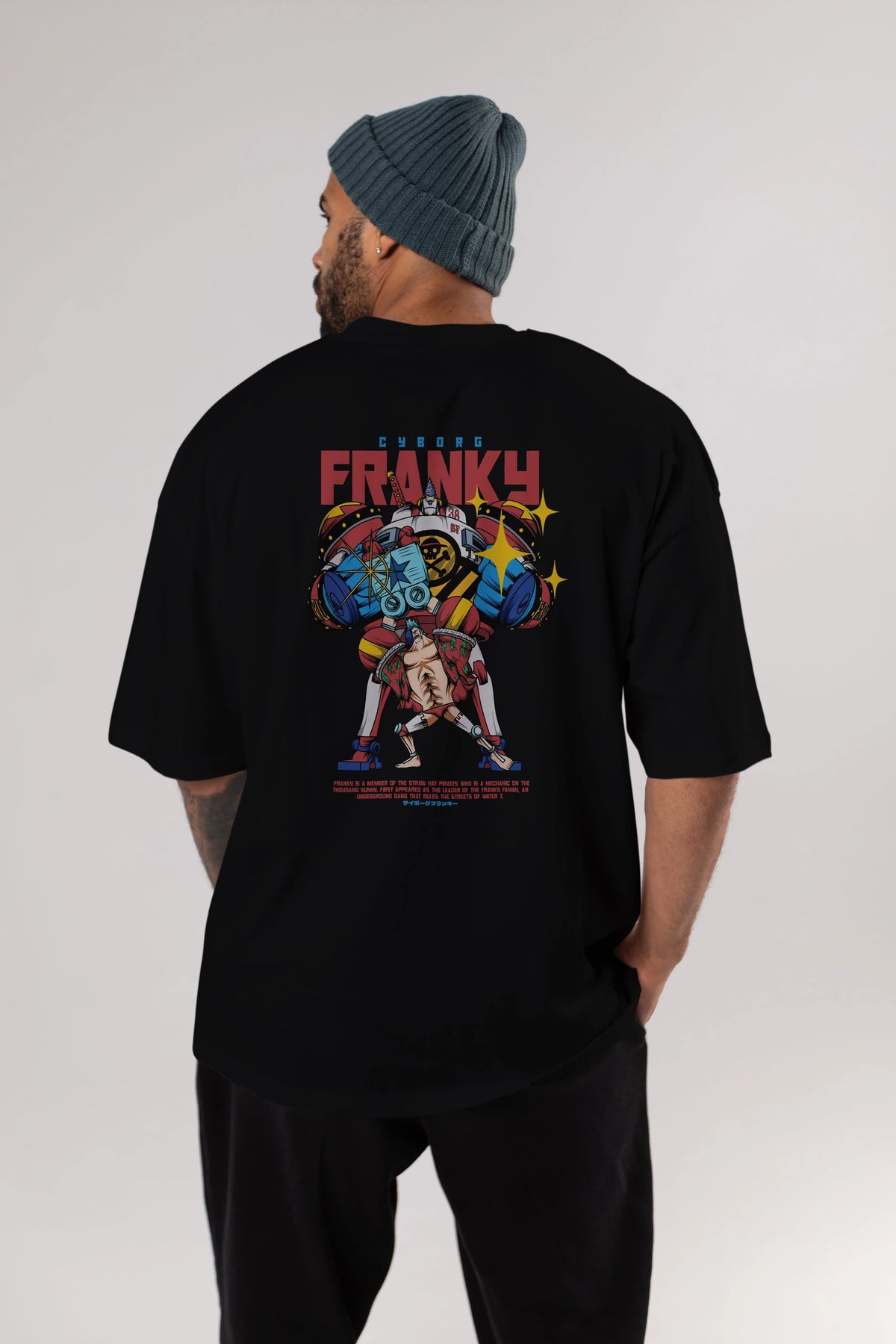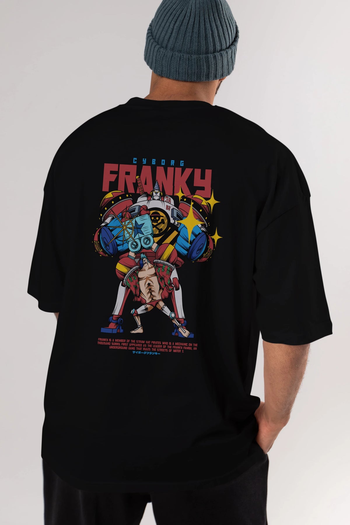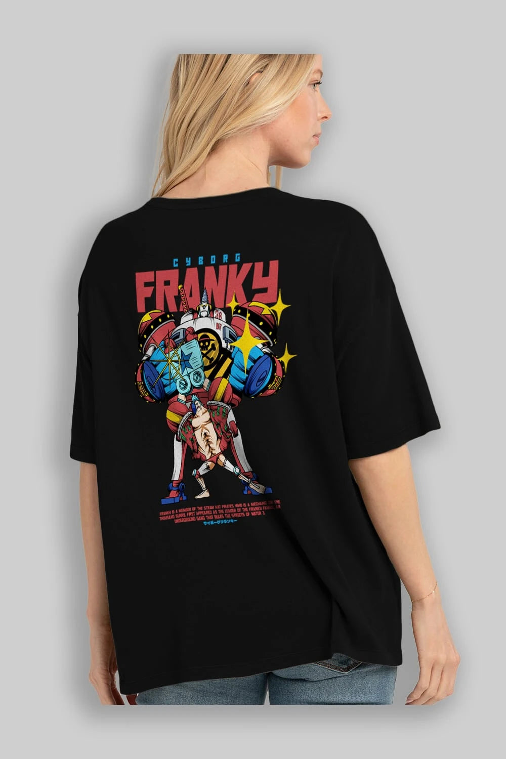 Cyborg Franky Anime Arka Baskılı Oversize t-shirt Erkek Kadın Unisex