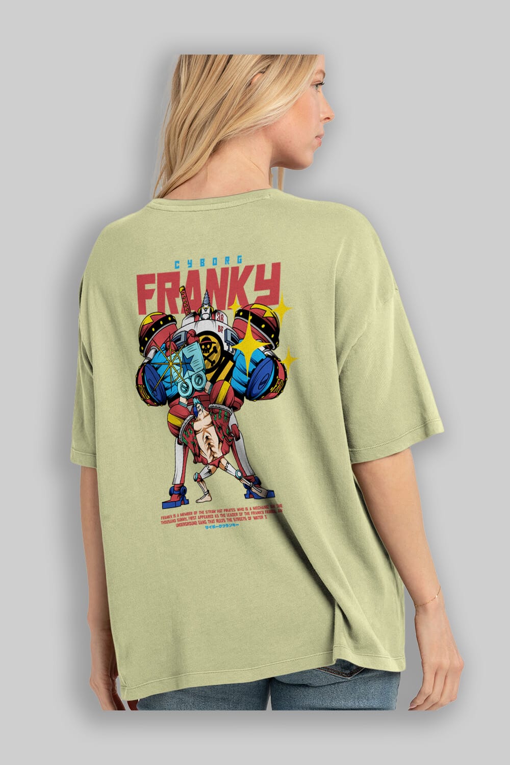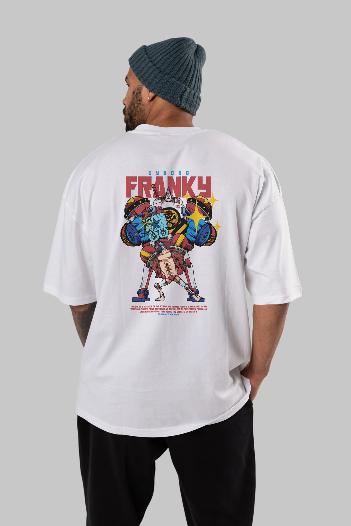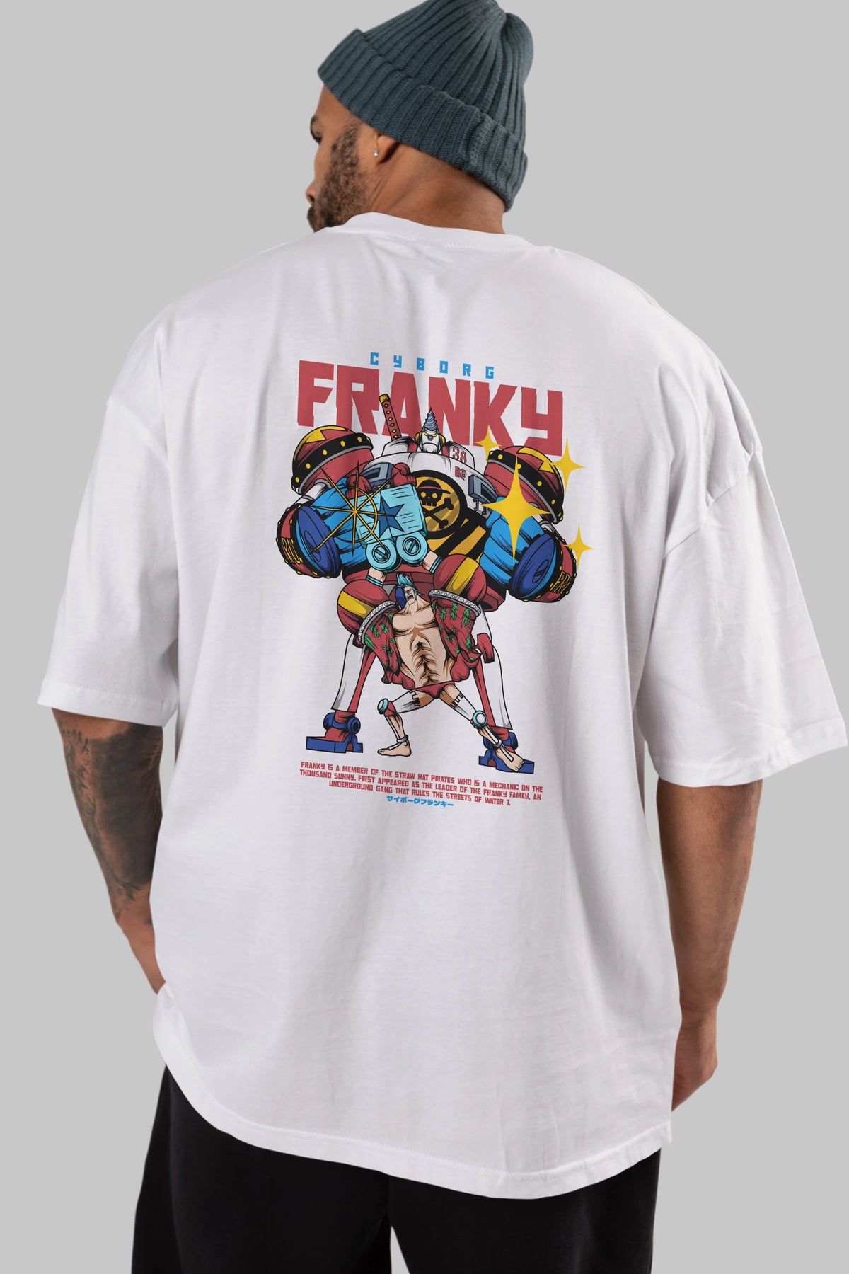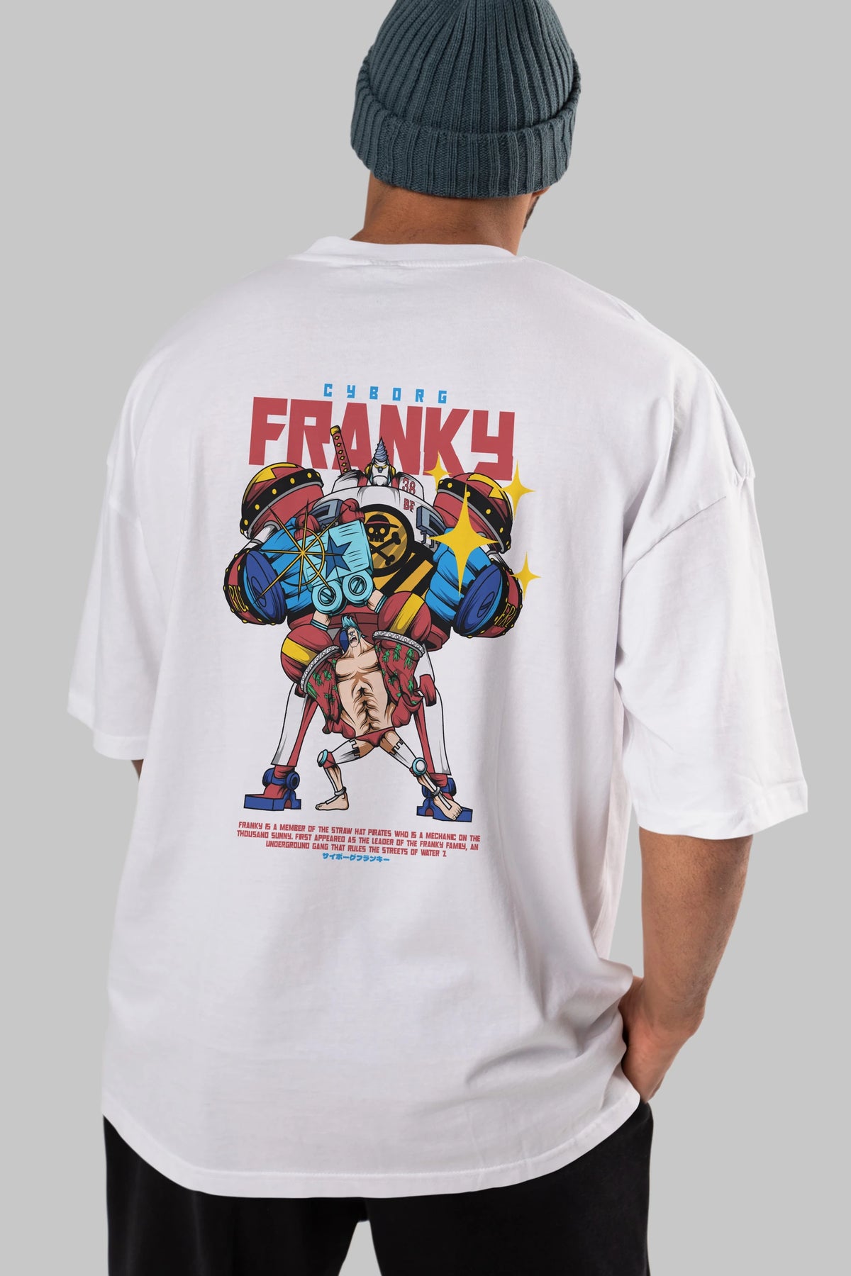 Cyborg Franky Anime Arka Baskılı Oversize t-shirt Erkek Kadın Unisex