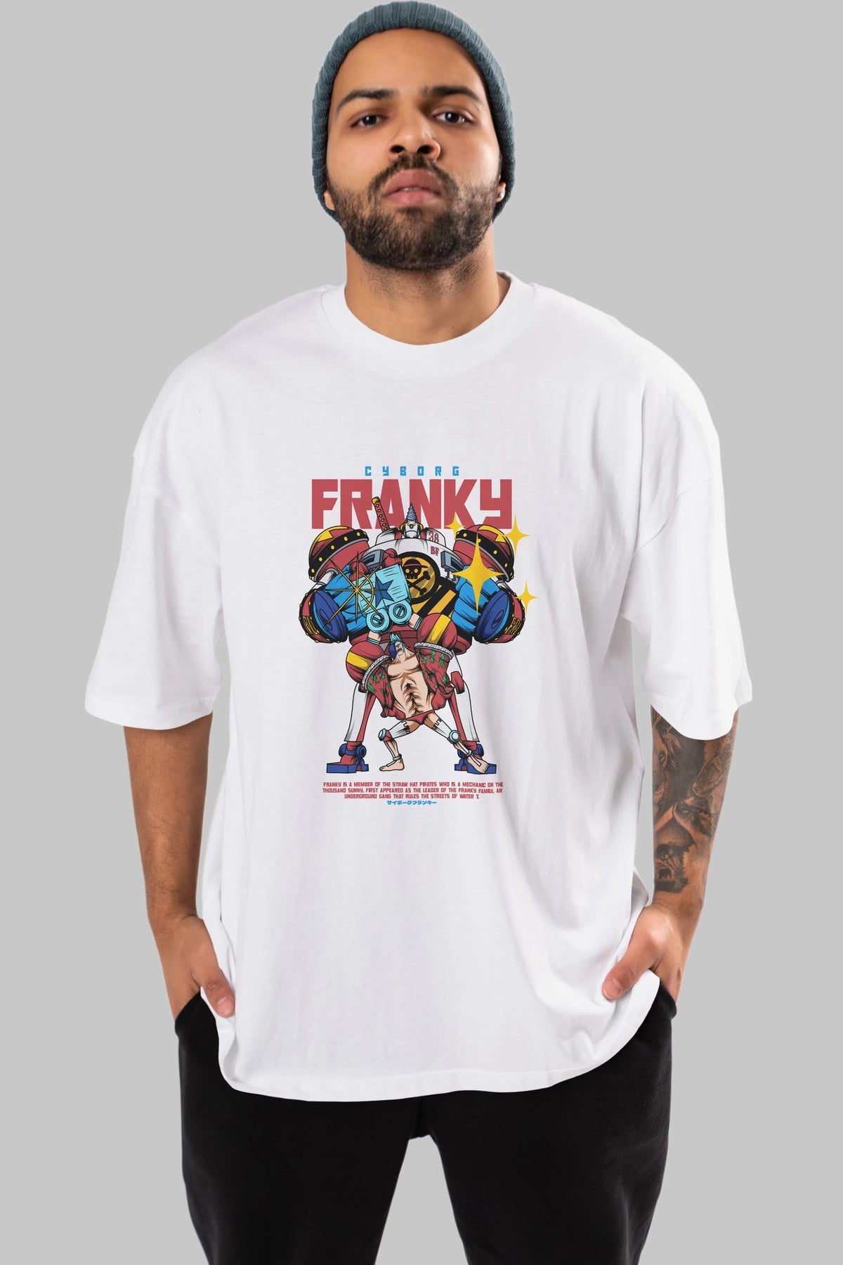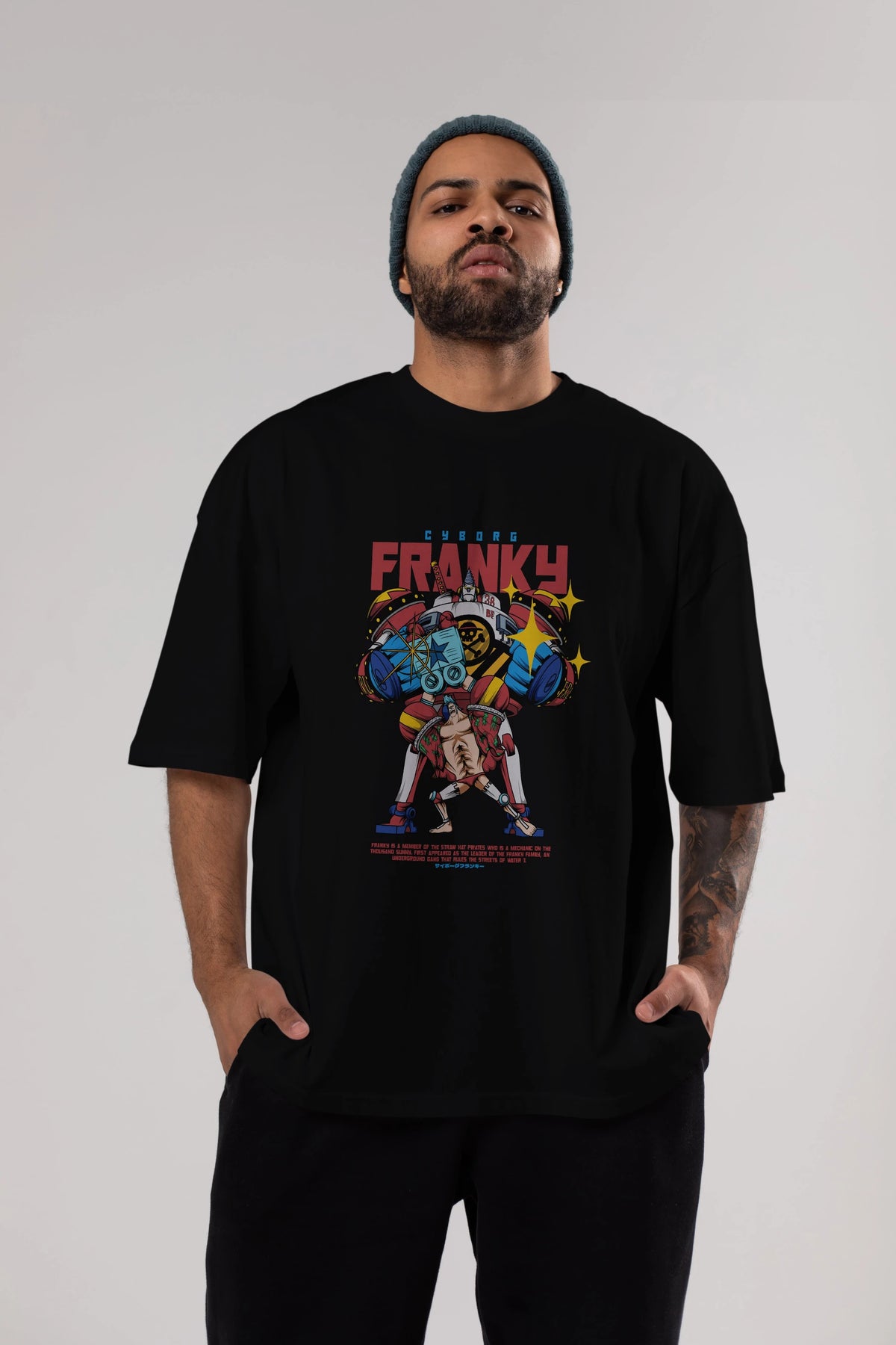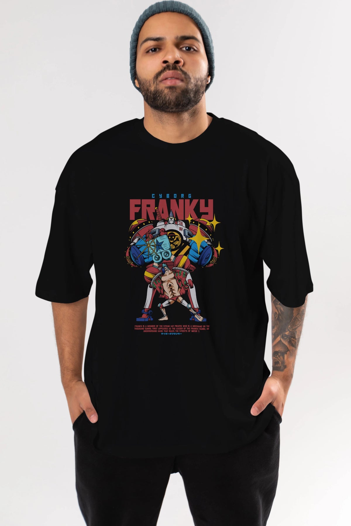 Cyborg Franky Anime Ön Baskılı Oversize t-shirt %100 pamuk Erkek Kadın Unisex