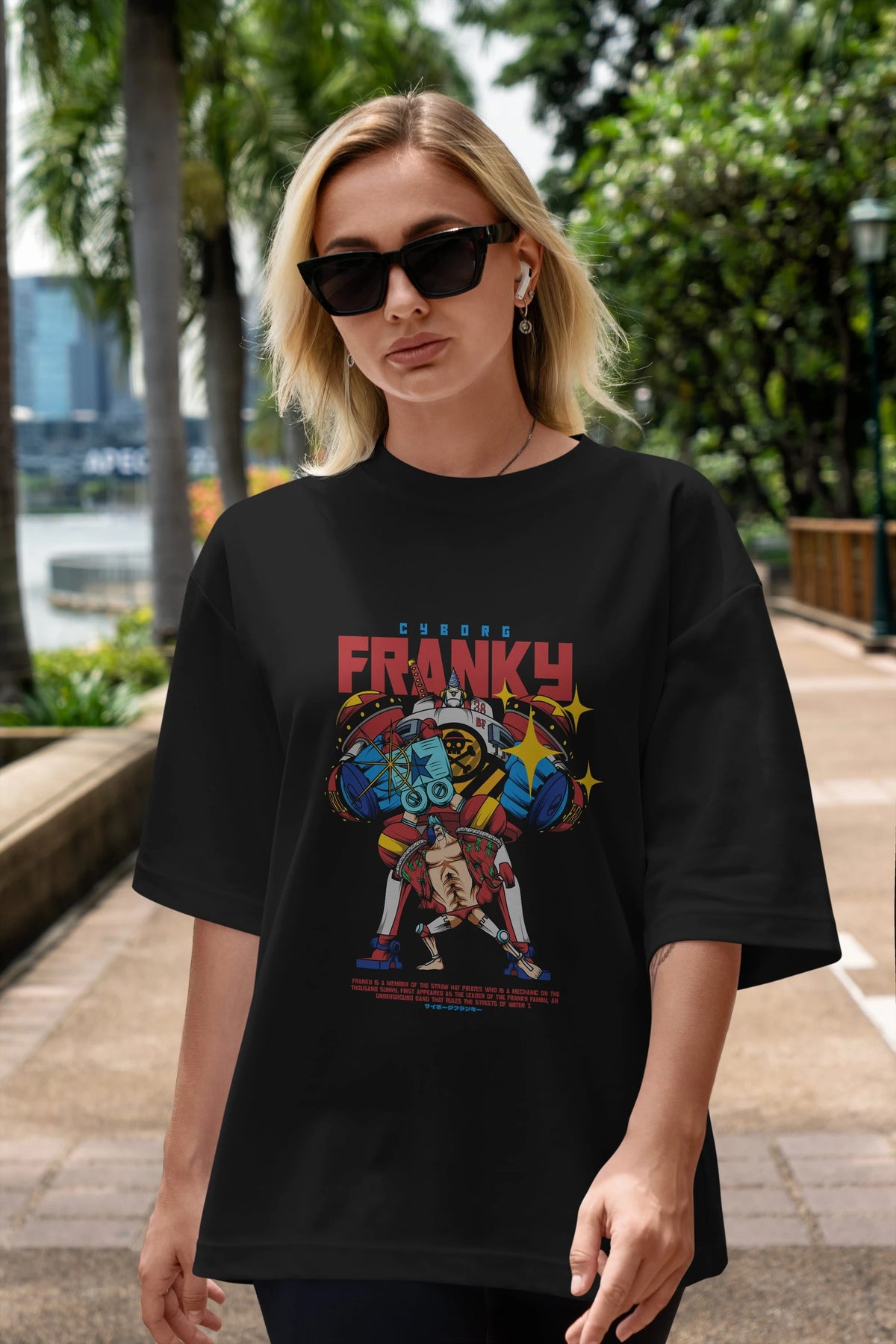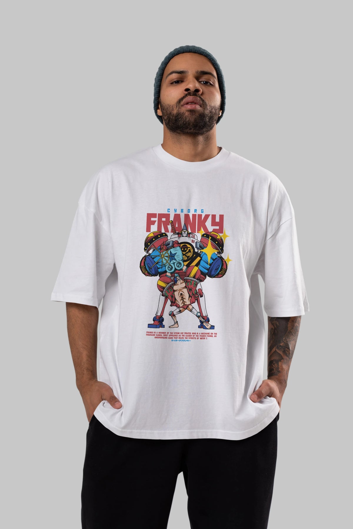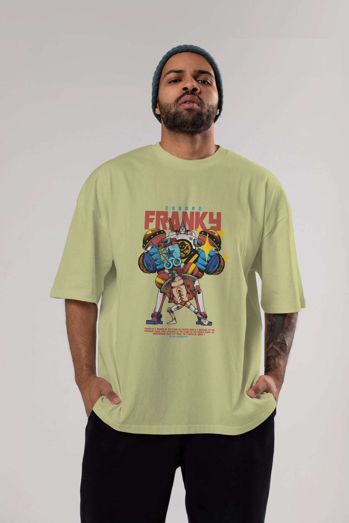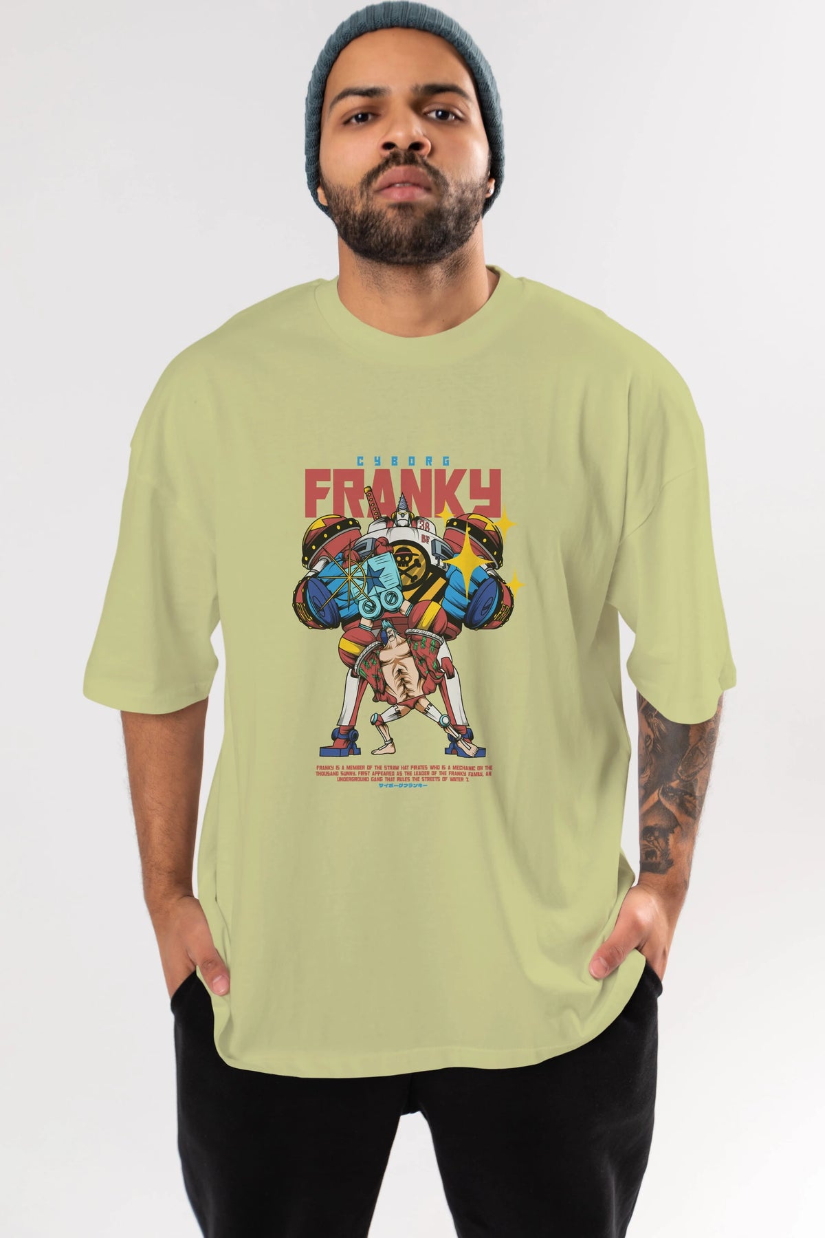 Cyborg Franky Anime Ön Baskılı Oversize t-shirt %100 pamuk Erkek Kadın Unisex