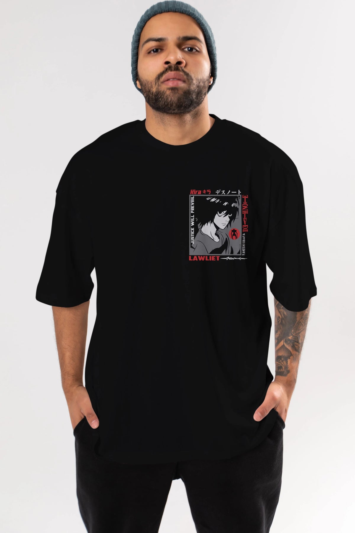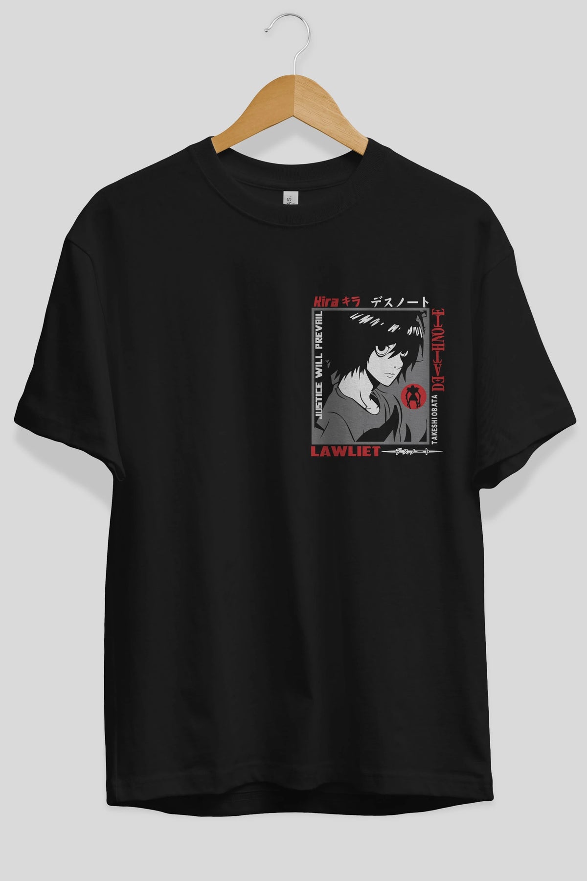 DEATH NOTE Ön Sol Baskılı Oversize t-shirt Erkek Kadın Unisex %100 Pamuk Bisiklet Yaka tişort
