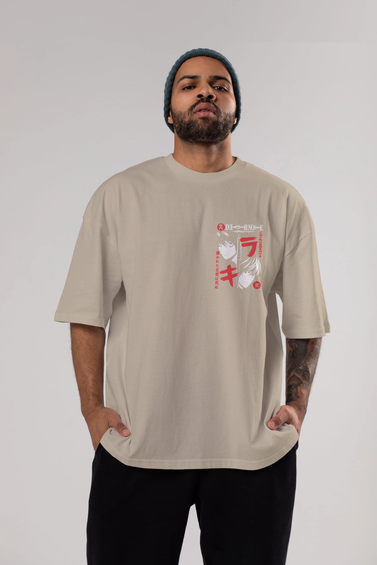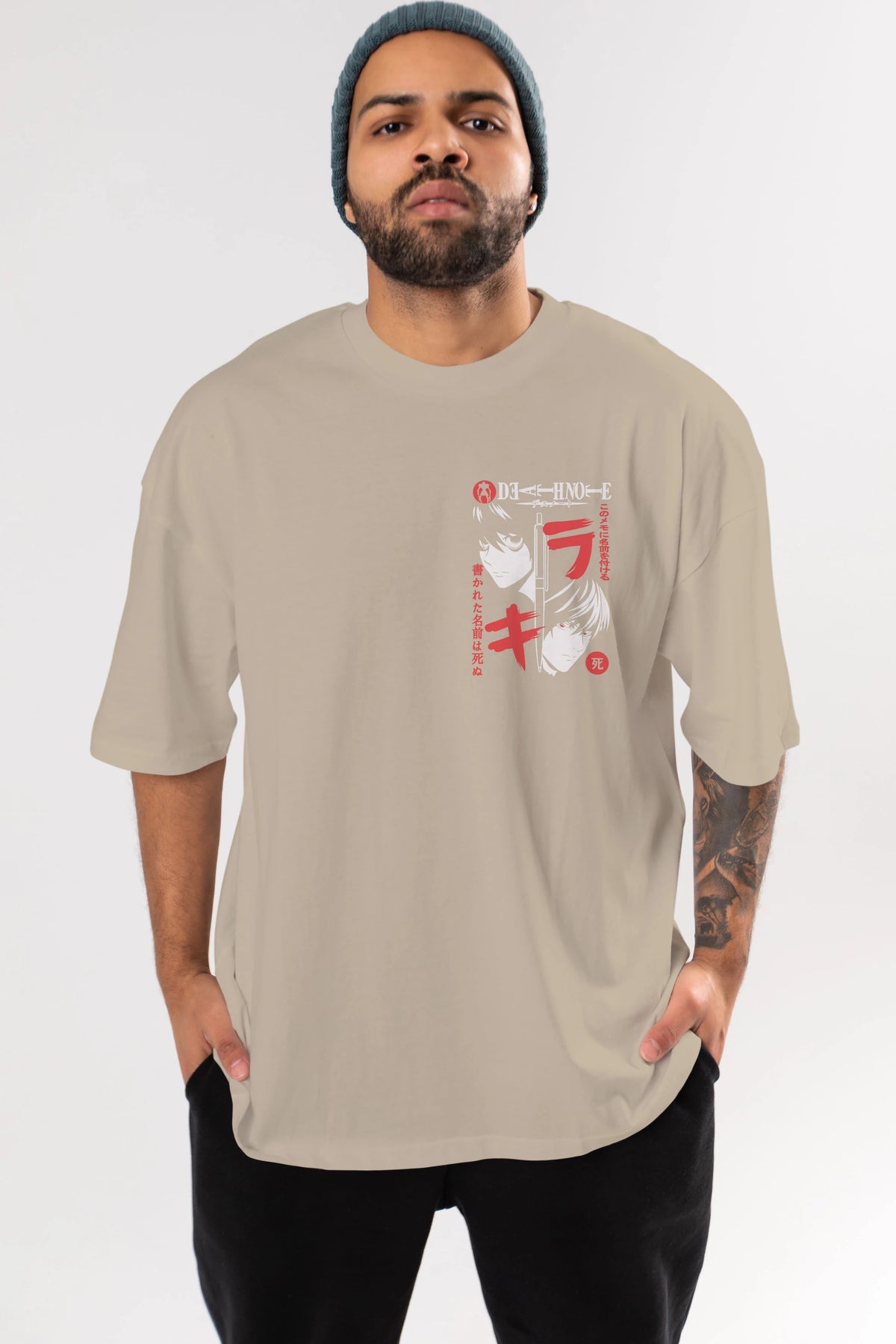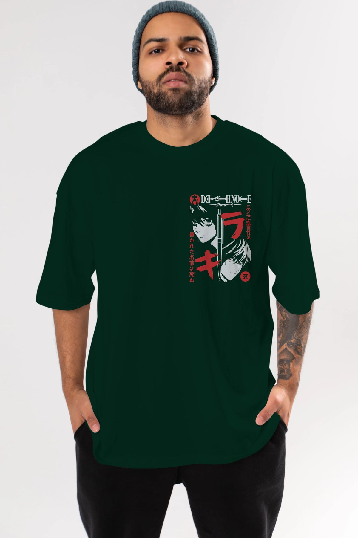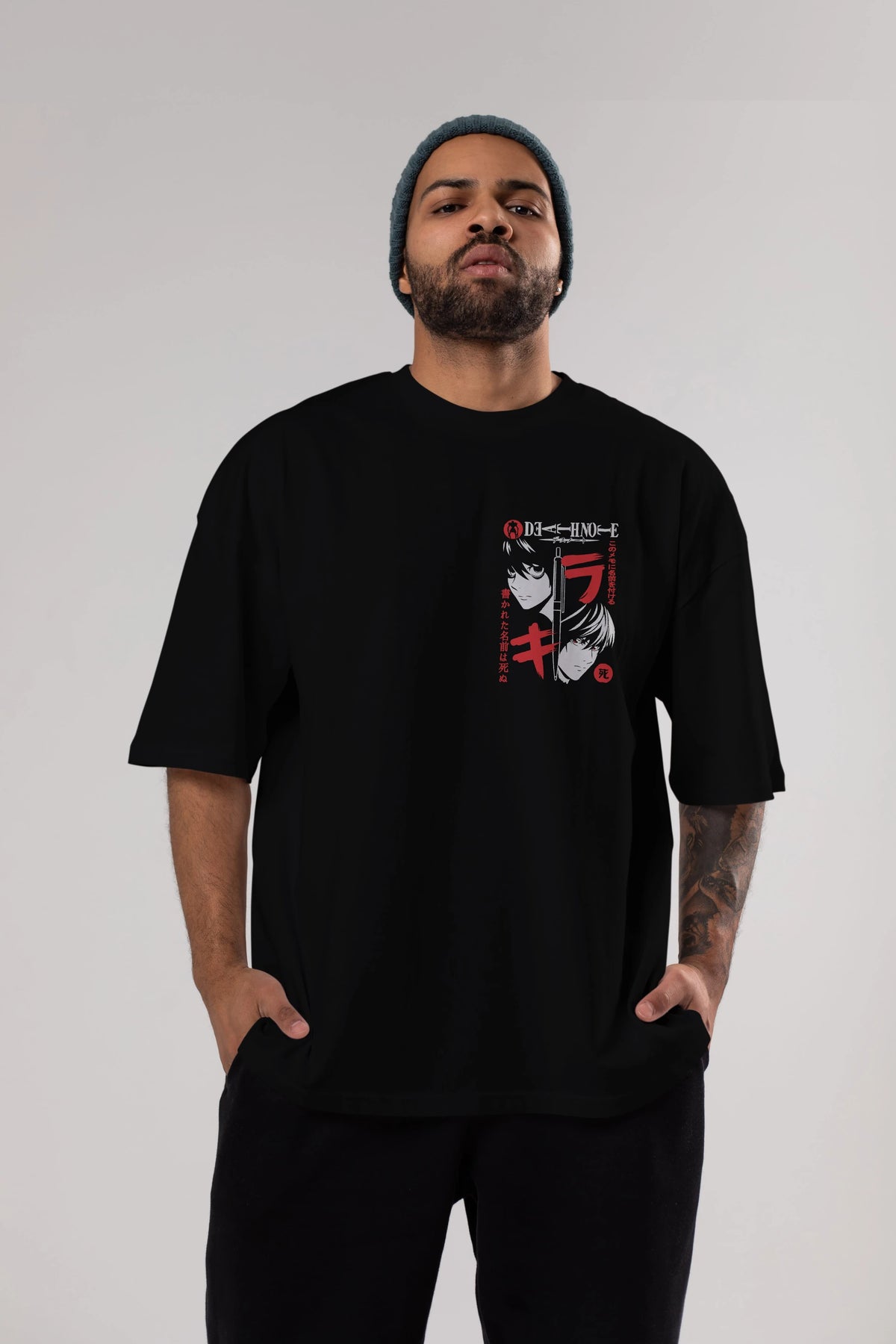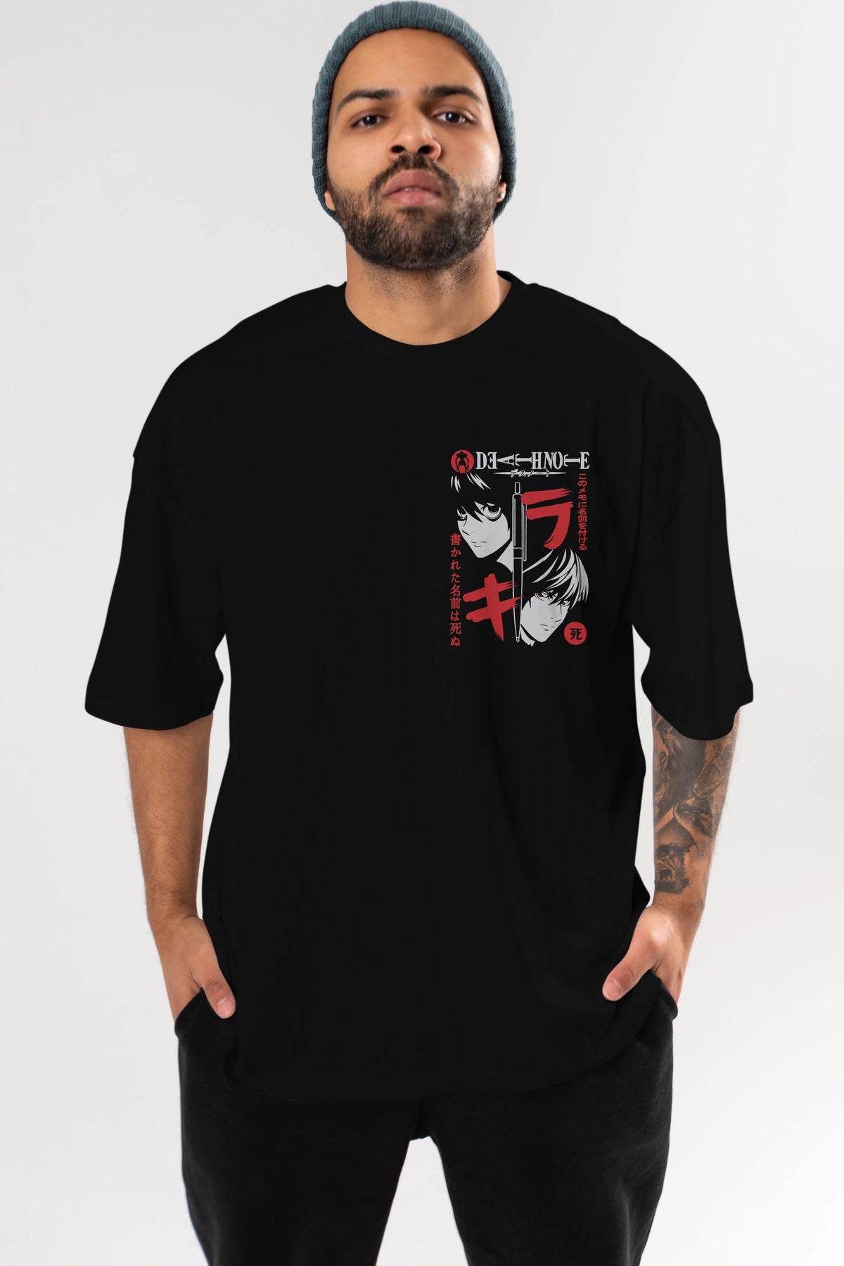 DEATHNOTE L vs KIRA Ön Sol Baskılı Oversize t-shirt Erkek Kadın Unisex %100 Pamuk Bisiklet Yaka tişort