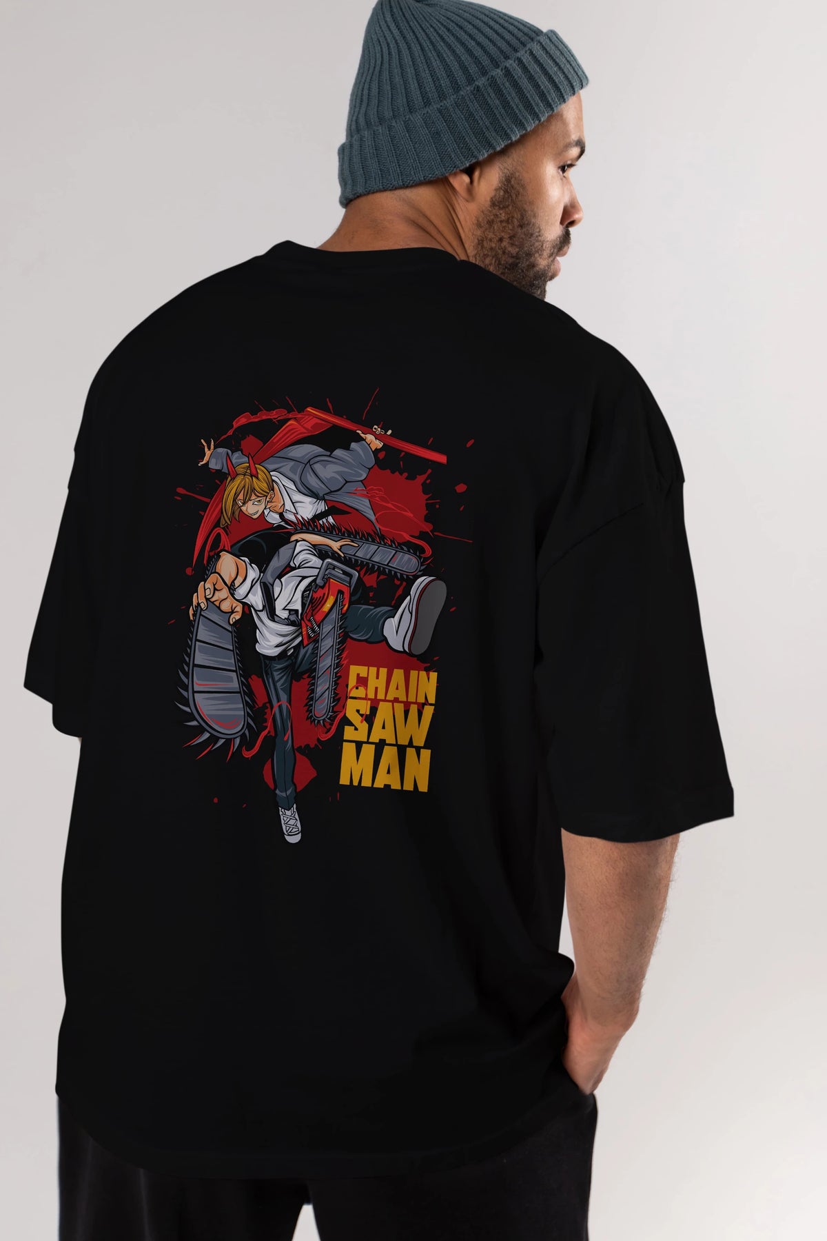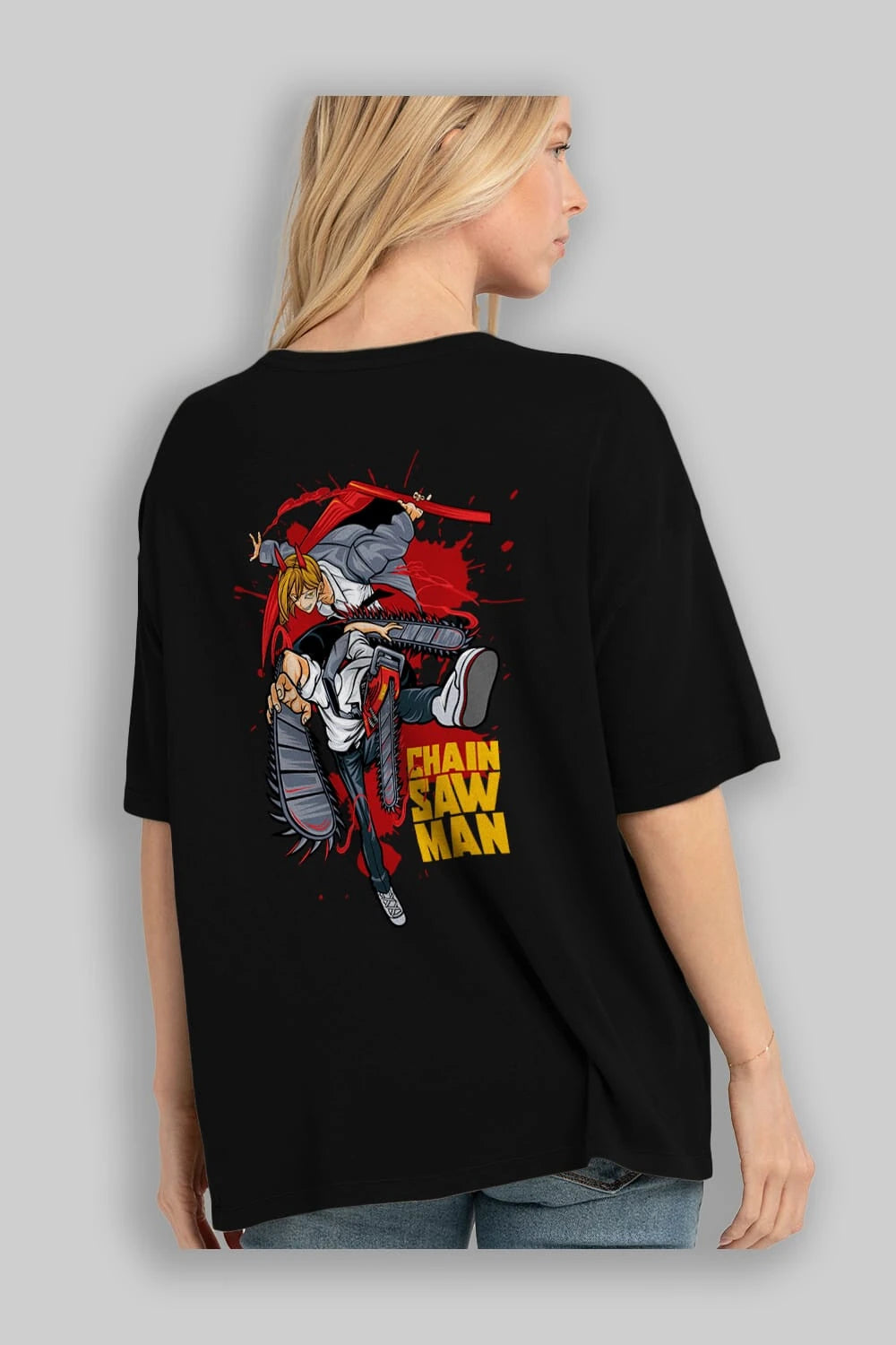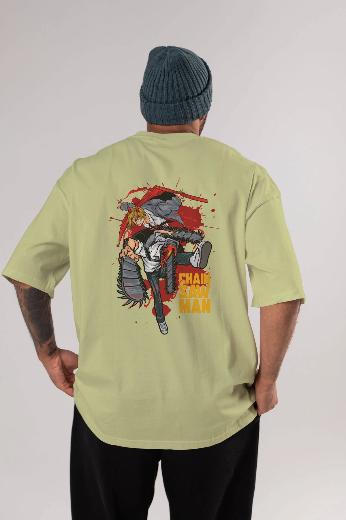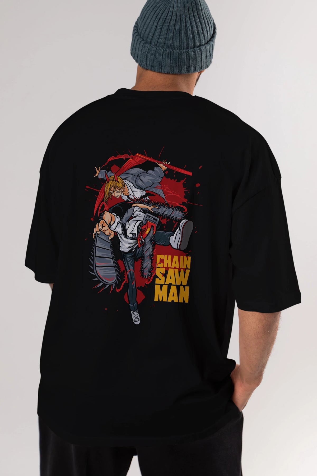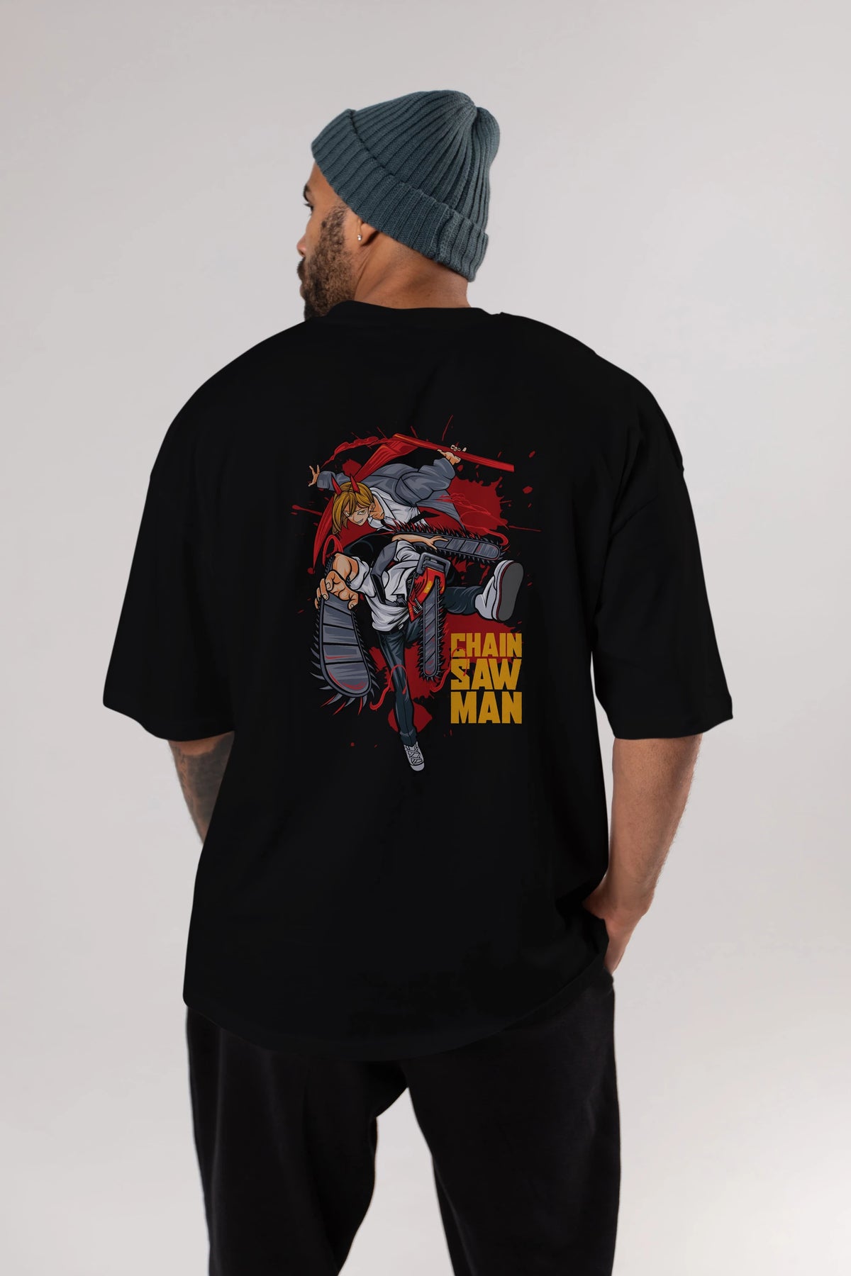 DENJI and POWER Anime Arka Baskılı Oversize t-shirt Erkek Kadın Unisex
