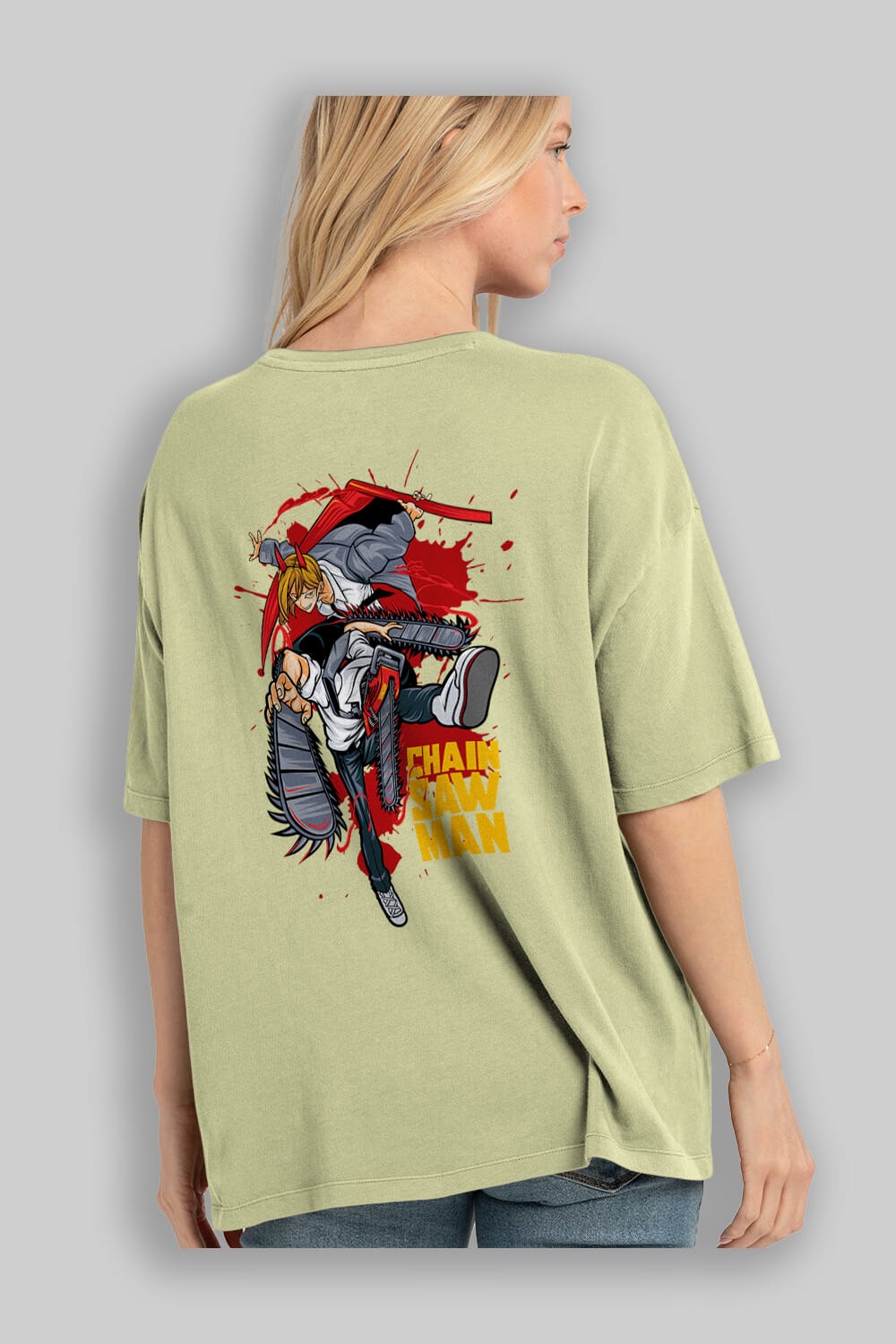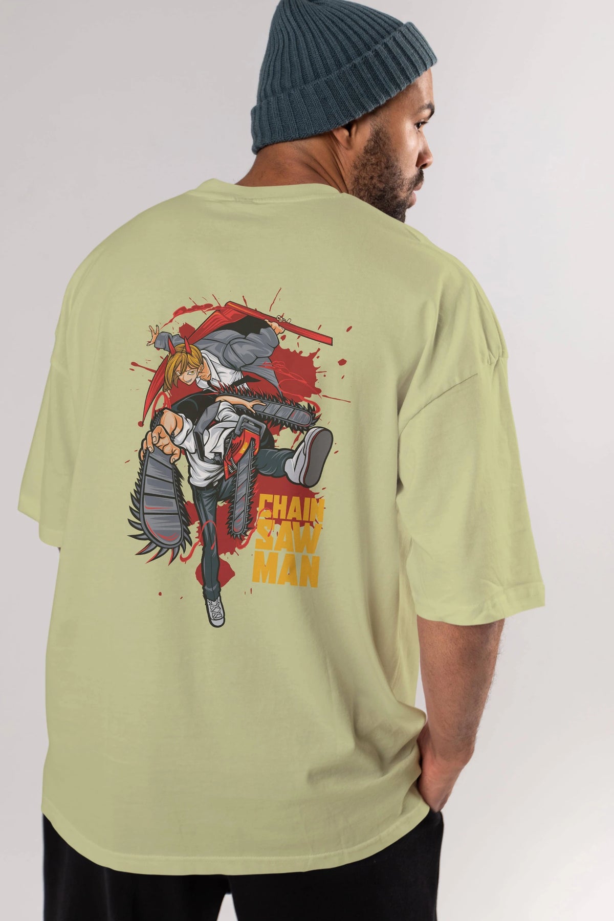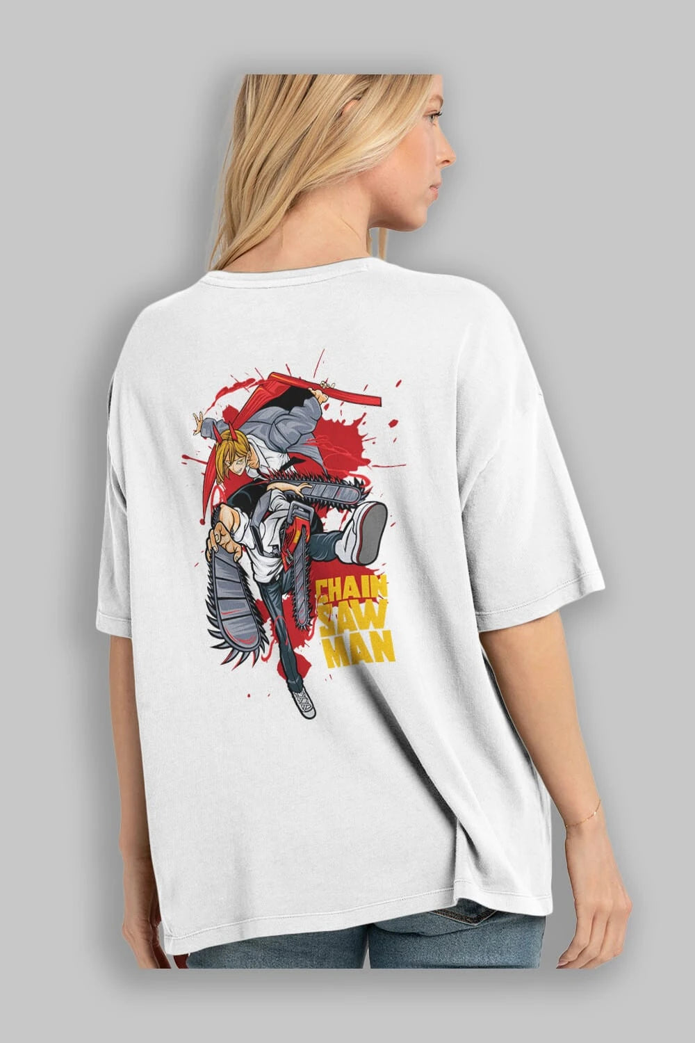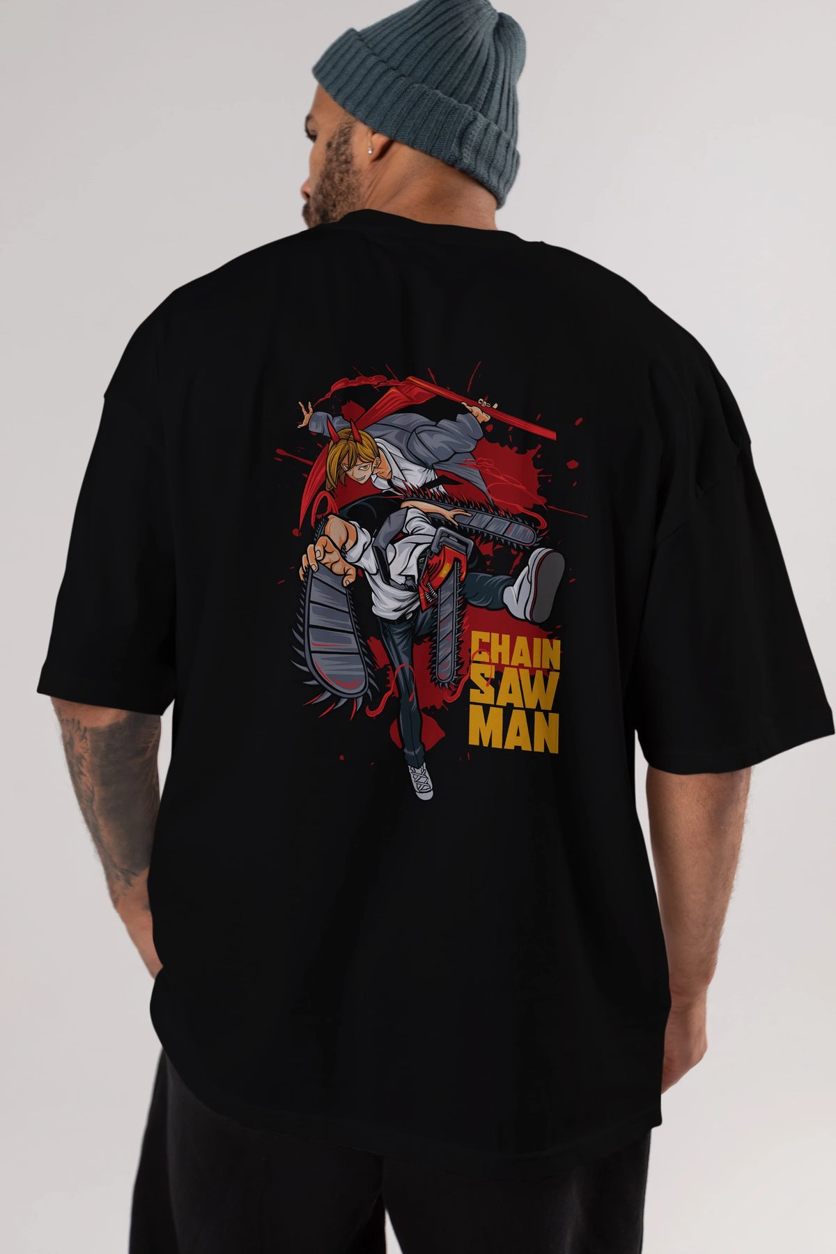 DENJI and POWER Anime Arka Baskılı Oversize t-shirt Erkek Kadın Unisex