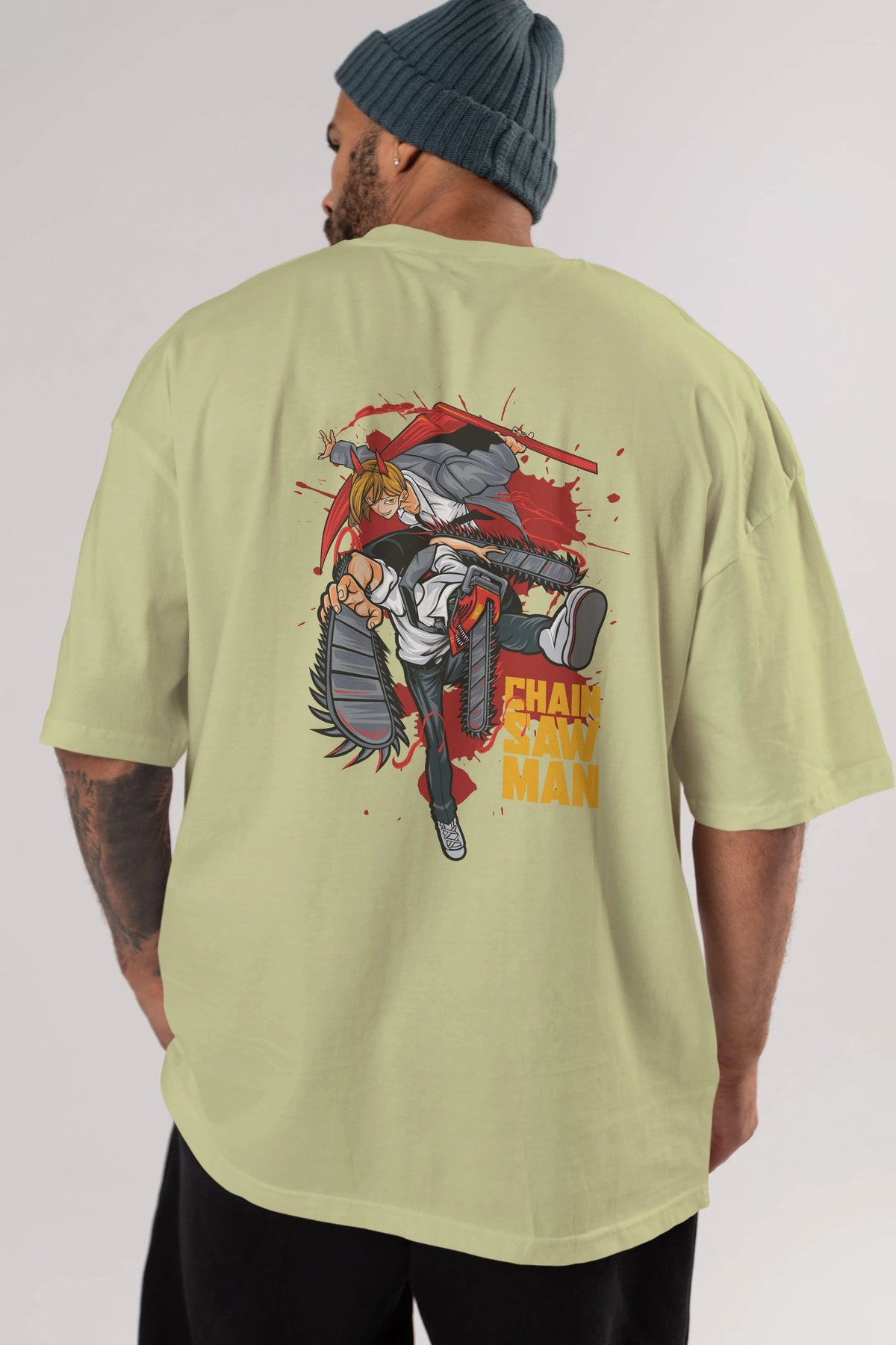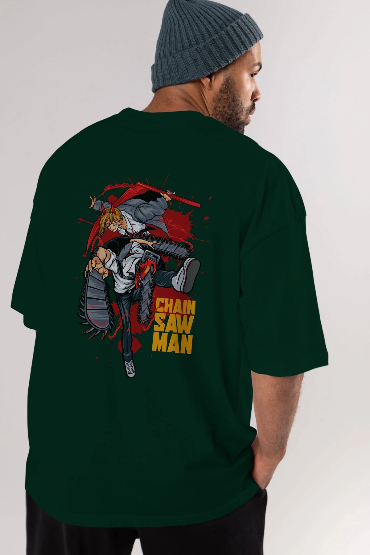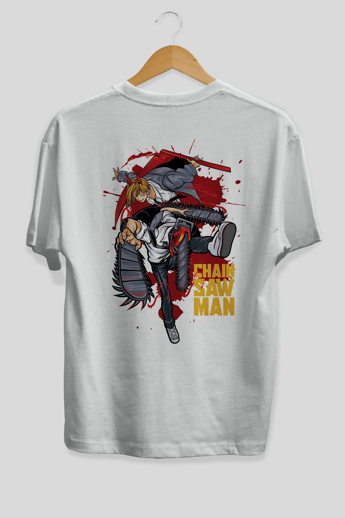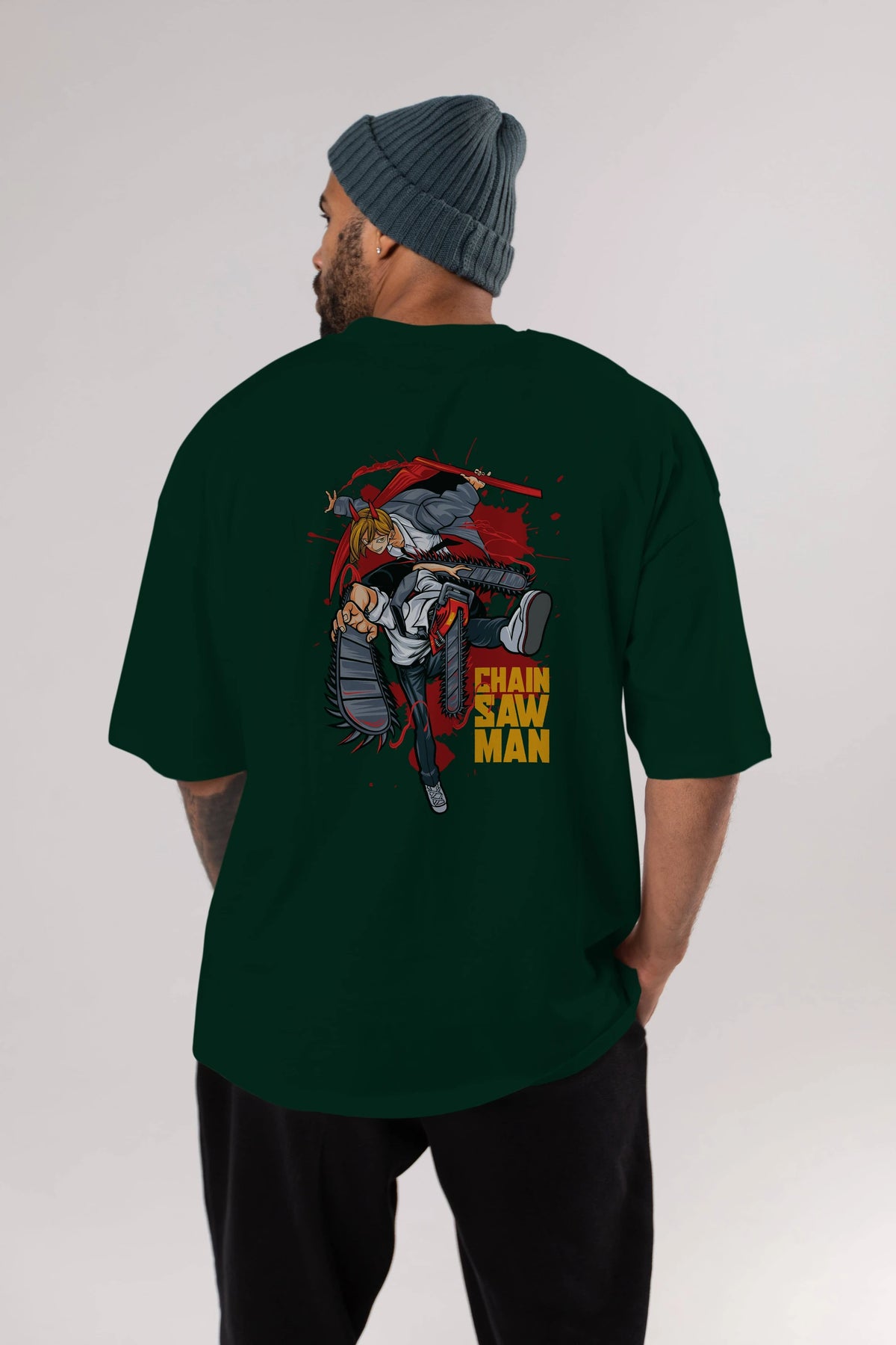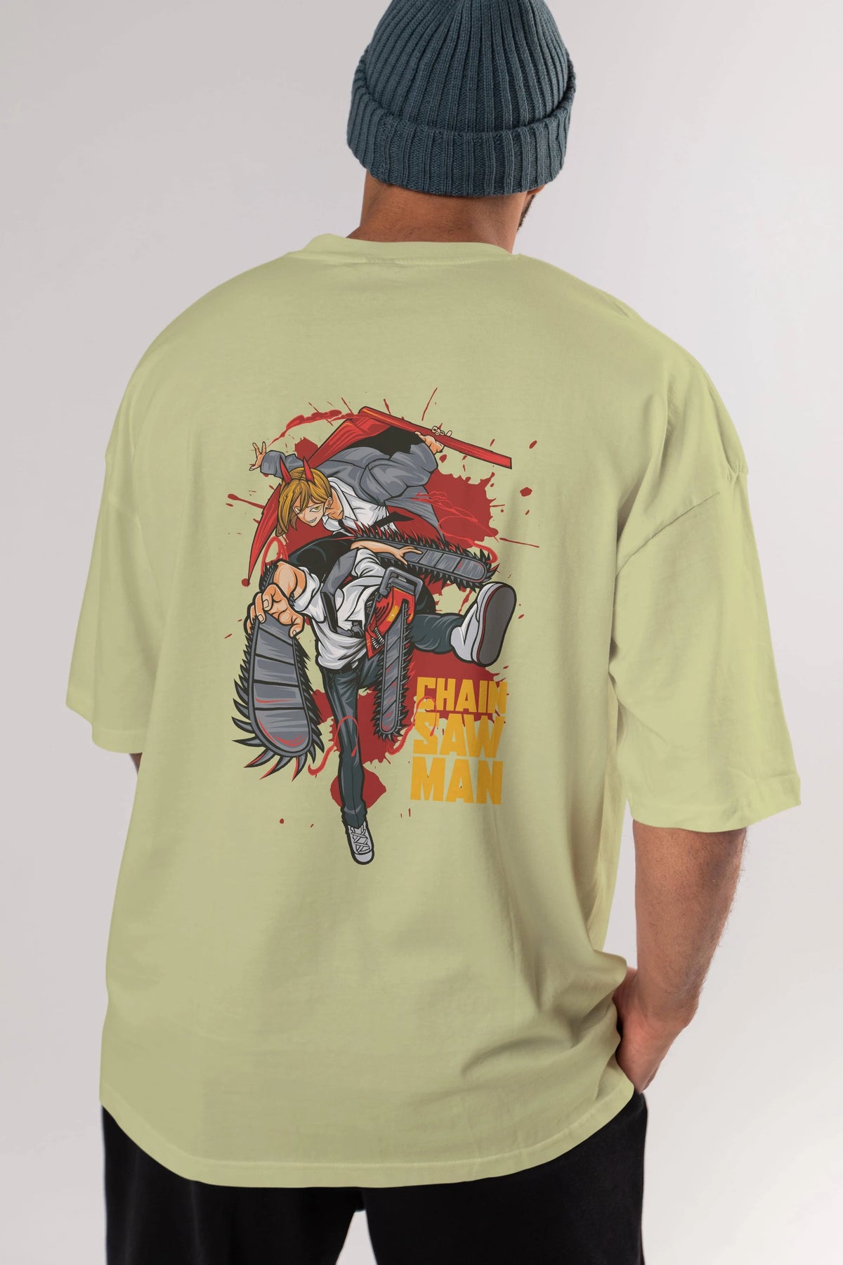 DENJI and POWER Anime Arka Baskılı Oversize t-shirt Erkek Kadın Unisex