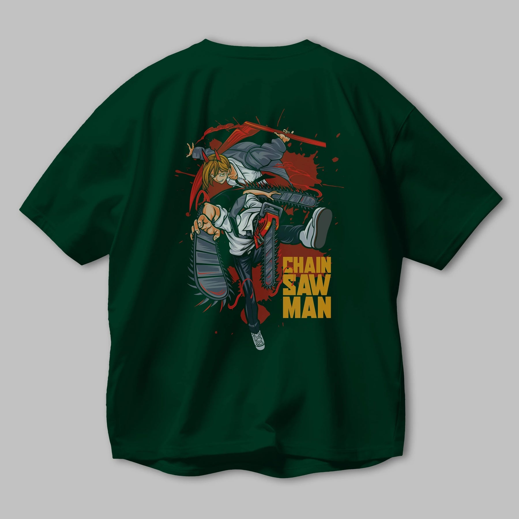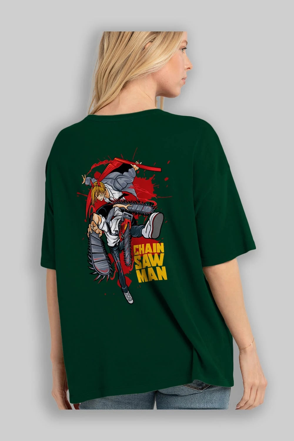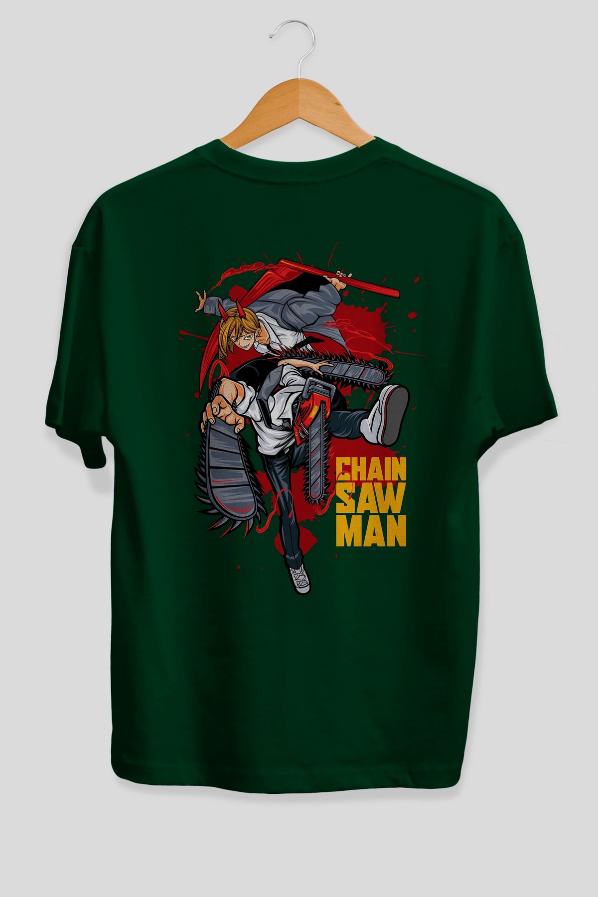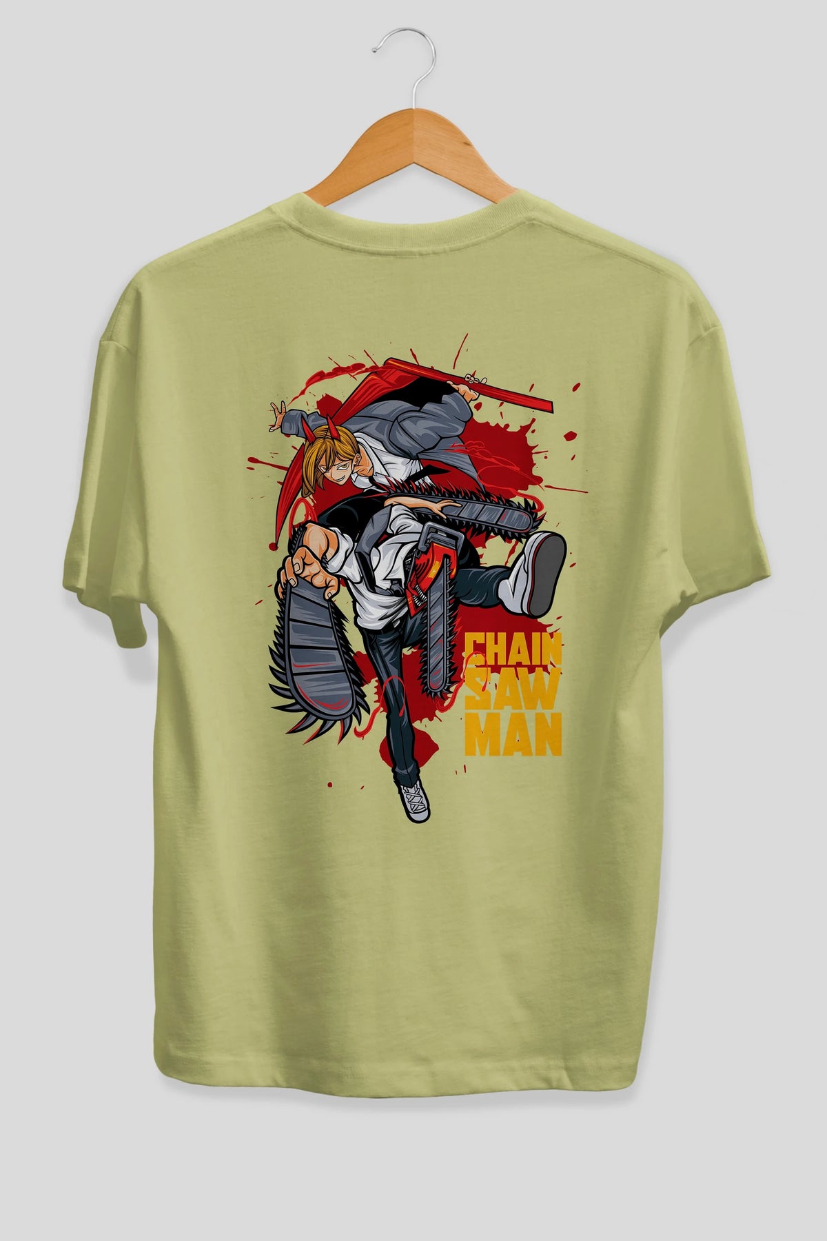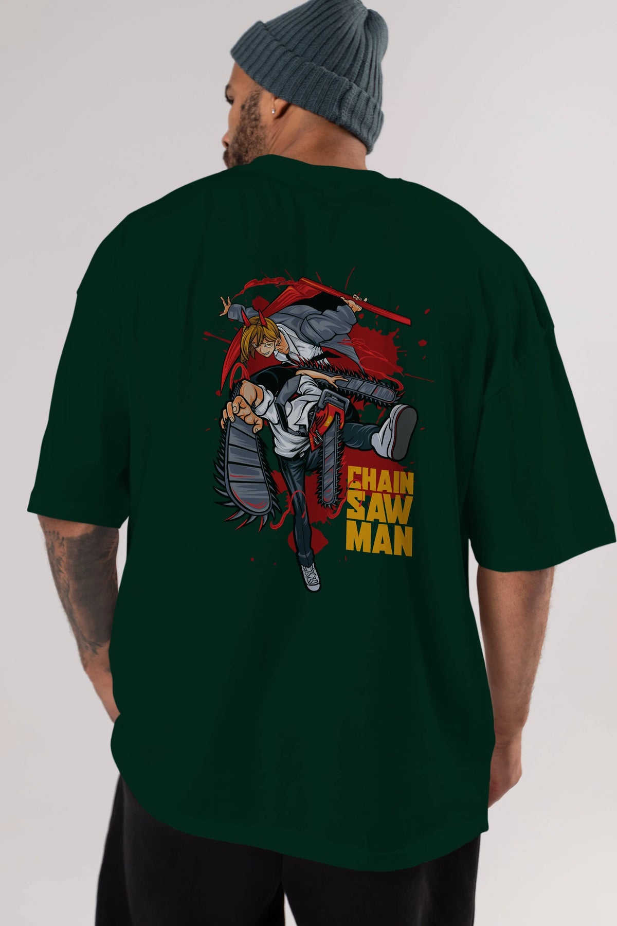 DENJI and POWER Anime Arka Baskılı Oversize t-shirt Erkek Kadın Unisex