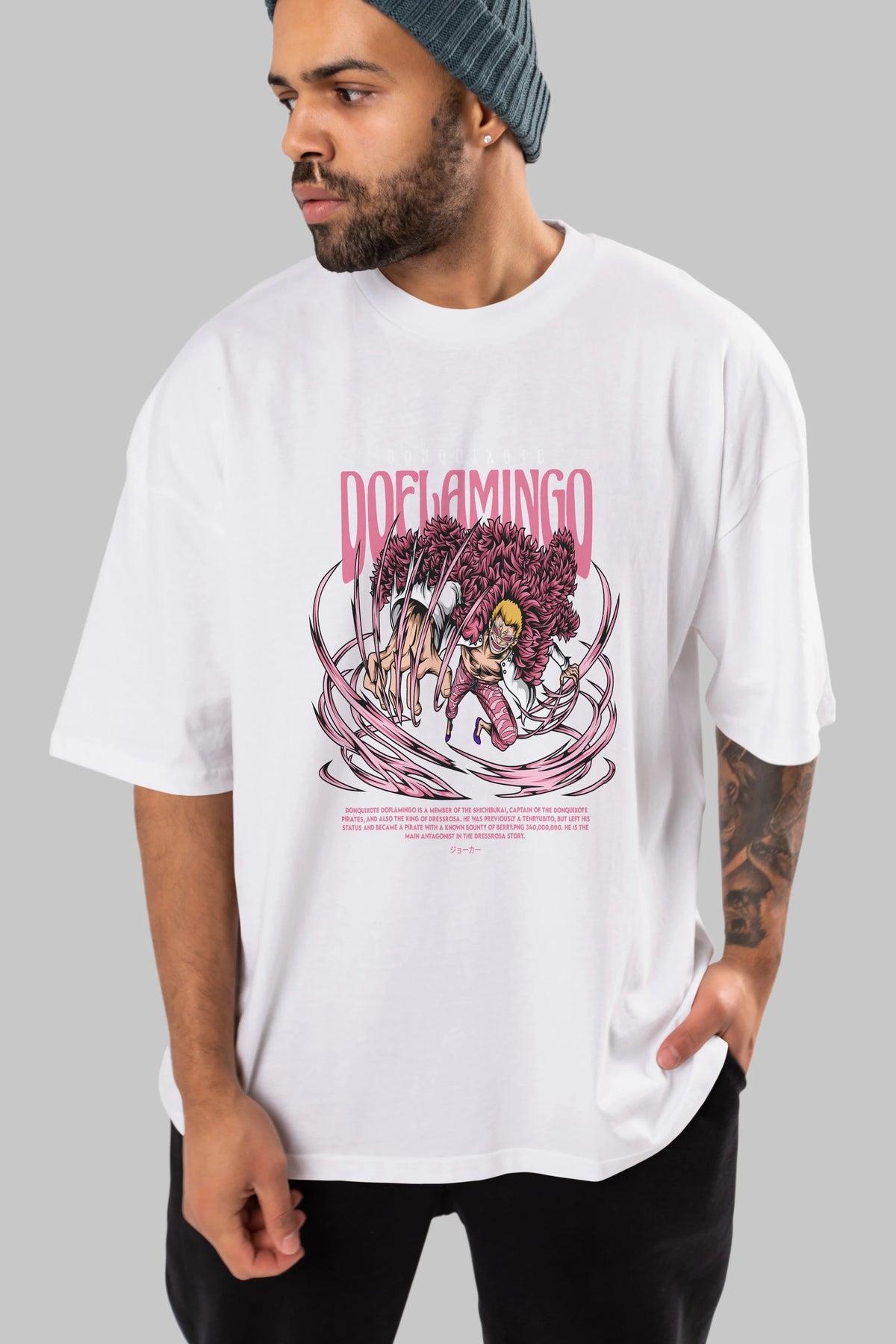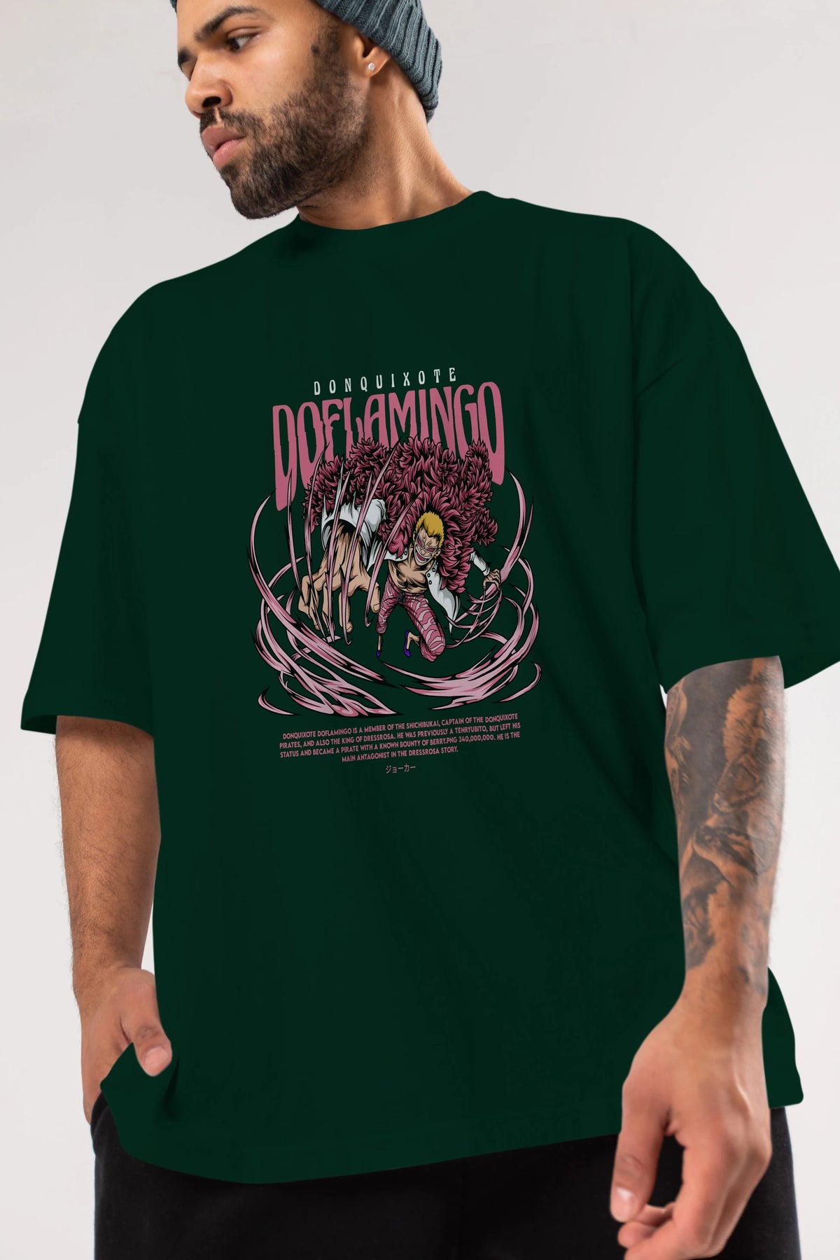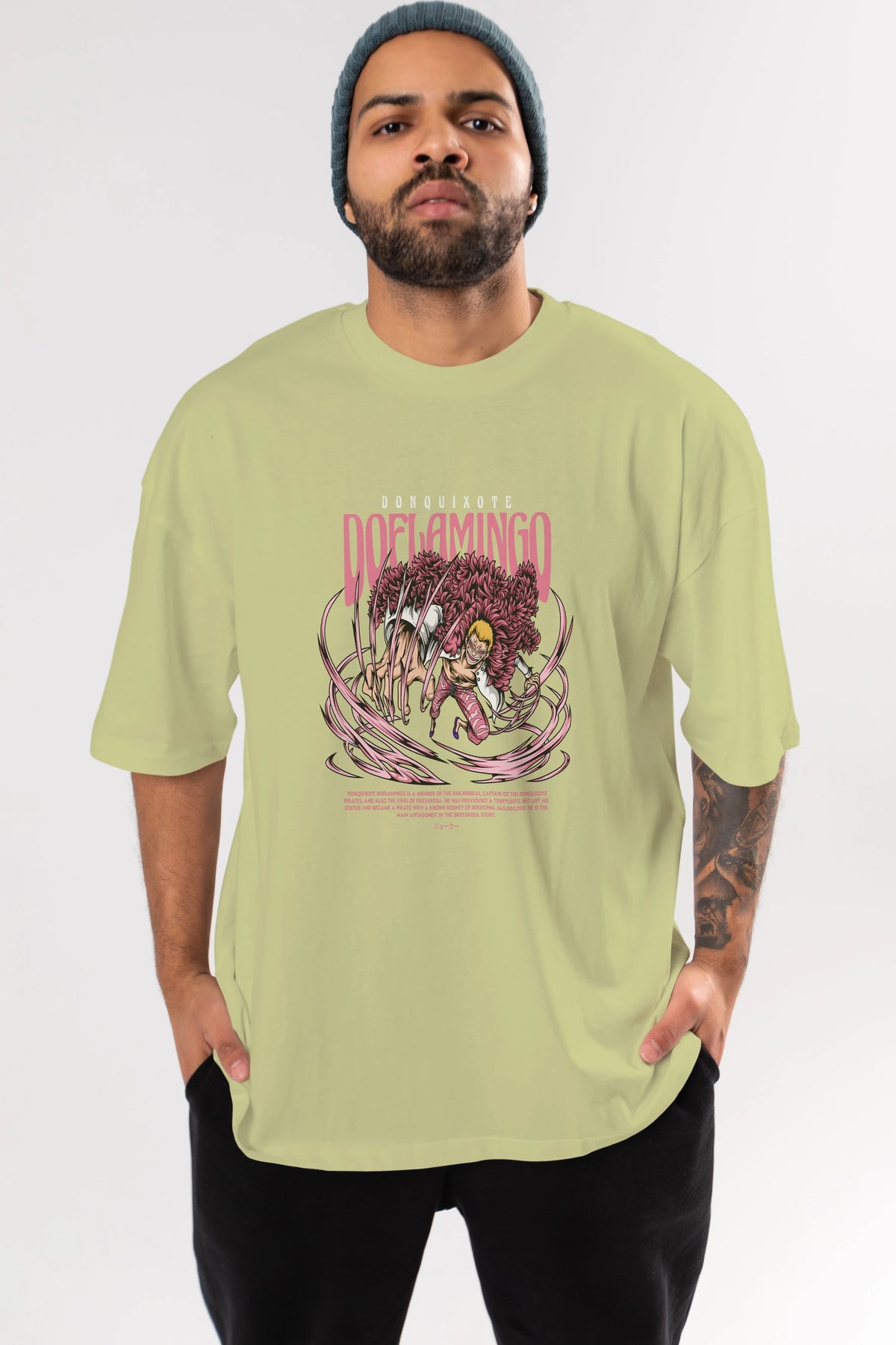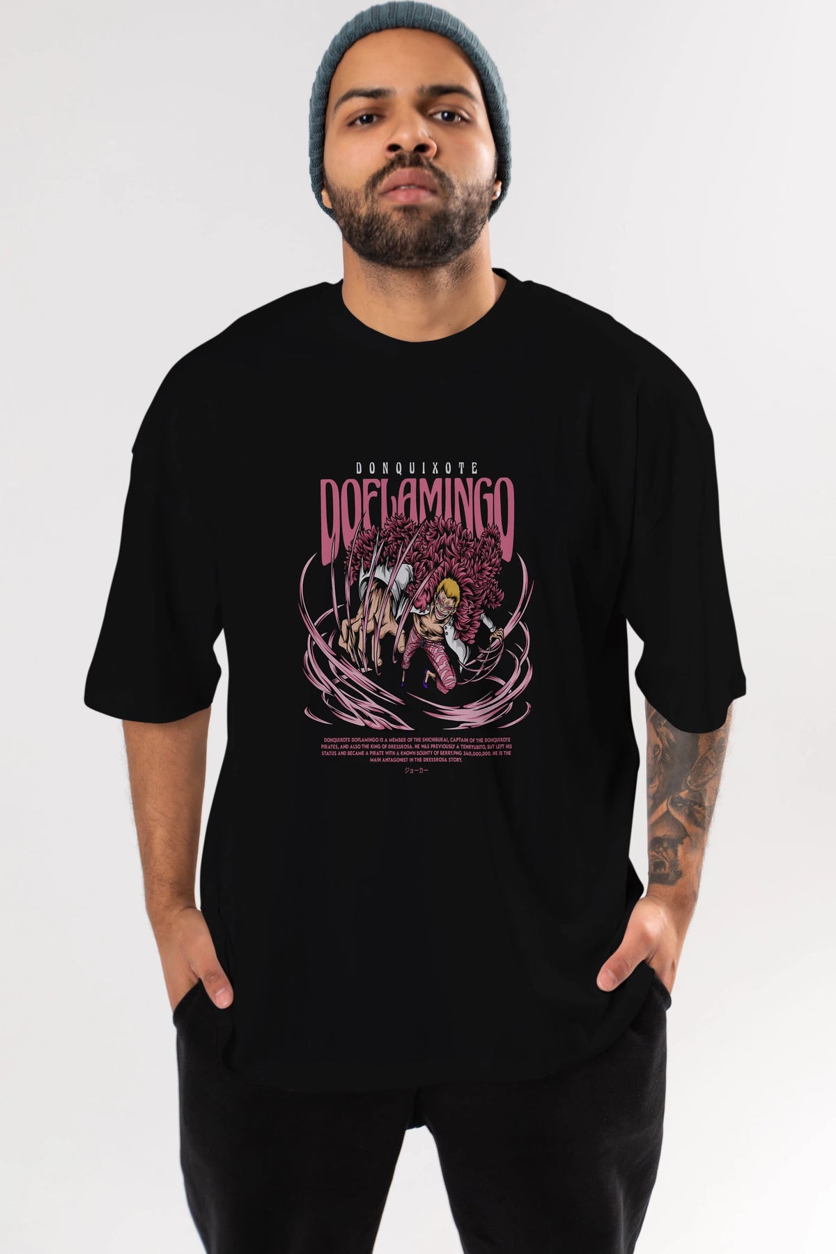 Doflamingo Anime Ön Baskılı Oversize t-shirt %100 pamuk Erkek Kadın Unisex