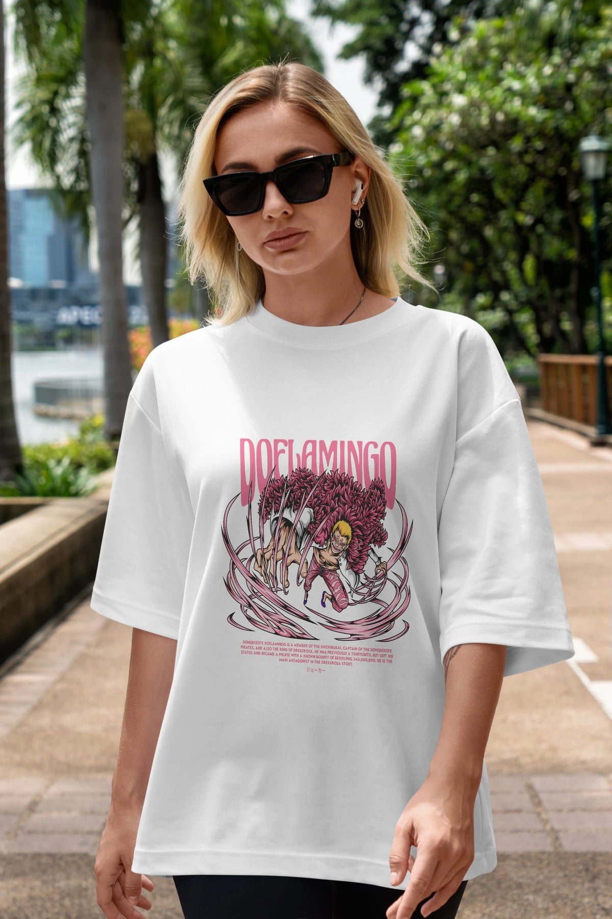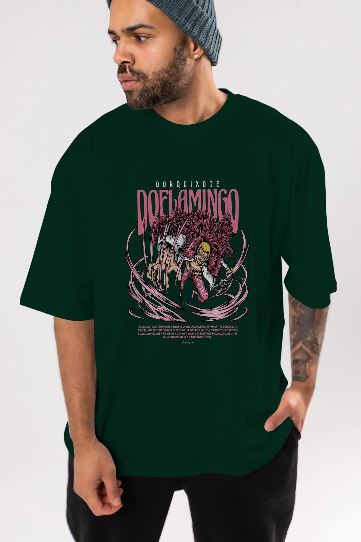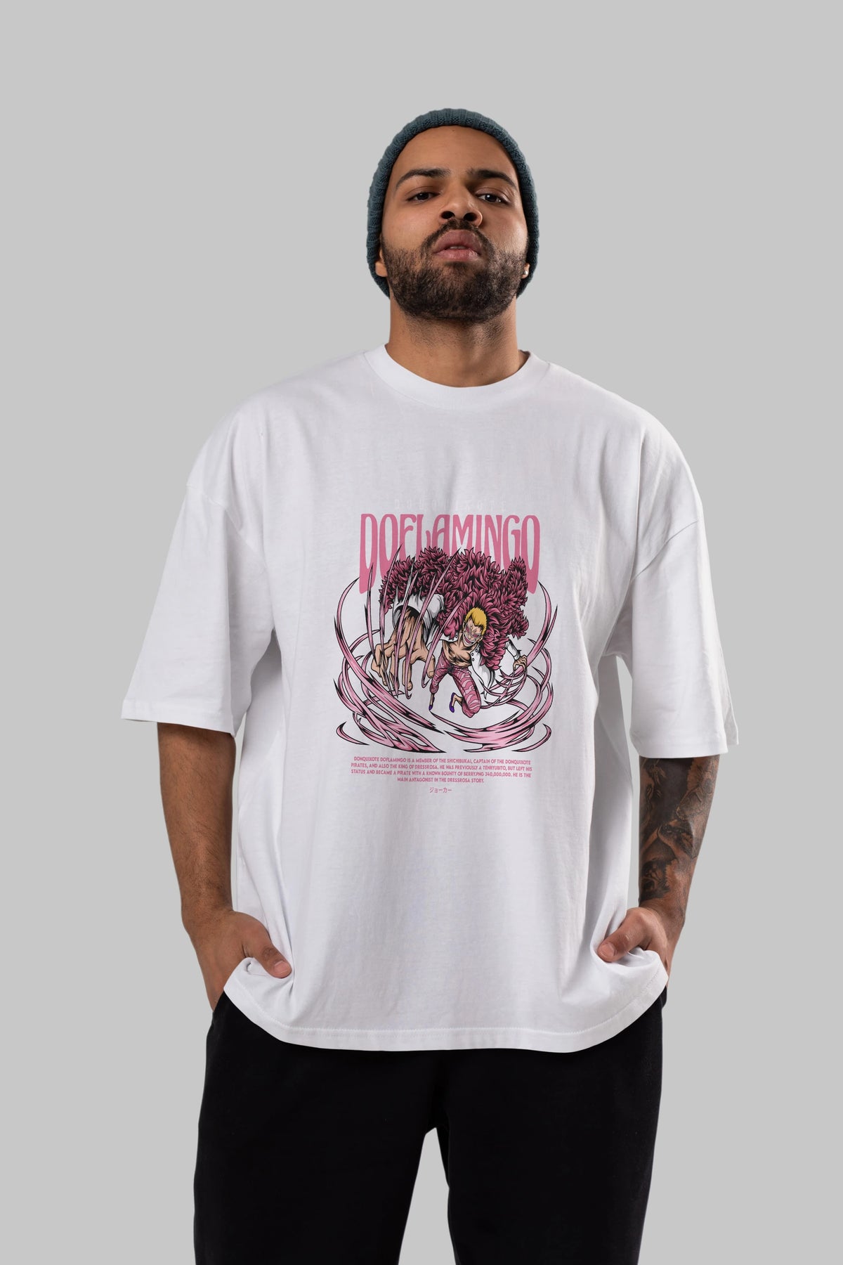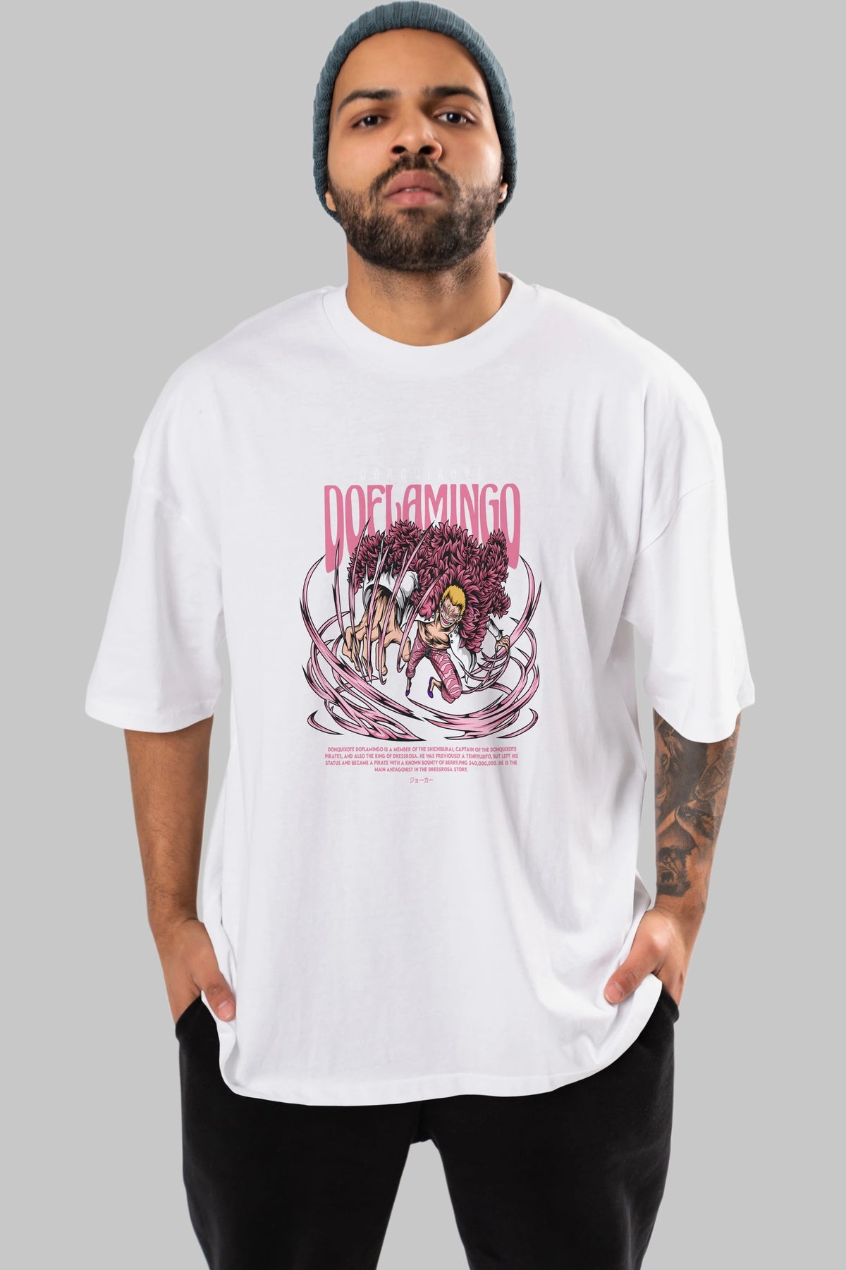 Doflamingo Anime Ön Baskılı Oversize t-shirt %100 pamuk Erkek Kadın Unisex