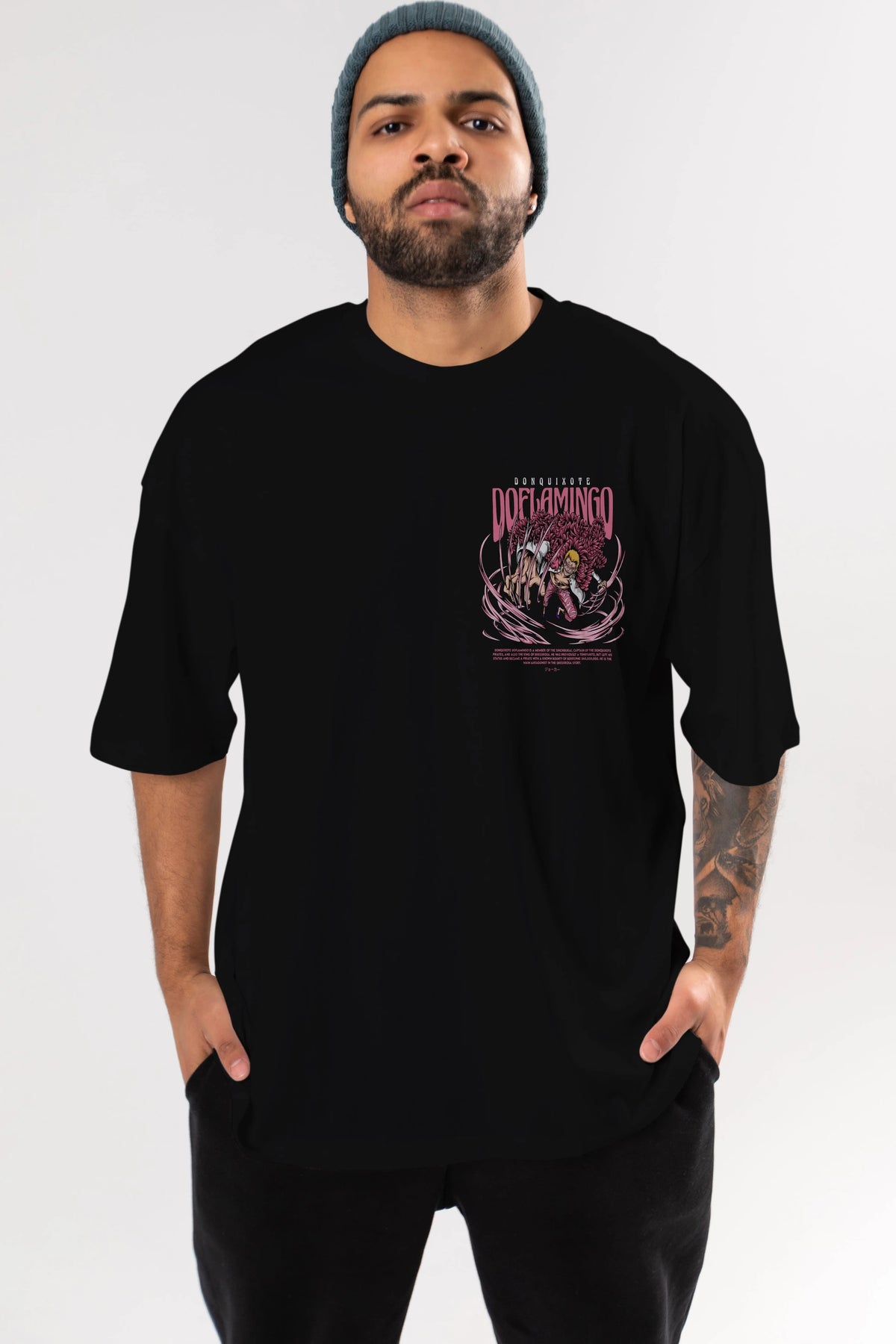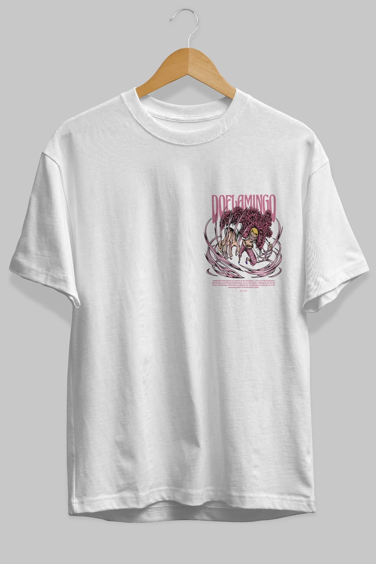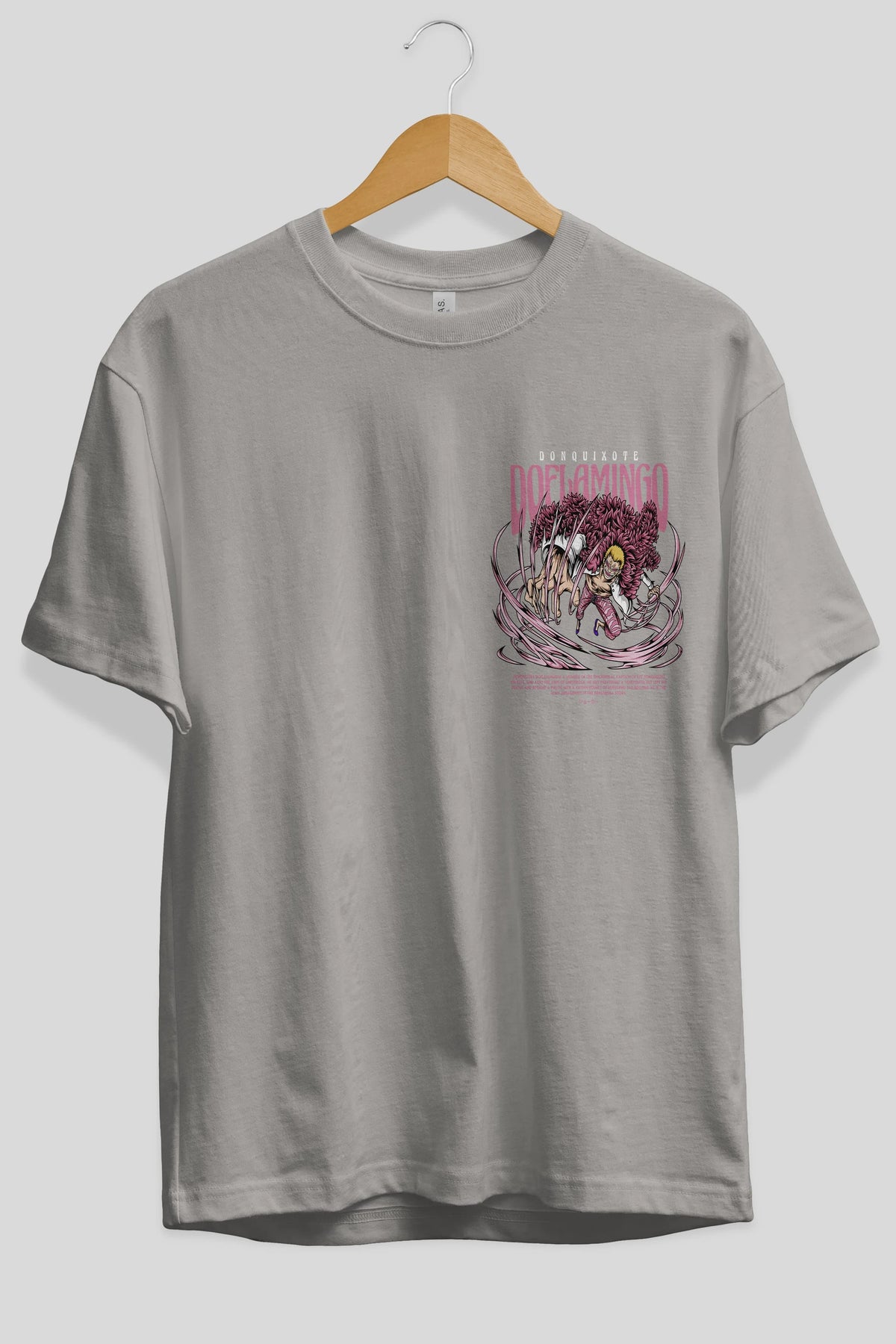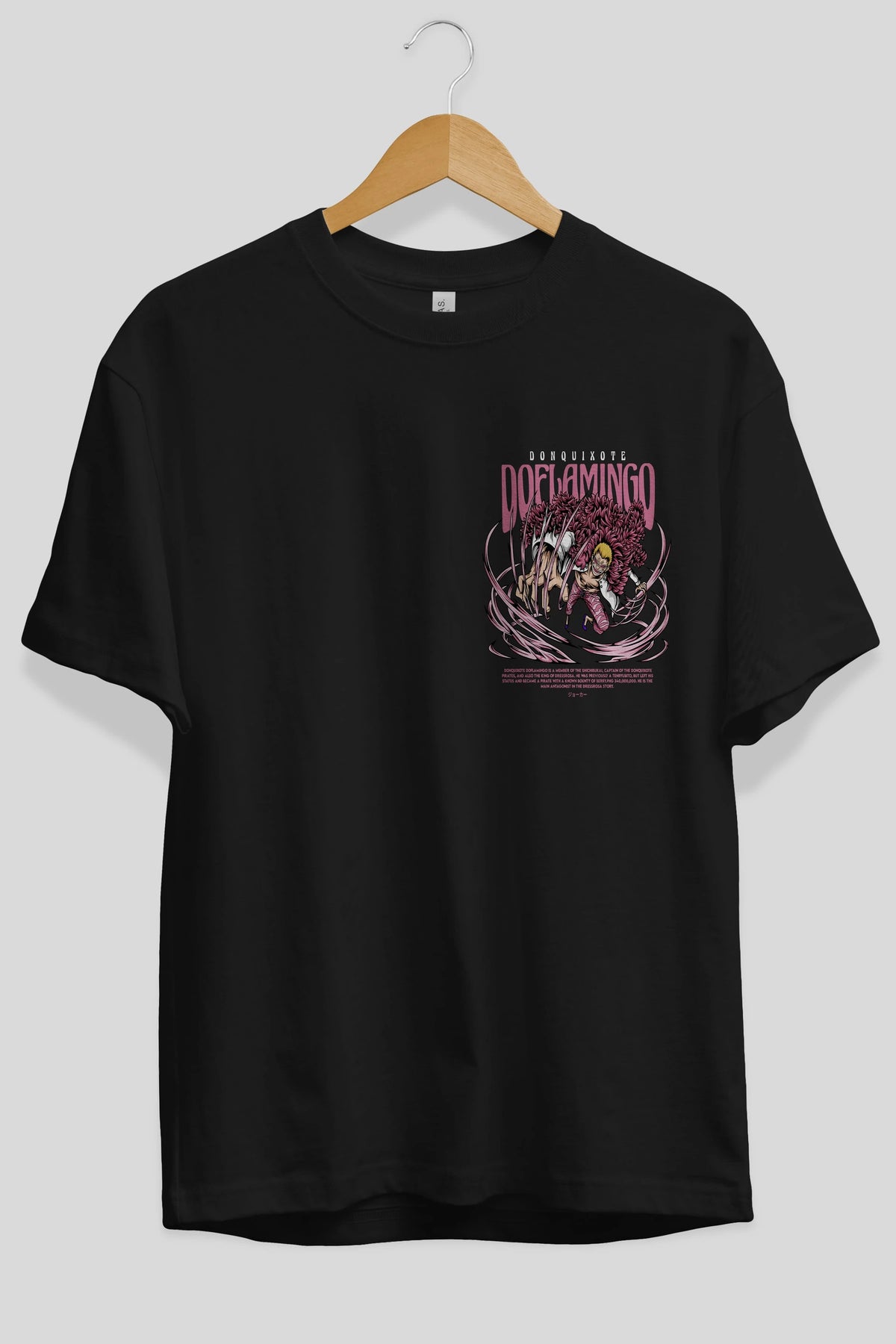 Doflamingo Ön Sol Baskılı Oversize t-shirt Erkek Kadın Unisex %100 Pamuk Bisiklet Yaka tişort