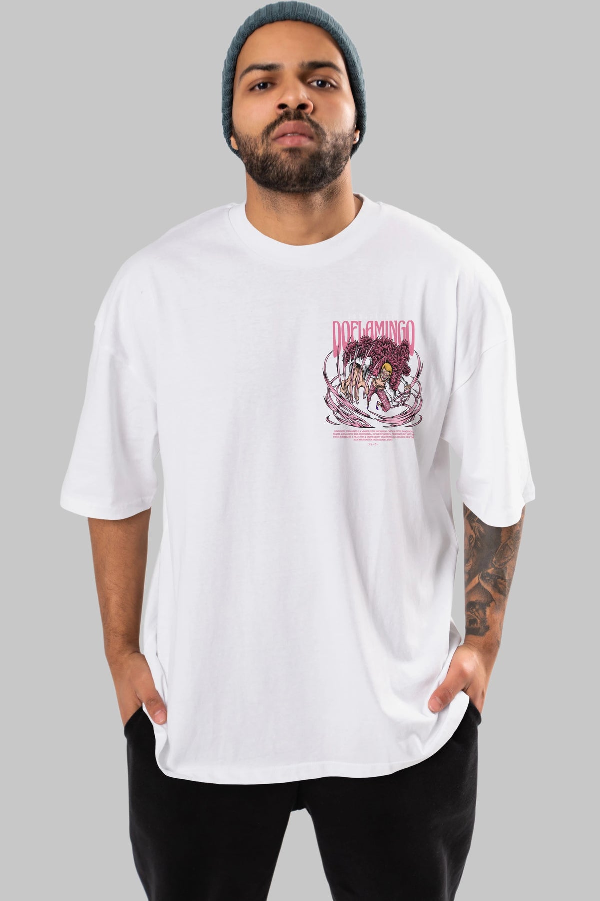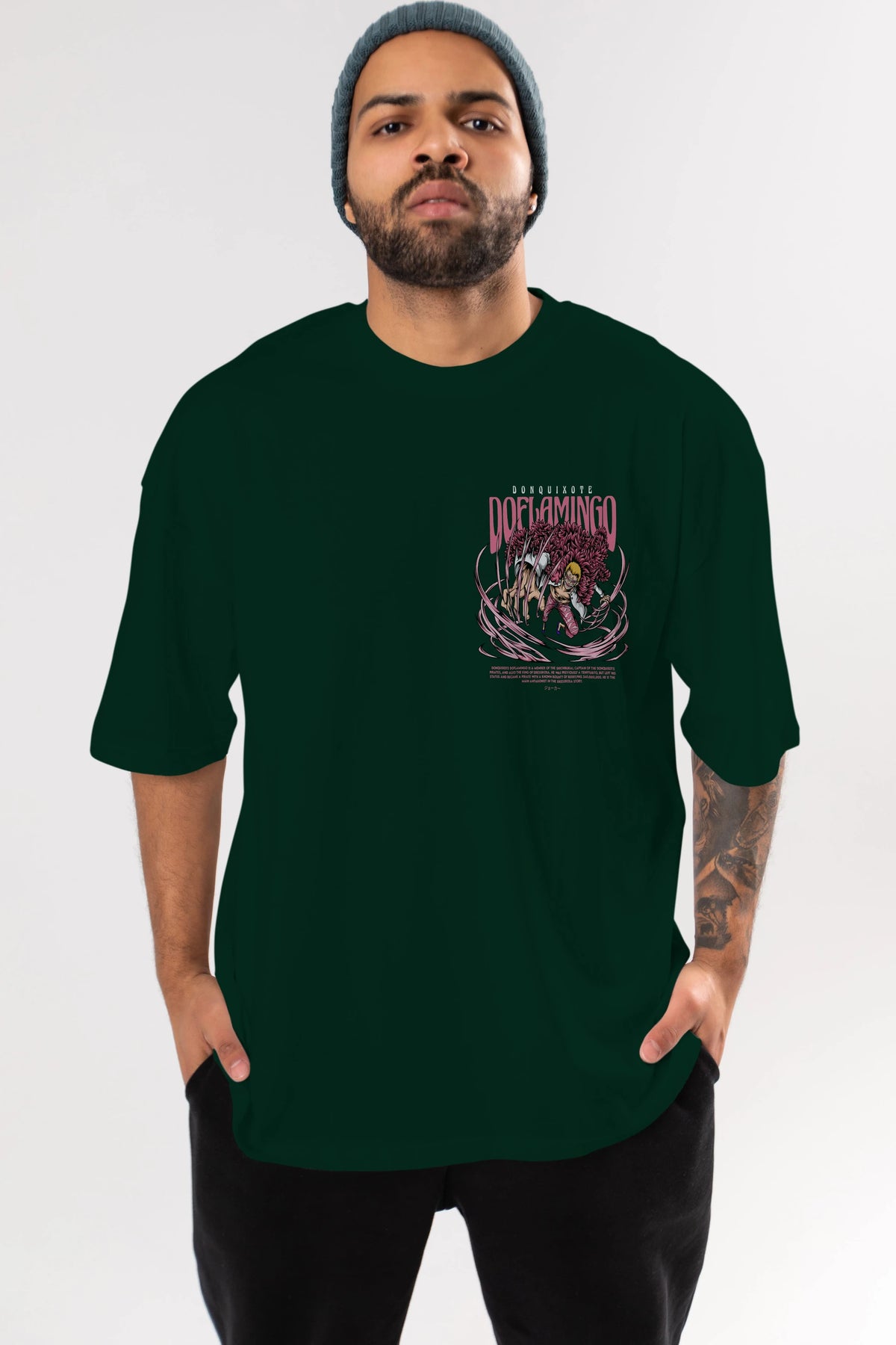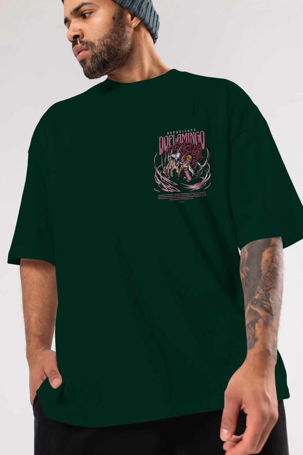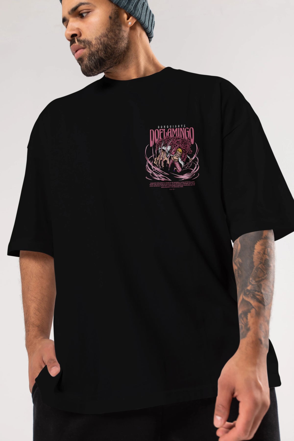 Doflamingo Ön Sol Baskılı Oversize t-shirt Erkek Kadın Unisex %100 Pamuk Bisiklet Yaka tişort