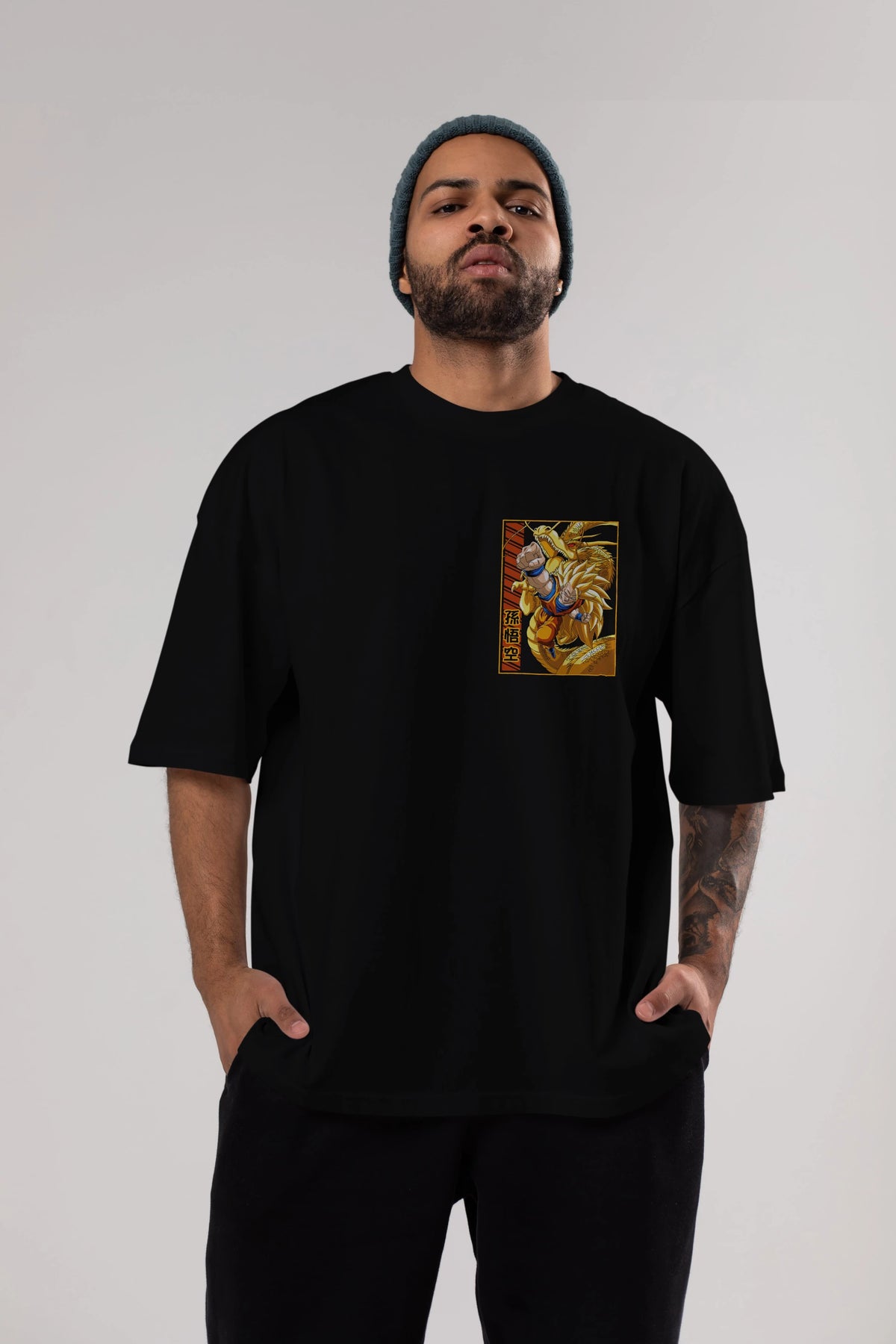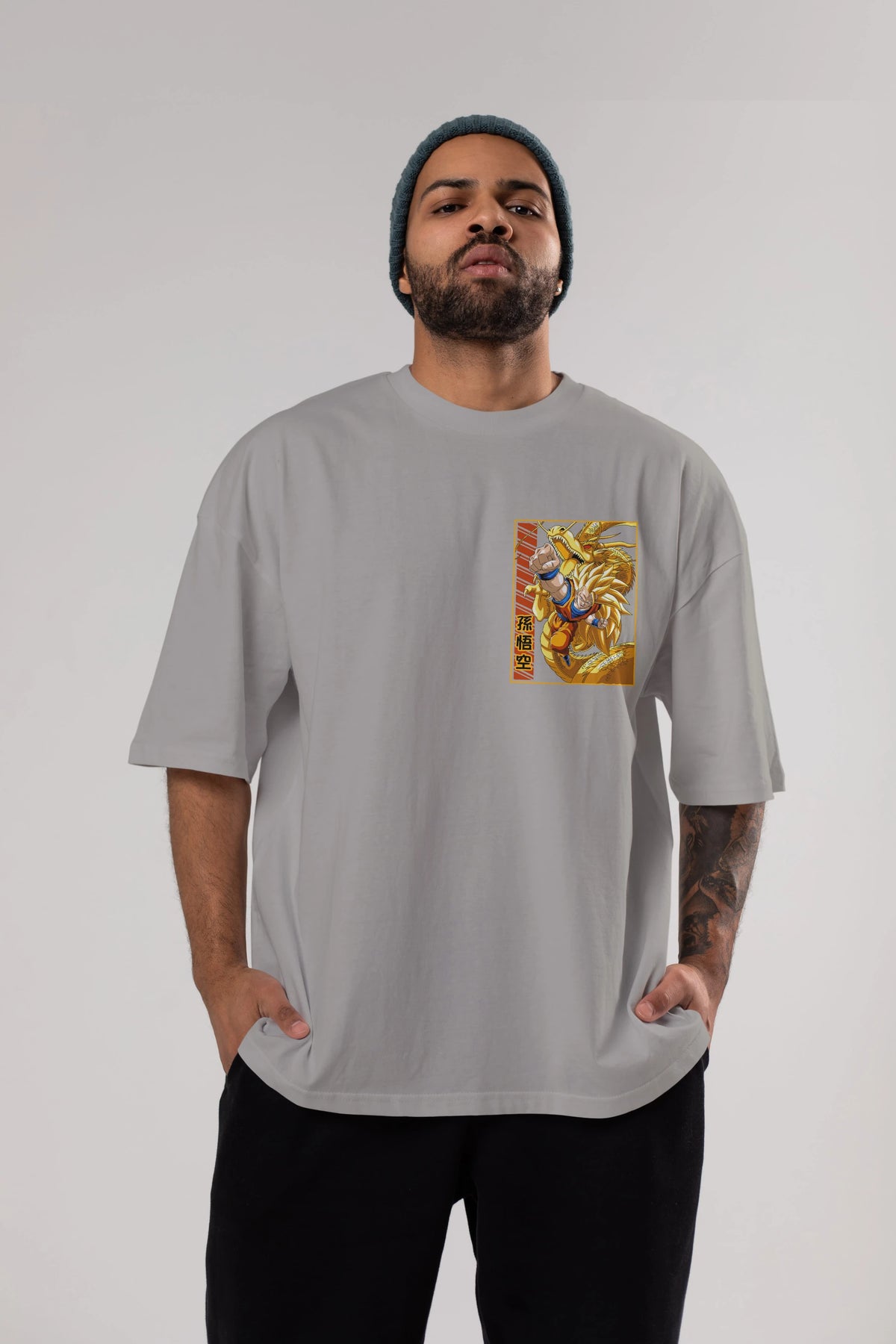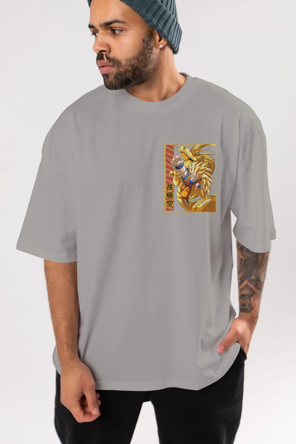 DragonBall Goku Ön Sol Baskılı Oversize t-shirt Erkek Kadın Unisex %100 Pamuk Bisiklet Yaka tişort