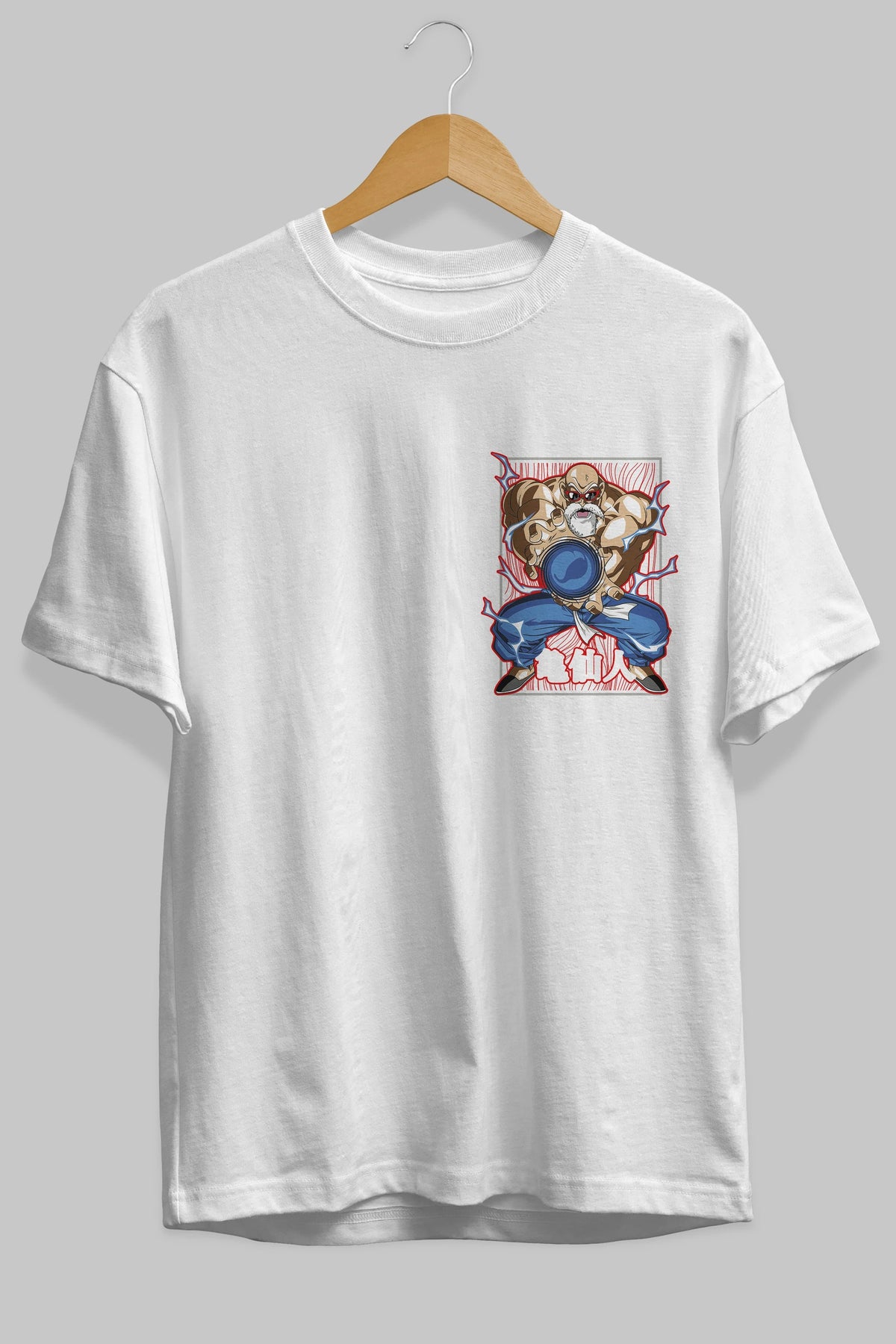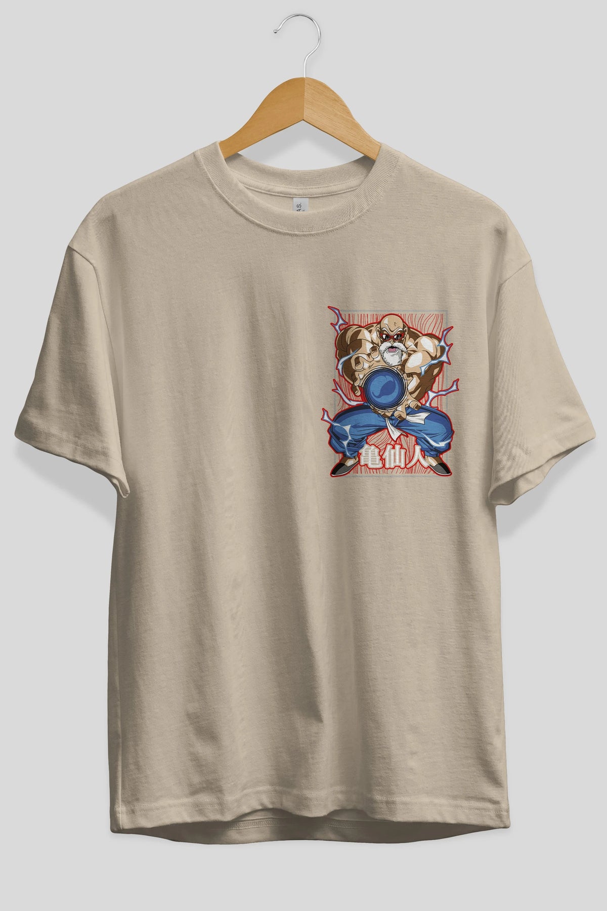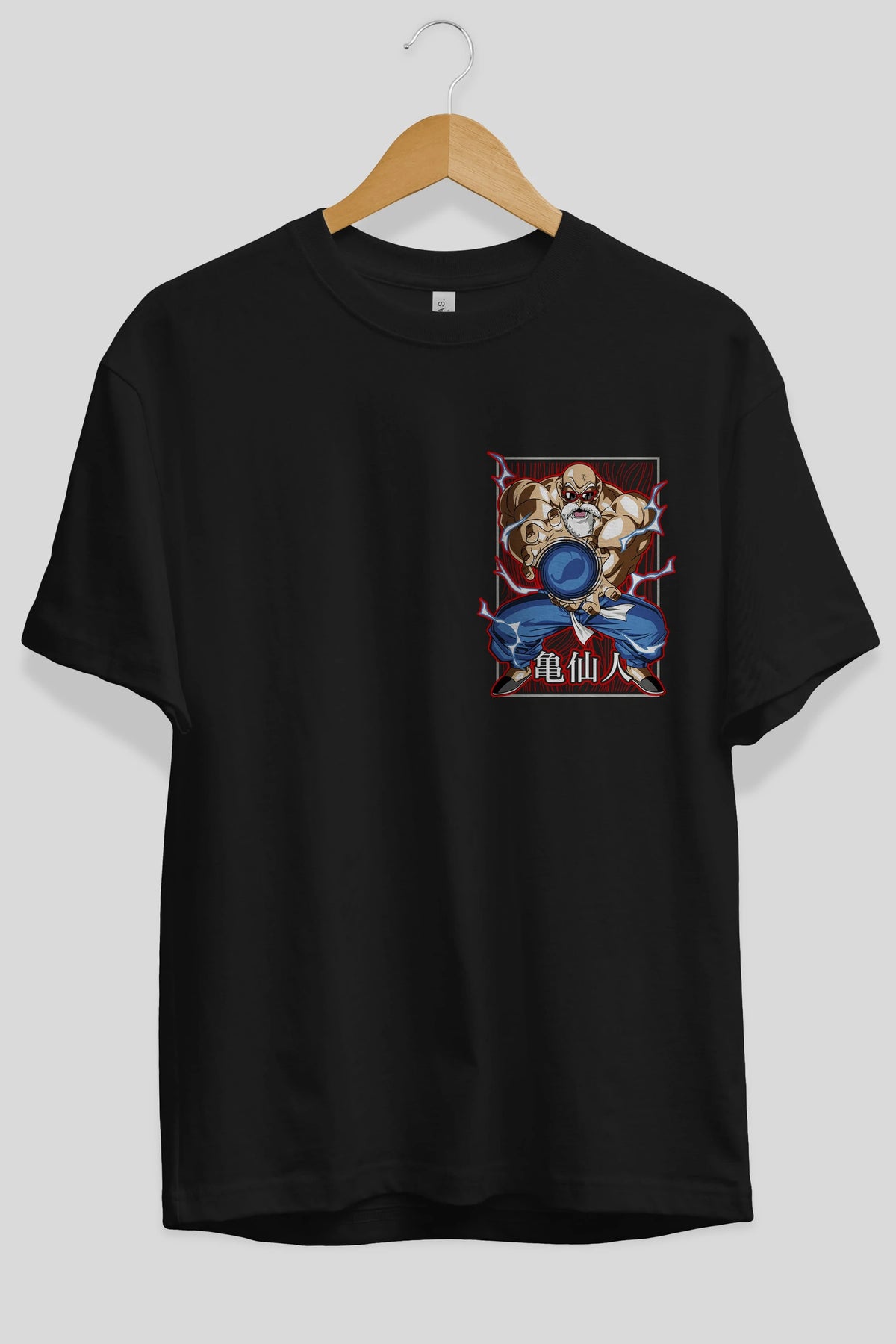 DragonBall MaestroRoshi Ön Sol Baskılı Oversize t-shirt Erkek Kadın Unisex %100 Pamuk Bisiklet Yaka tişort