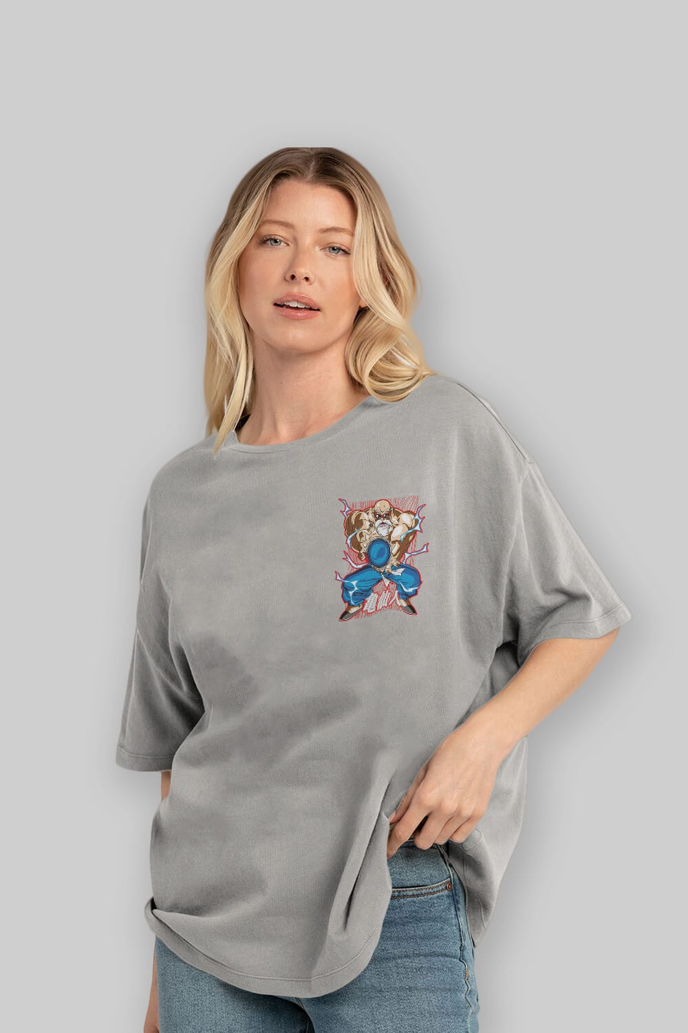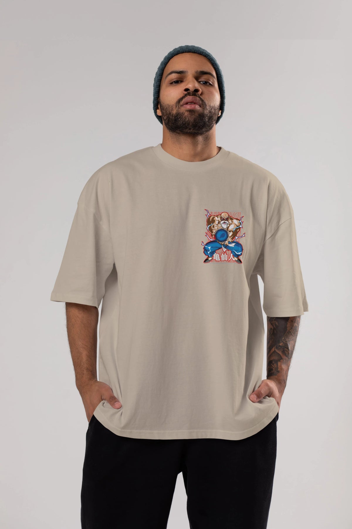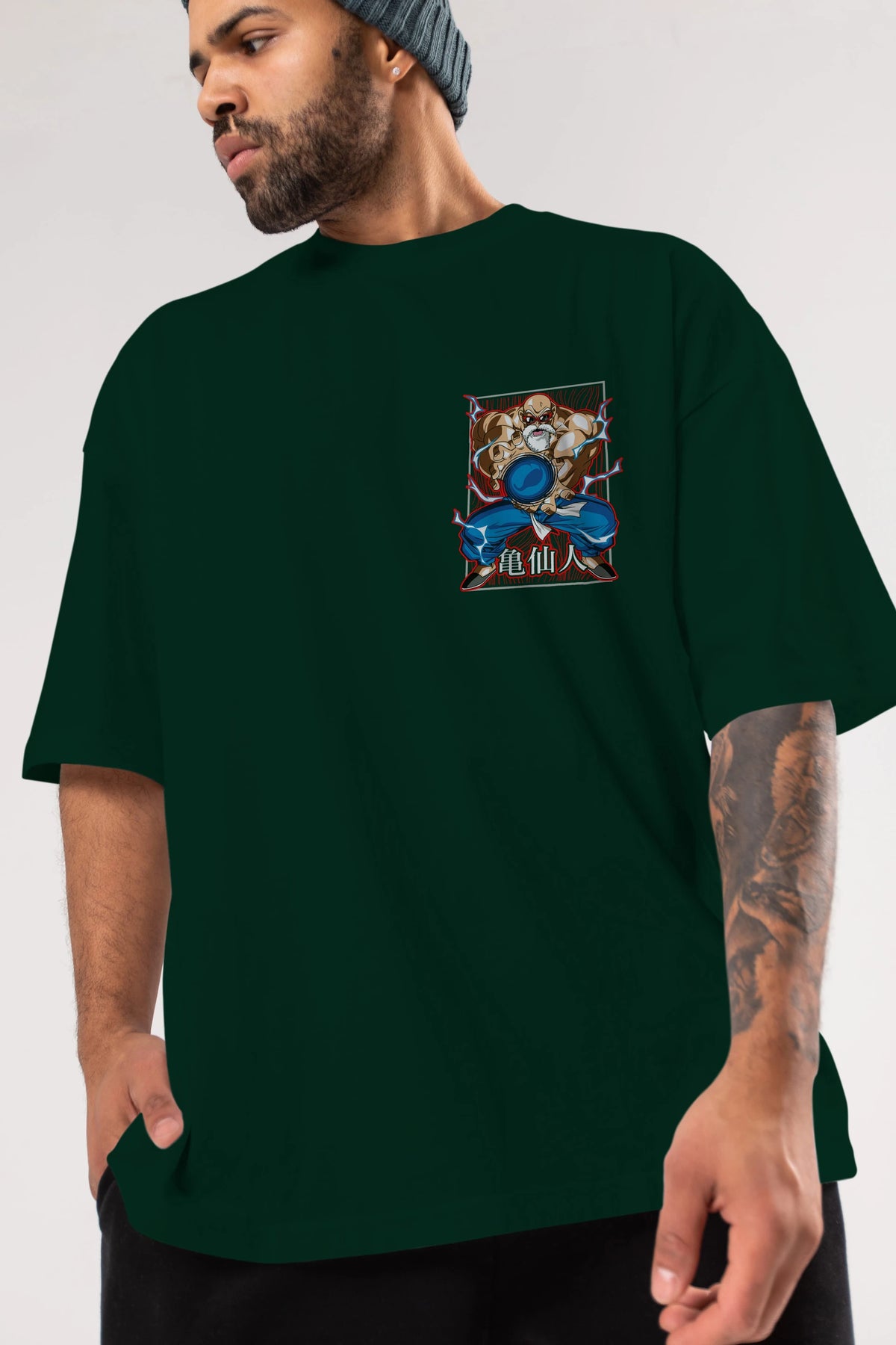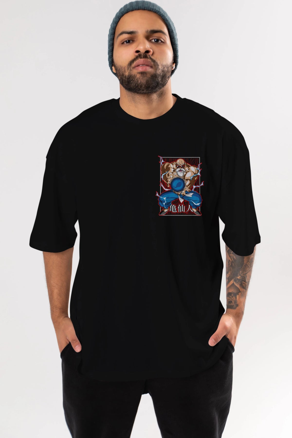 DragonBall MaestroRoshi Ön Sol Baskılı Oversize t-shirt Erkek Kadın Unisex %100 Pamuk Bisiklet Yaka tişort