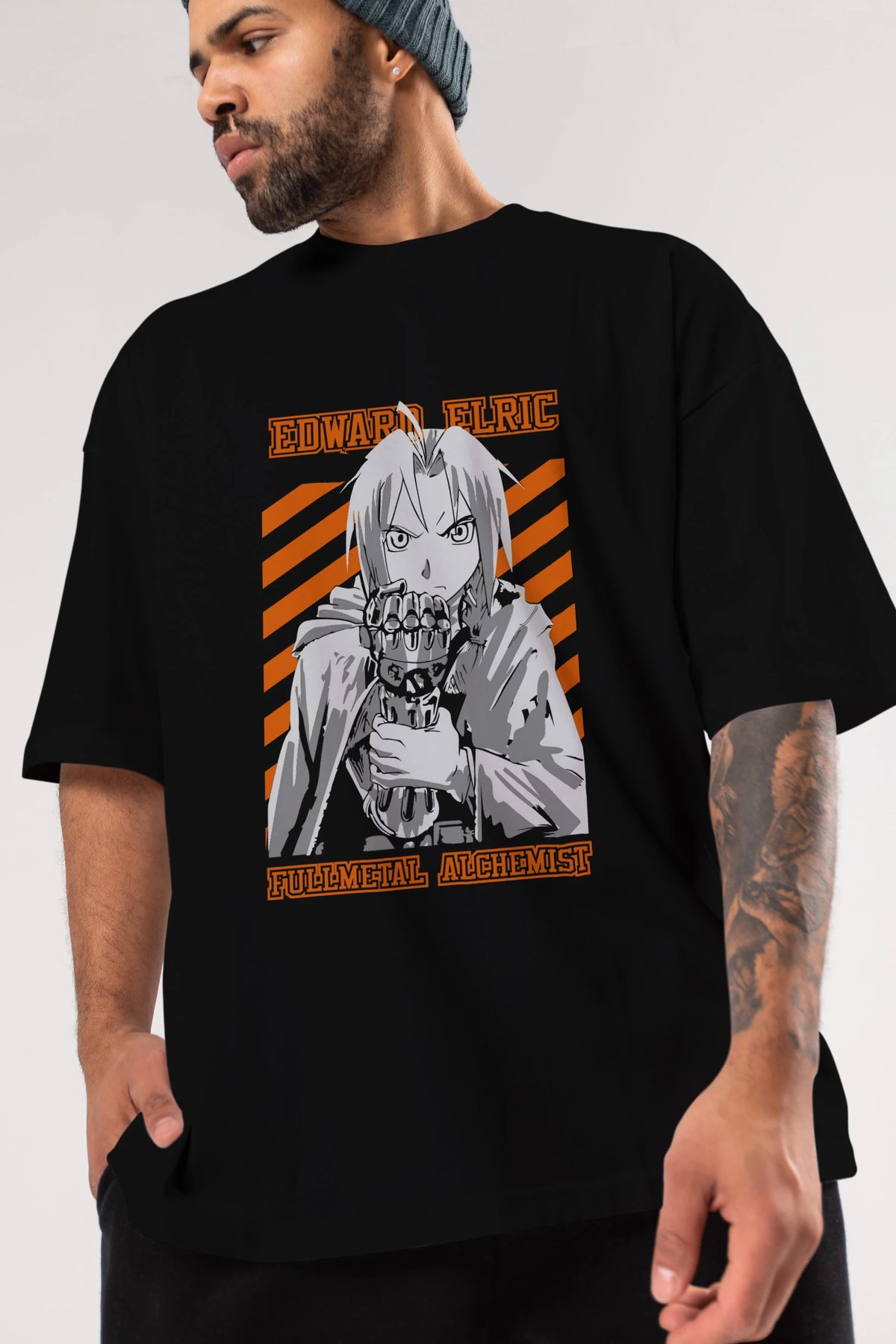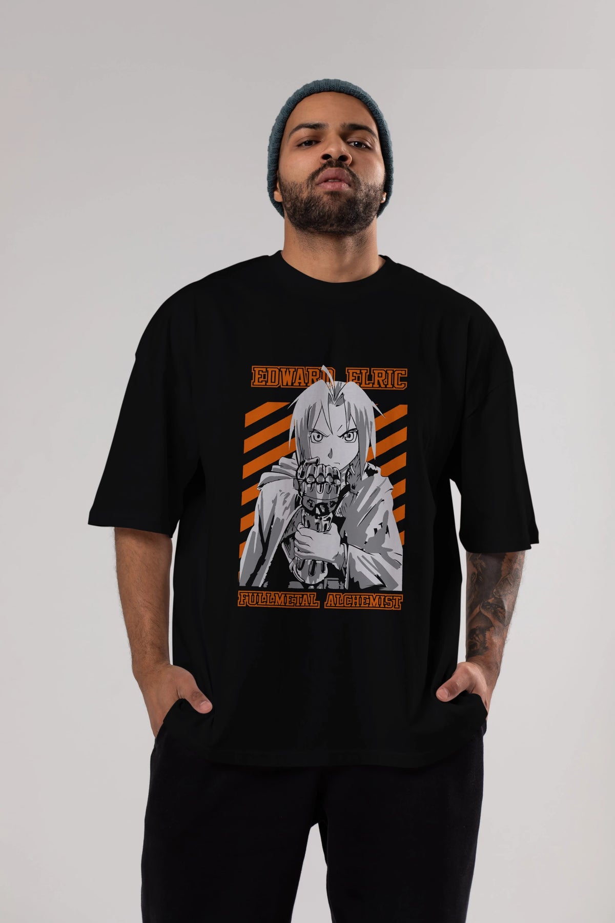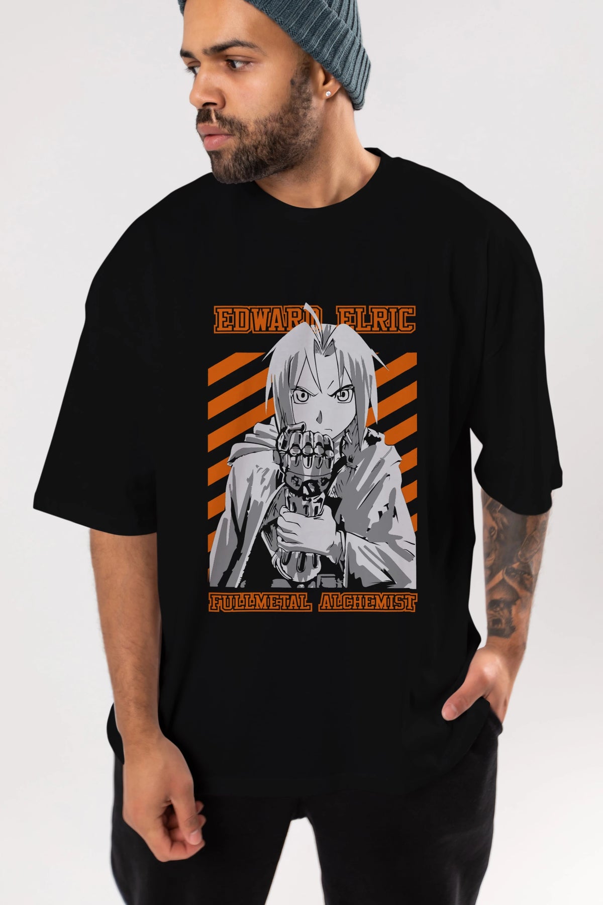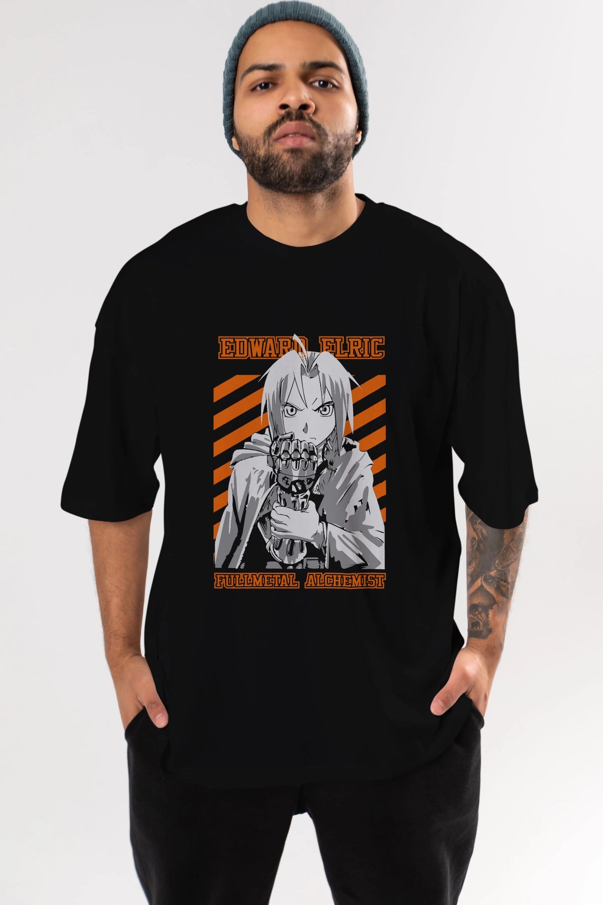 EDWARD ELRIC Anime Ön Baskılı Oversize t-shirt %100 pamuk Erkek Kadın Unisex