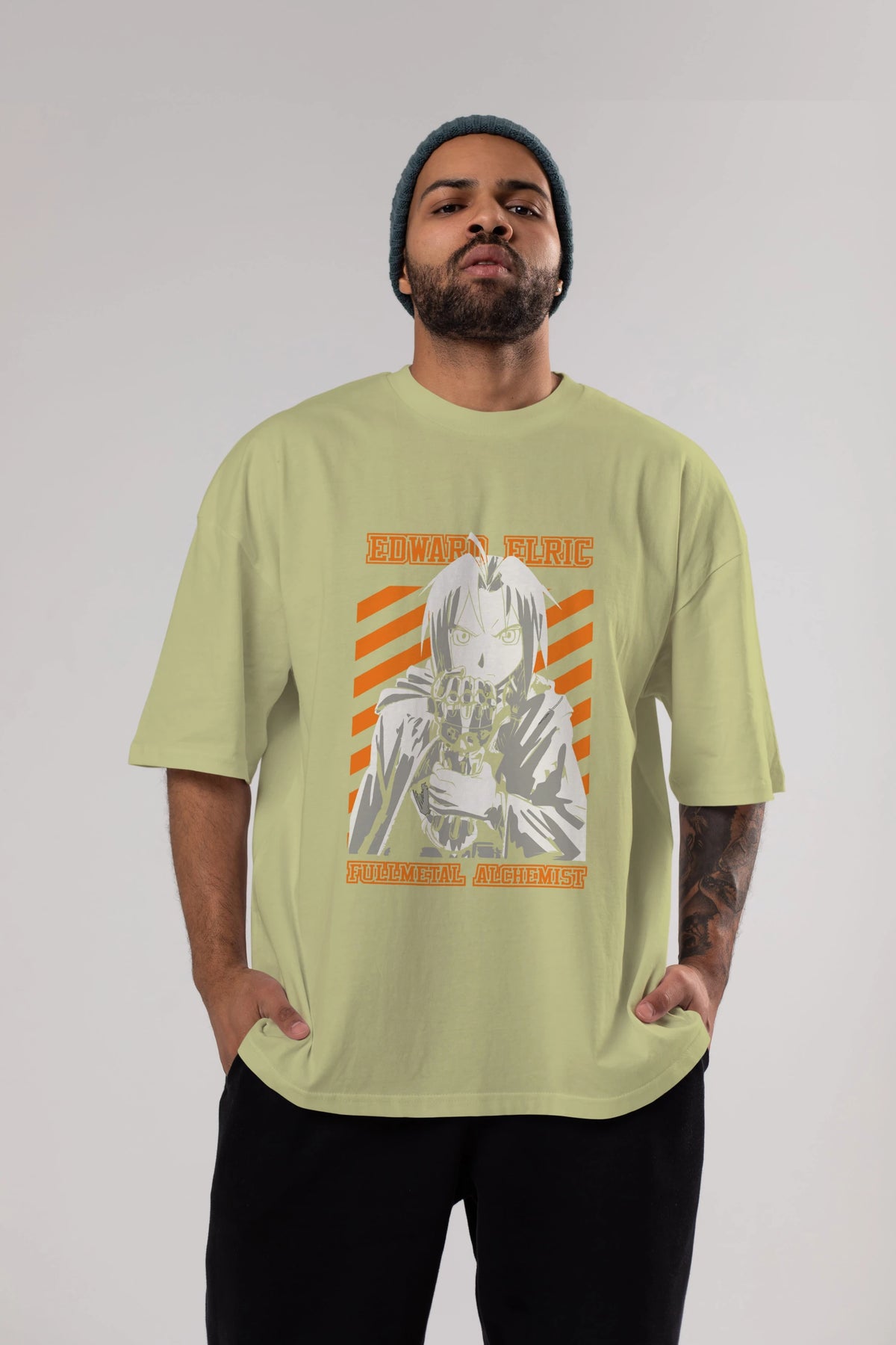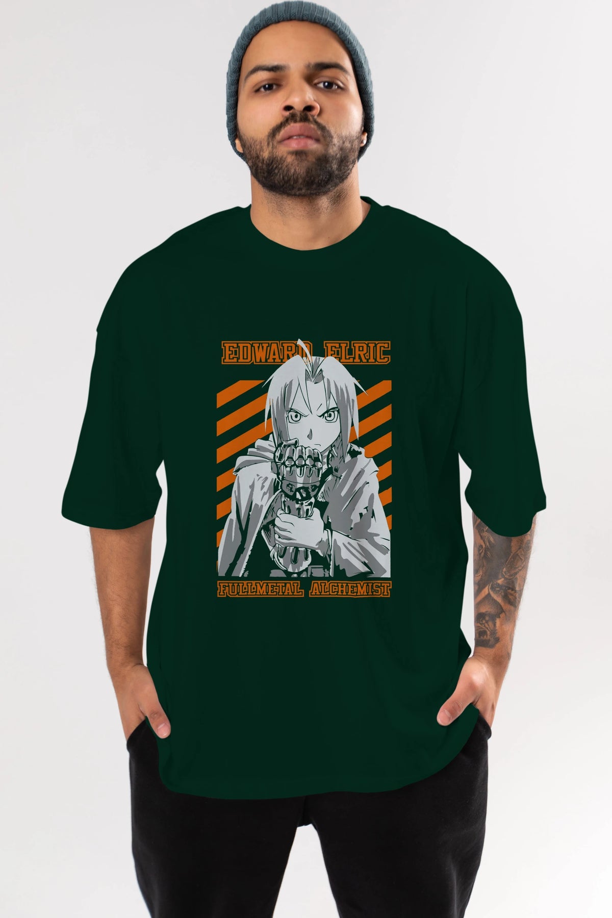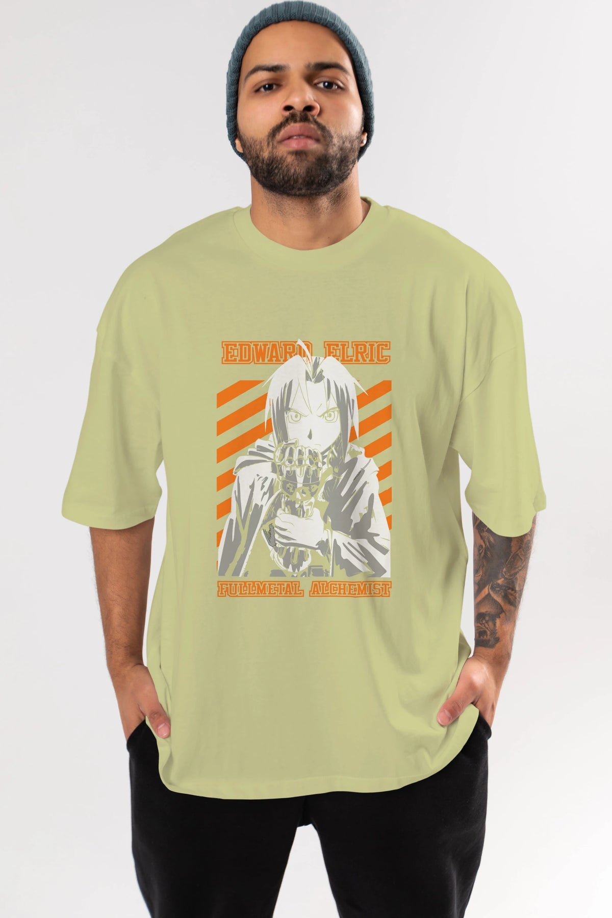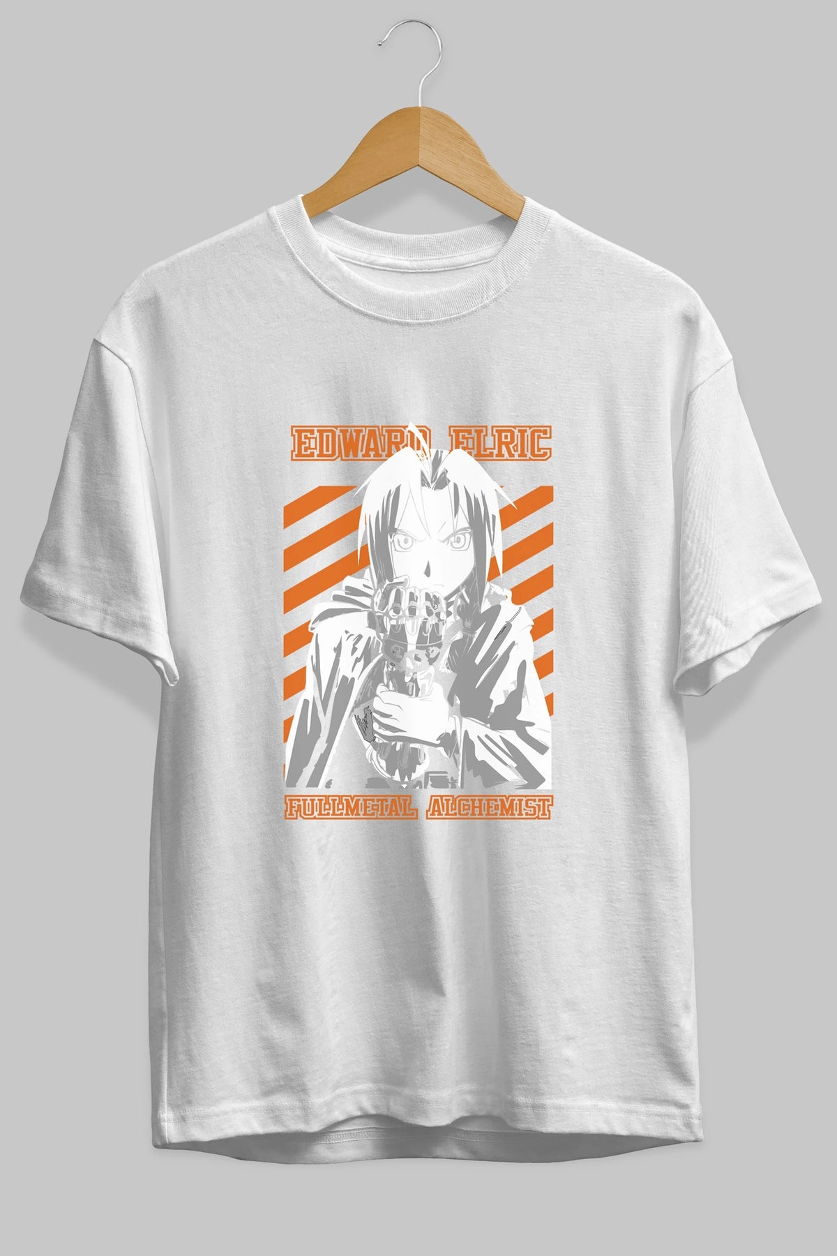 EDWARD ELRIC Anime Ön Baskılı Oversize t-shirt %100 pamuk Erkek Kadın Unisex