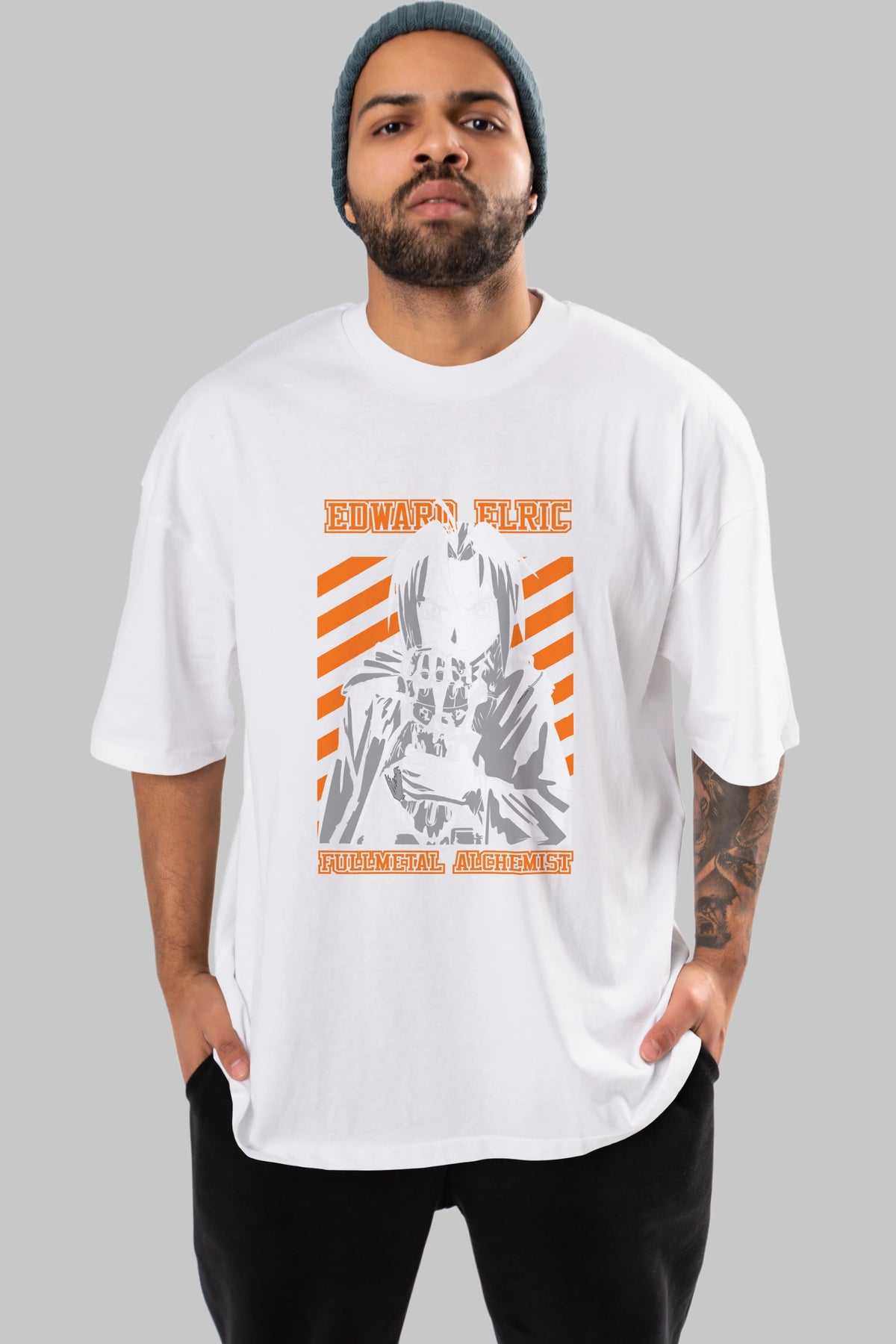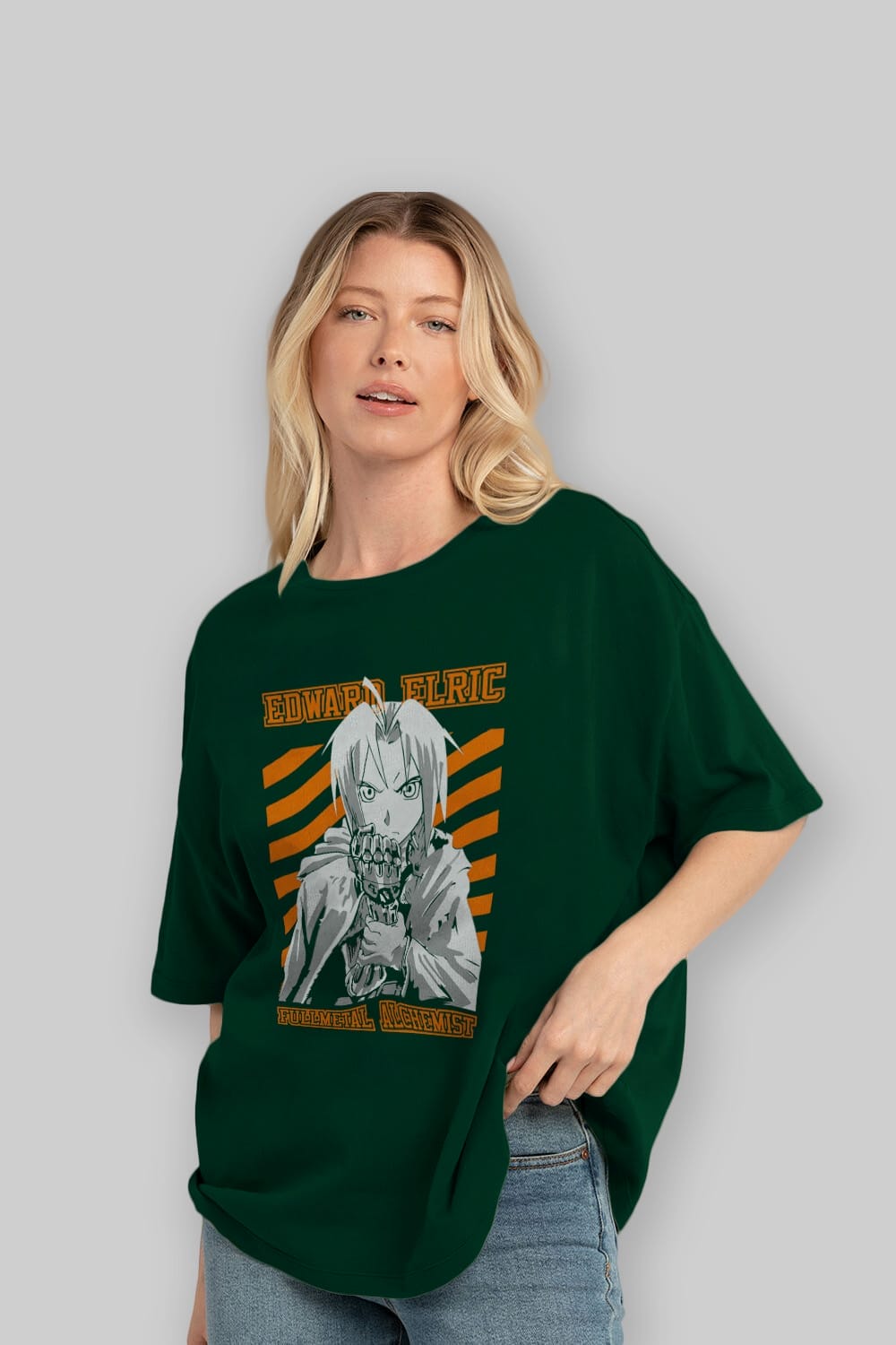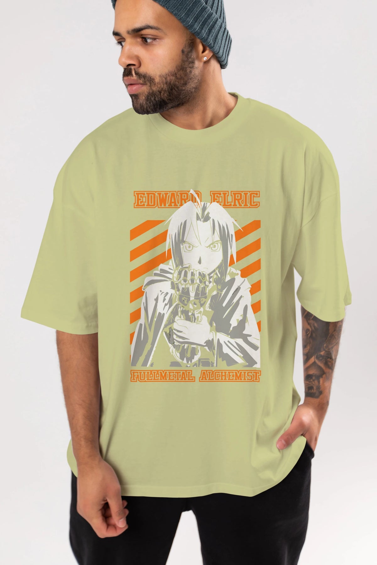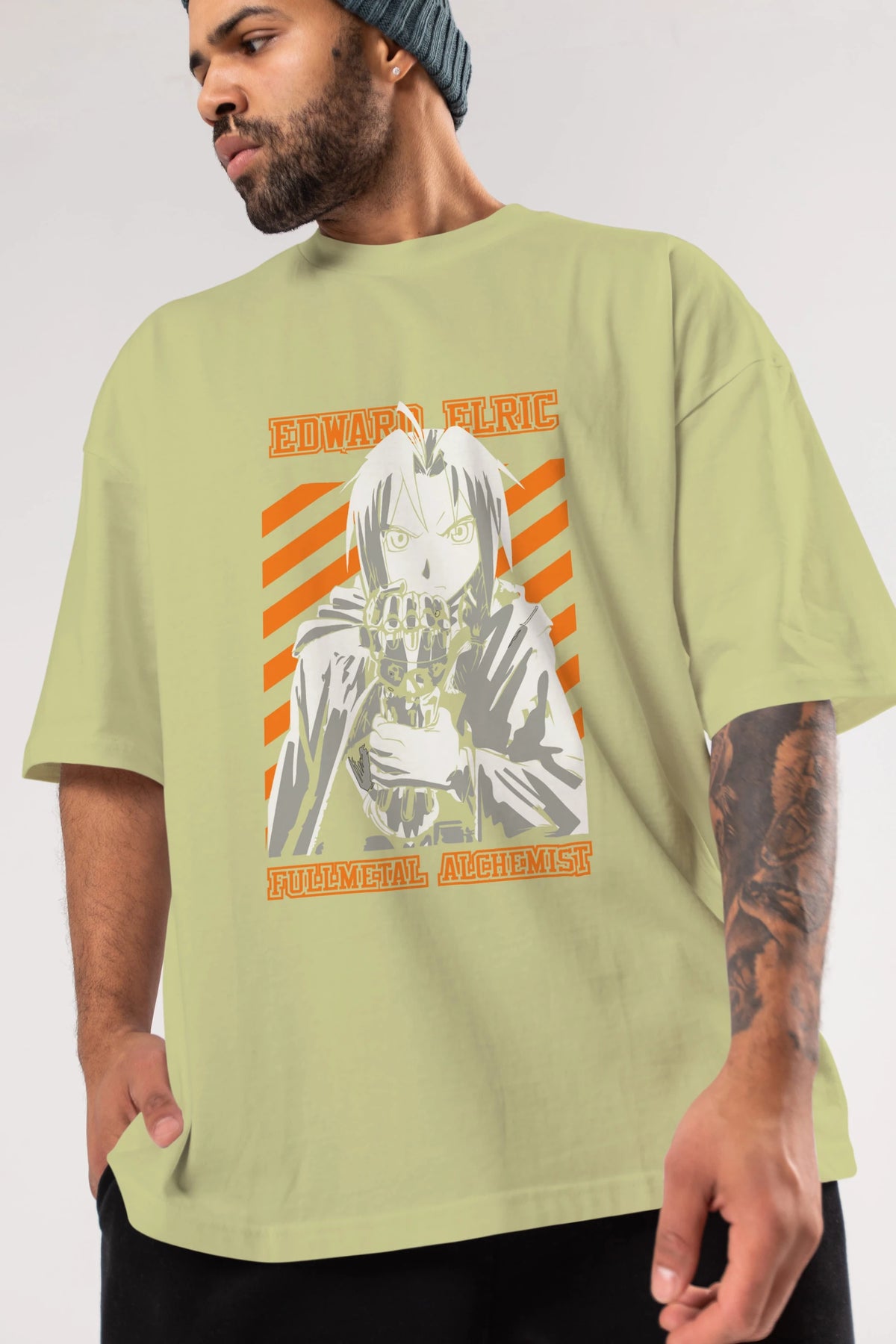 EDWARD ELRIC Anime Ön Baskılı Oversize t-shirt %100 pamuk Erkek Kadın Unisex
