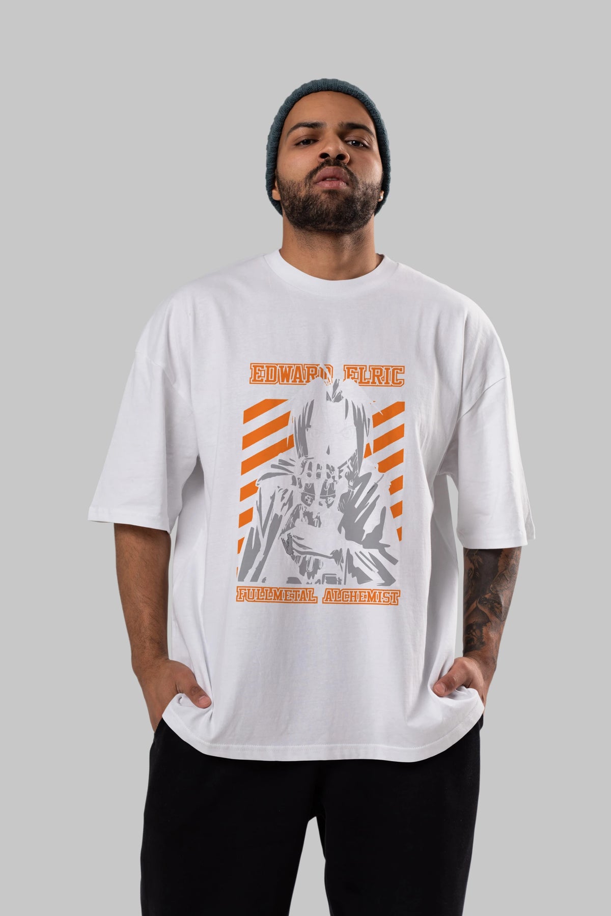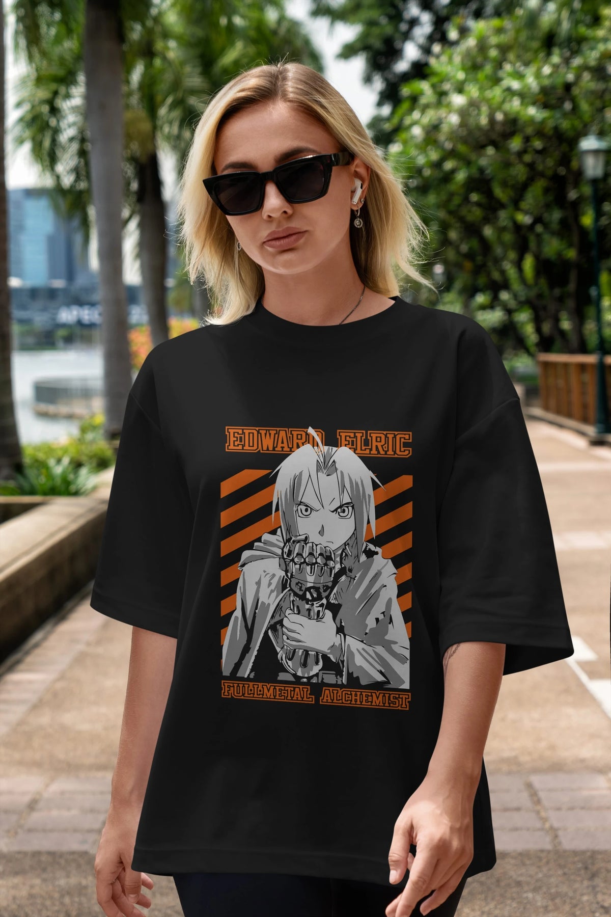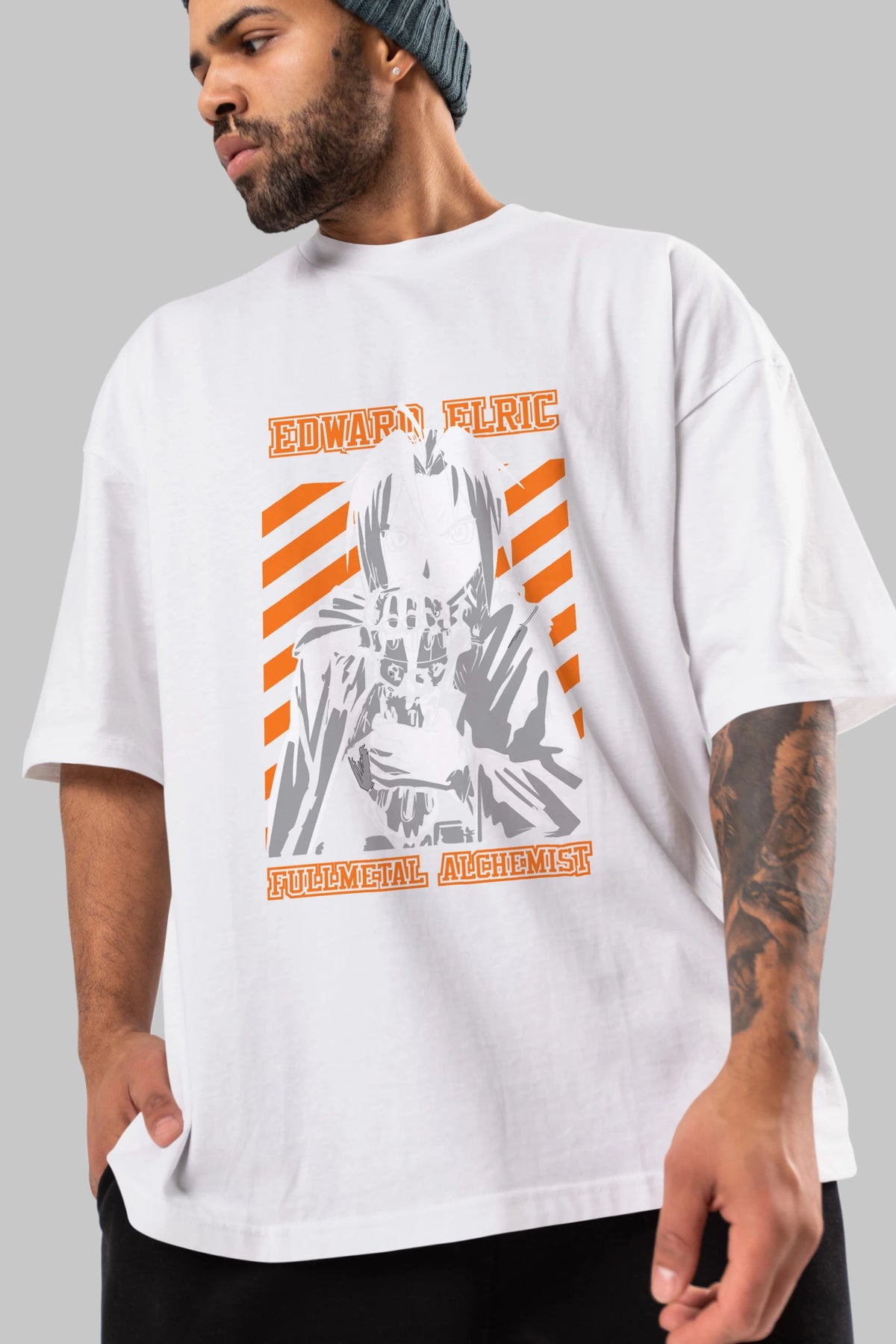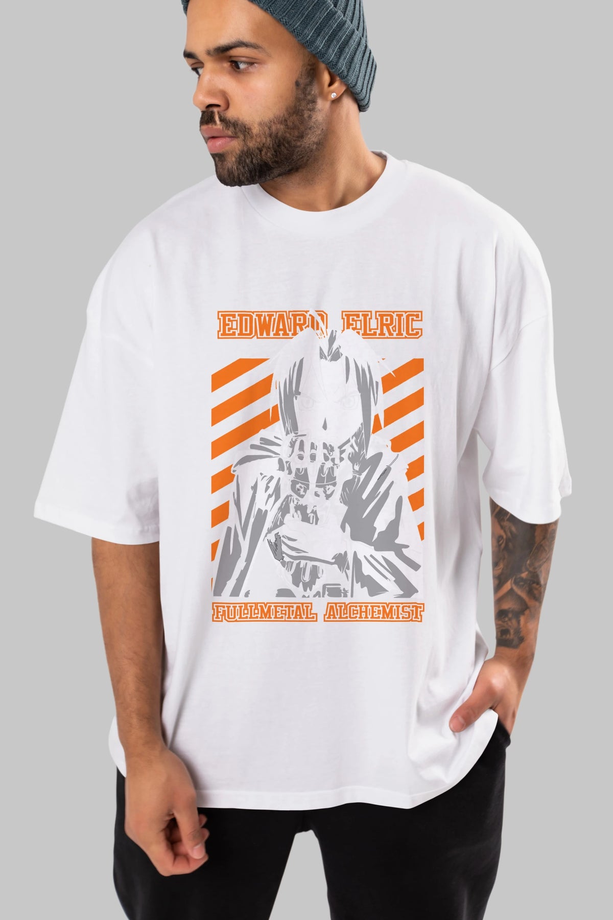 EDWARD ELRIC Anime Ön Baskılı Oversize t-shirt %100 pamuk Erkek Kadın Unisex