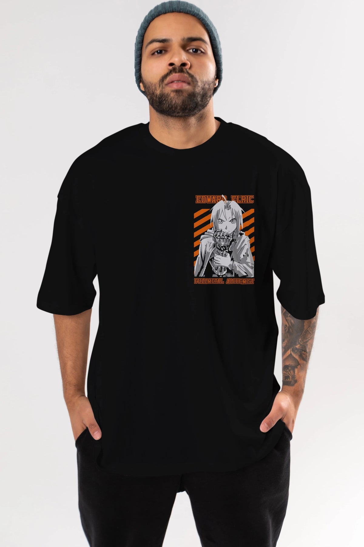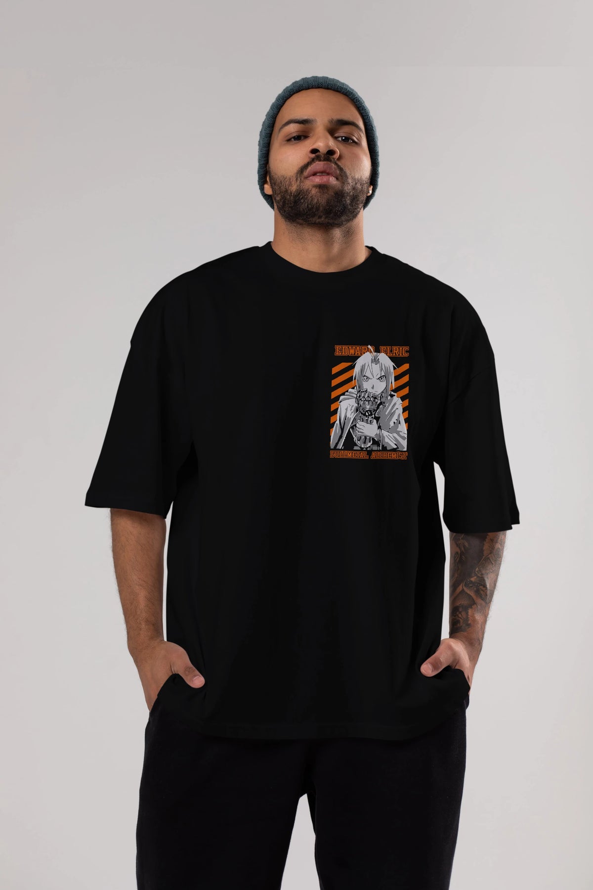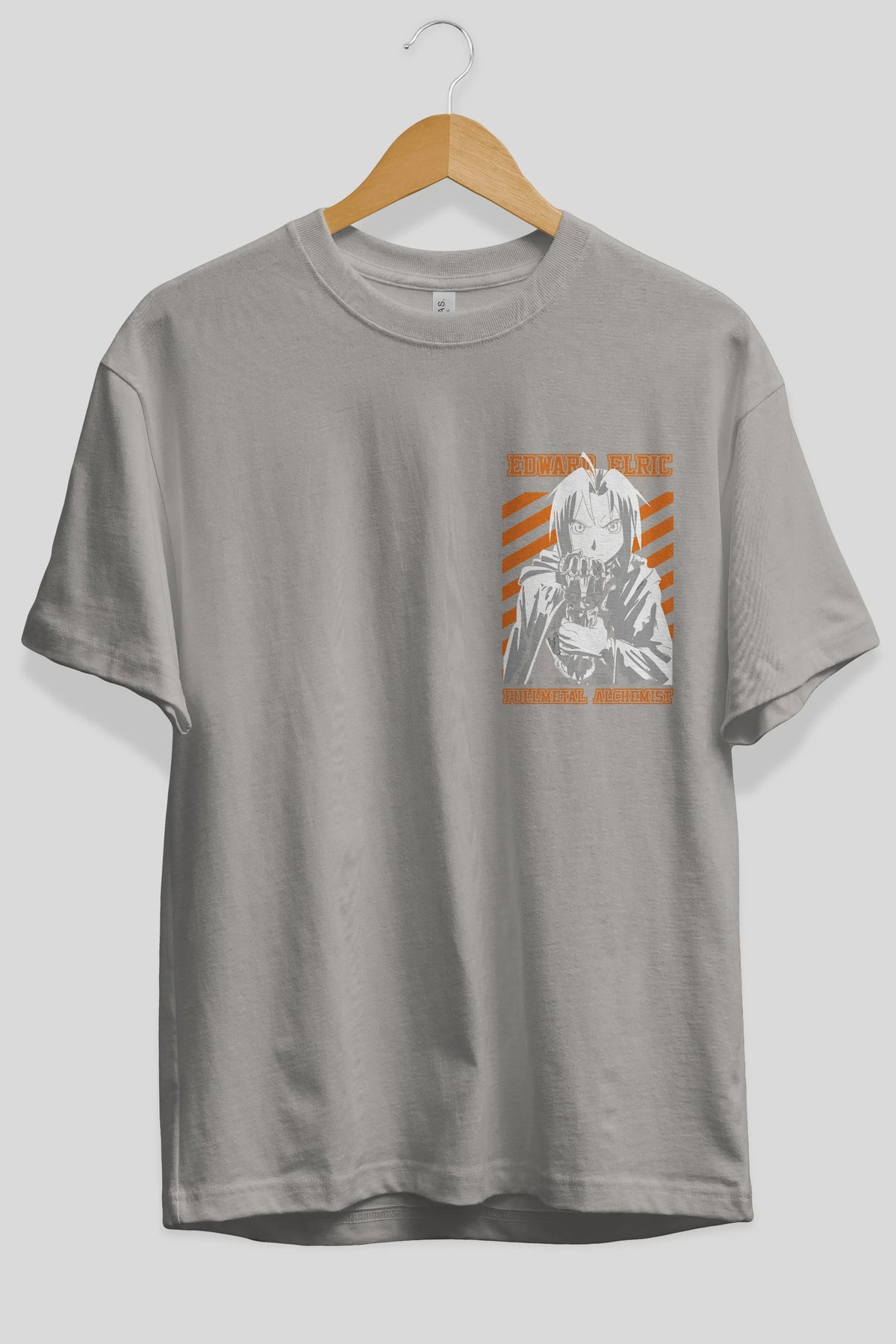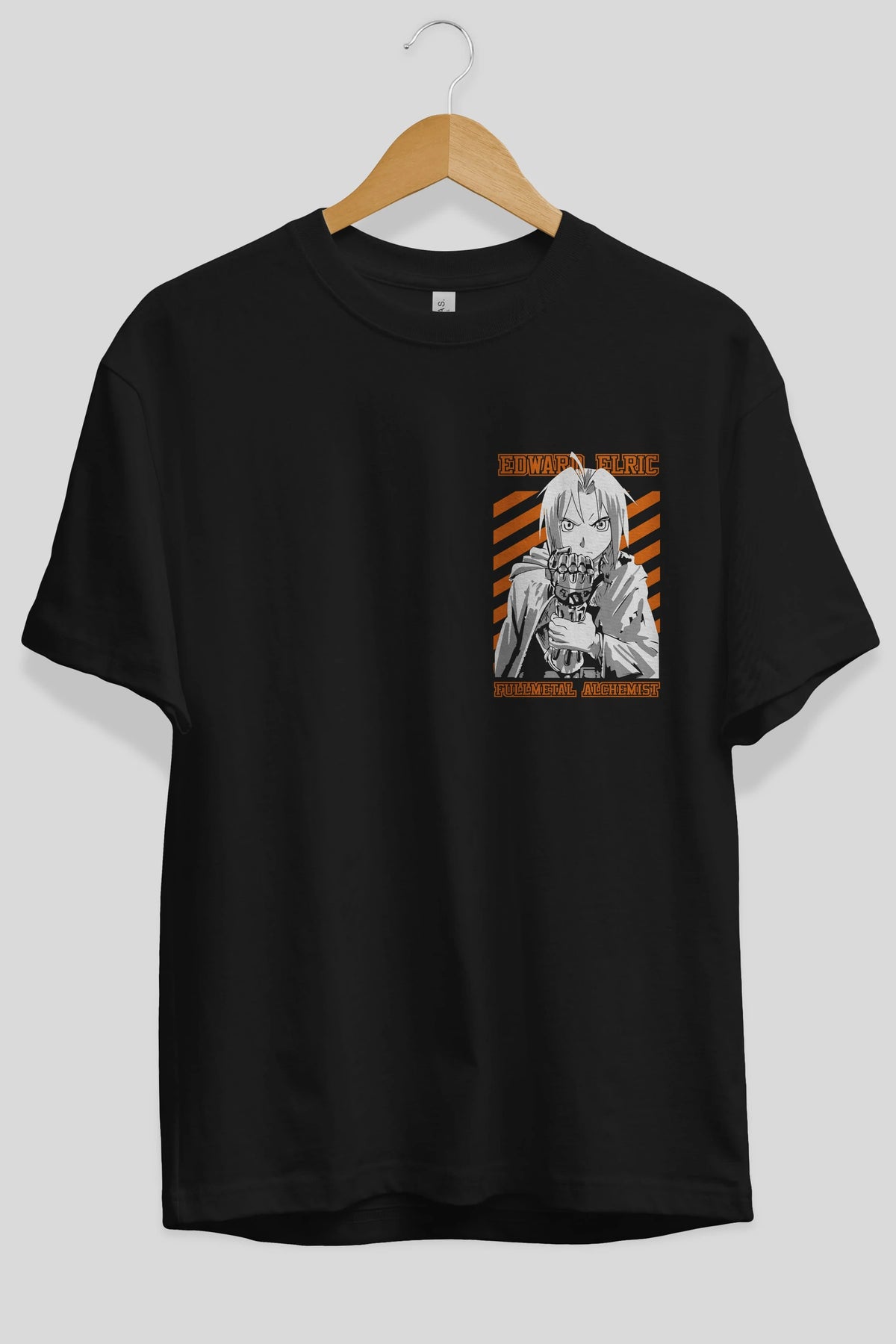 EDWARD ELRIC Ön Sol Baskılı Oversize t-shirt Erkek Kadın Unisex %100 Pamuk Bisiklet Yaka tişort