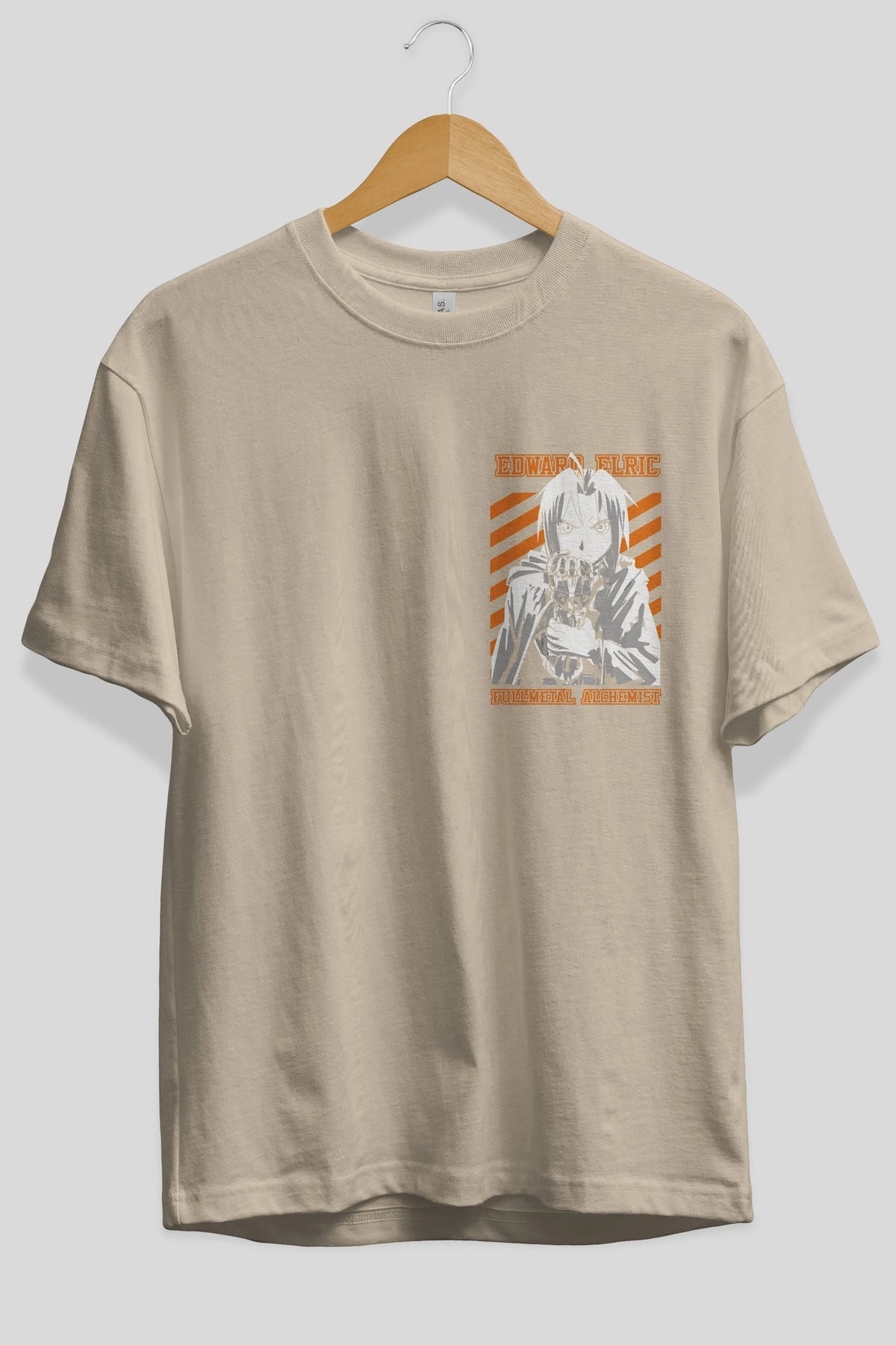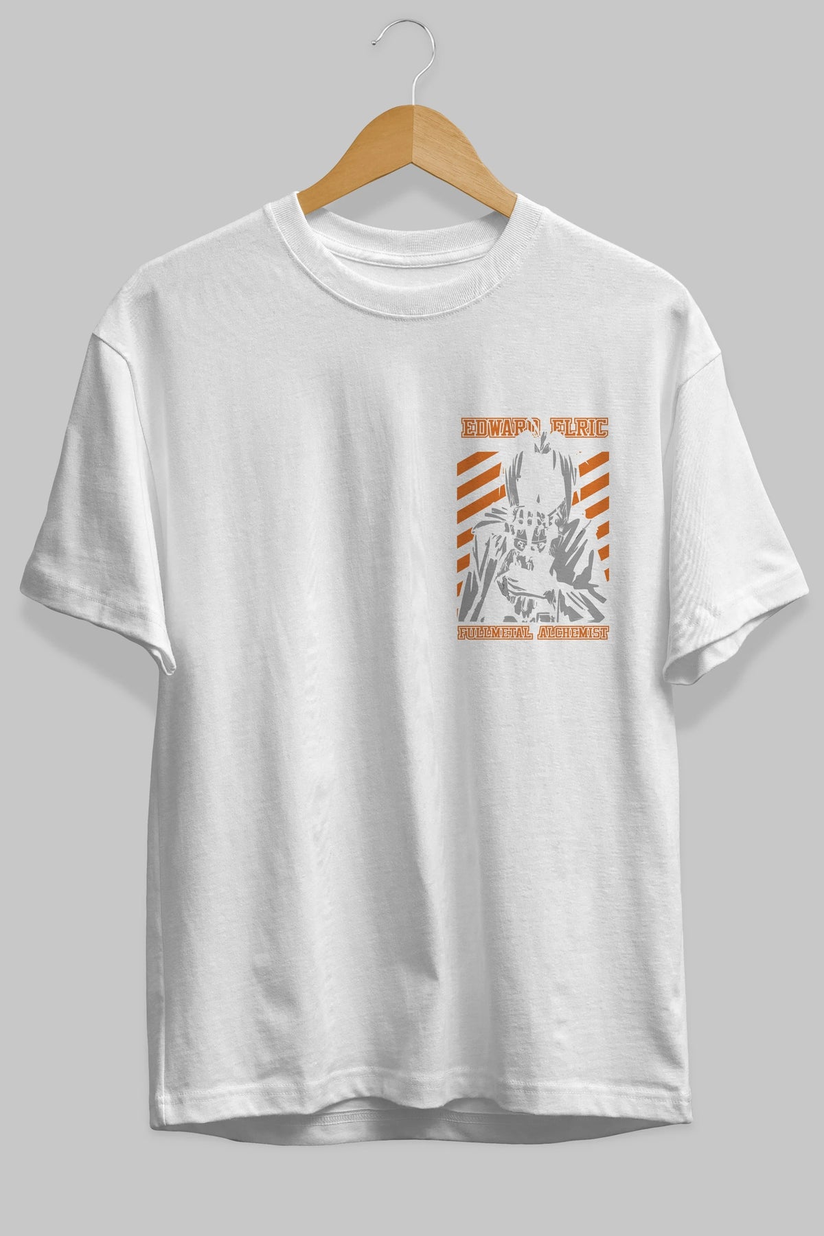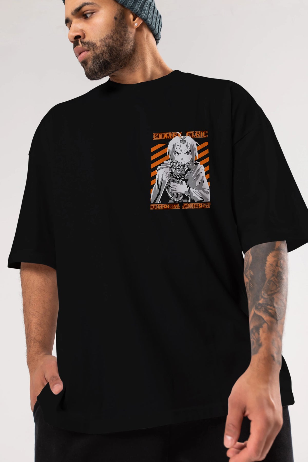 EDWARD ELRIC Ön Sol Baskılı Oversize t-shirt Erkek Kadın Unisex %100 Pamuk Bisiklet Yaka tişort