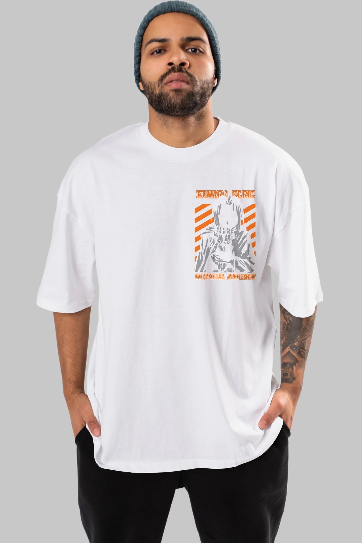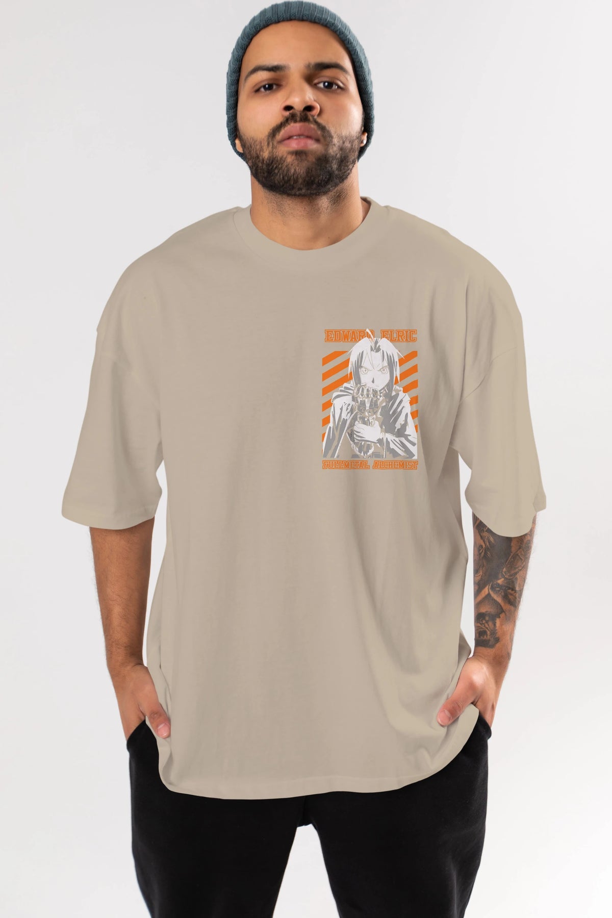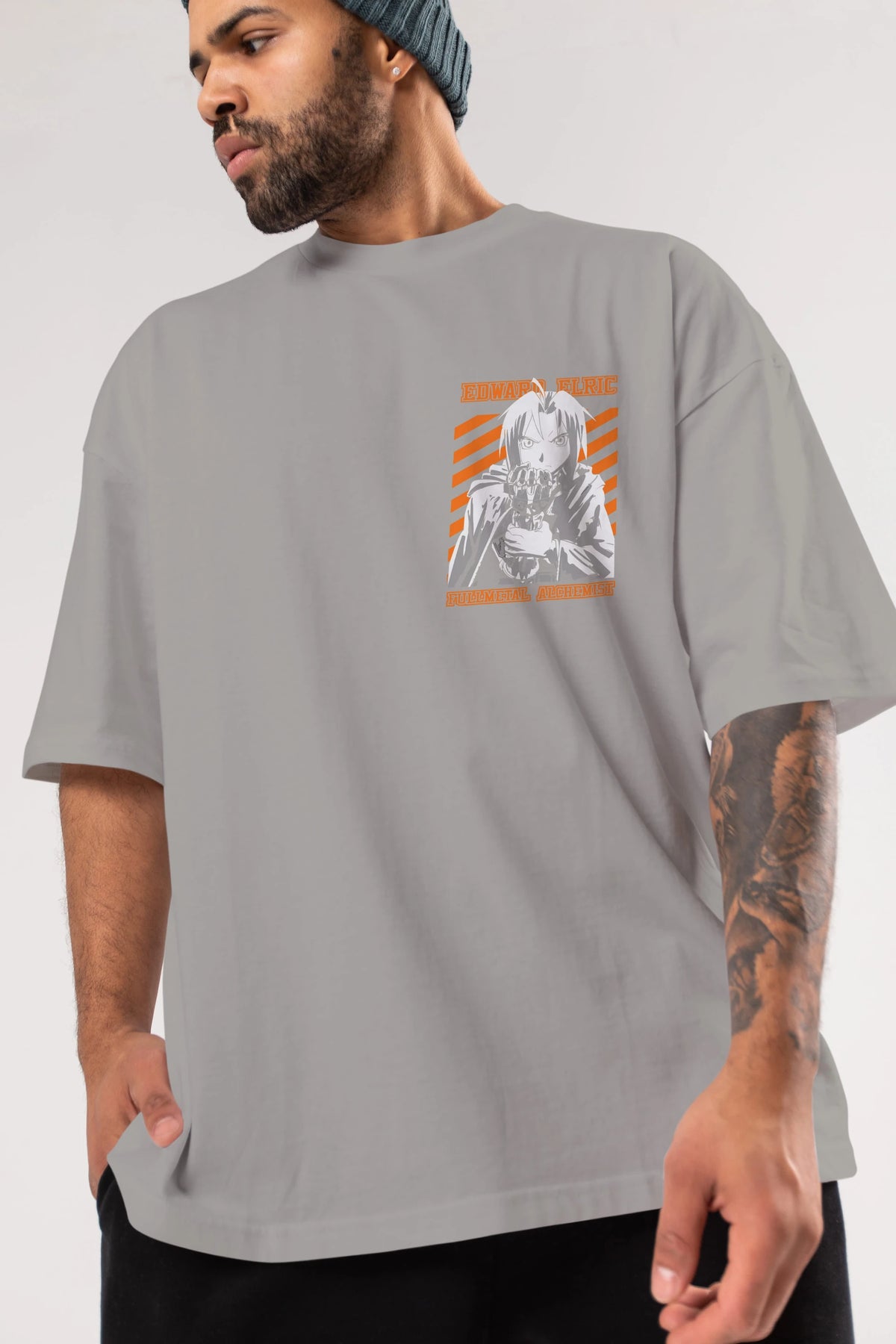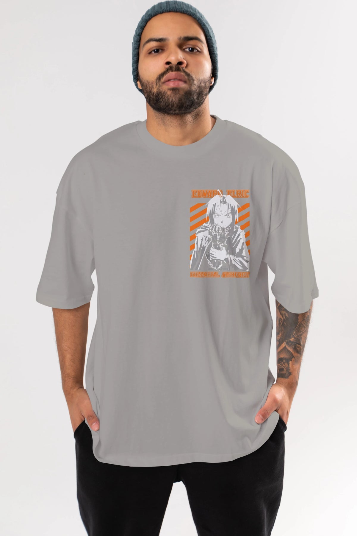 EDWARD ELRIC Ön Sol Baskılı Oversize t-shirt Erkek Kadın Unisex %100 Pamuk Bisiklet Yaka tişort