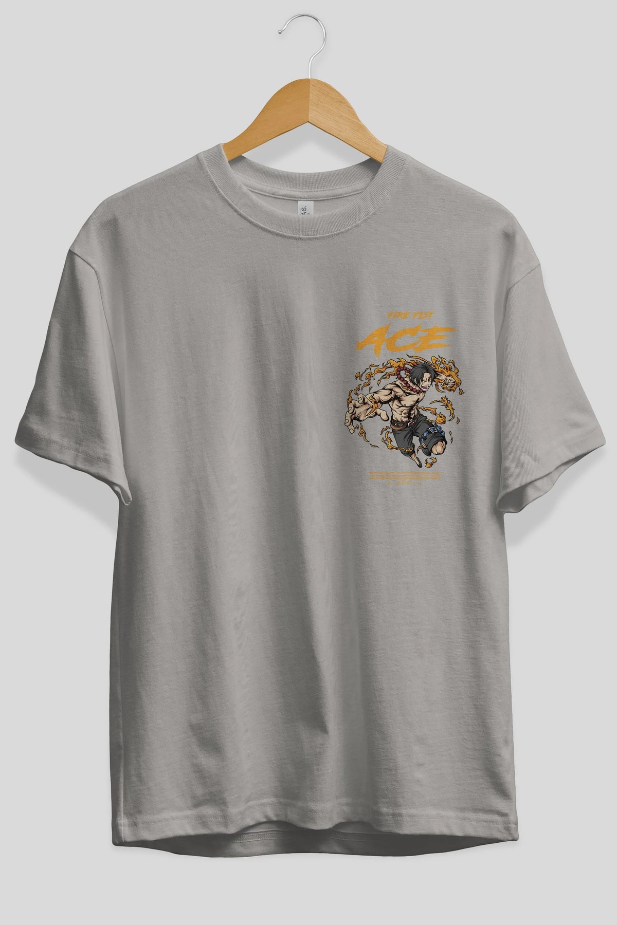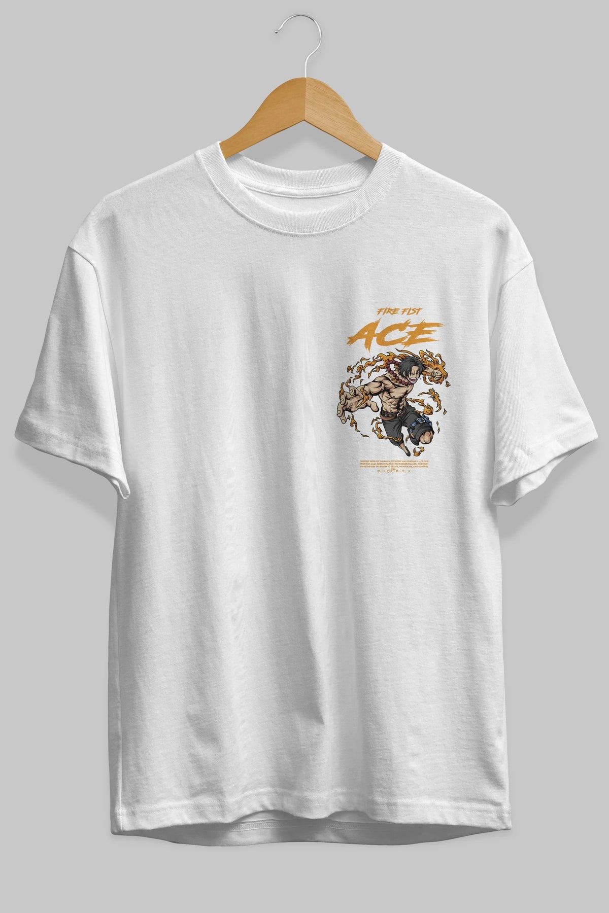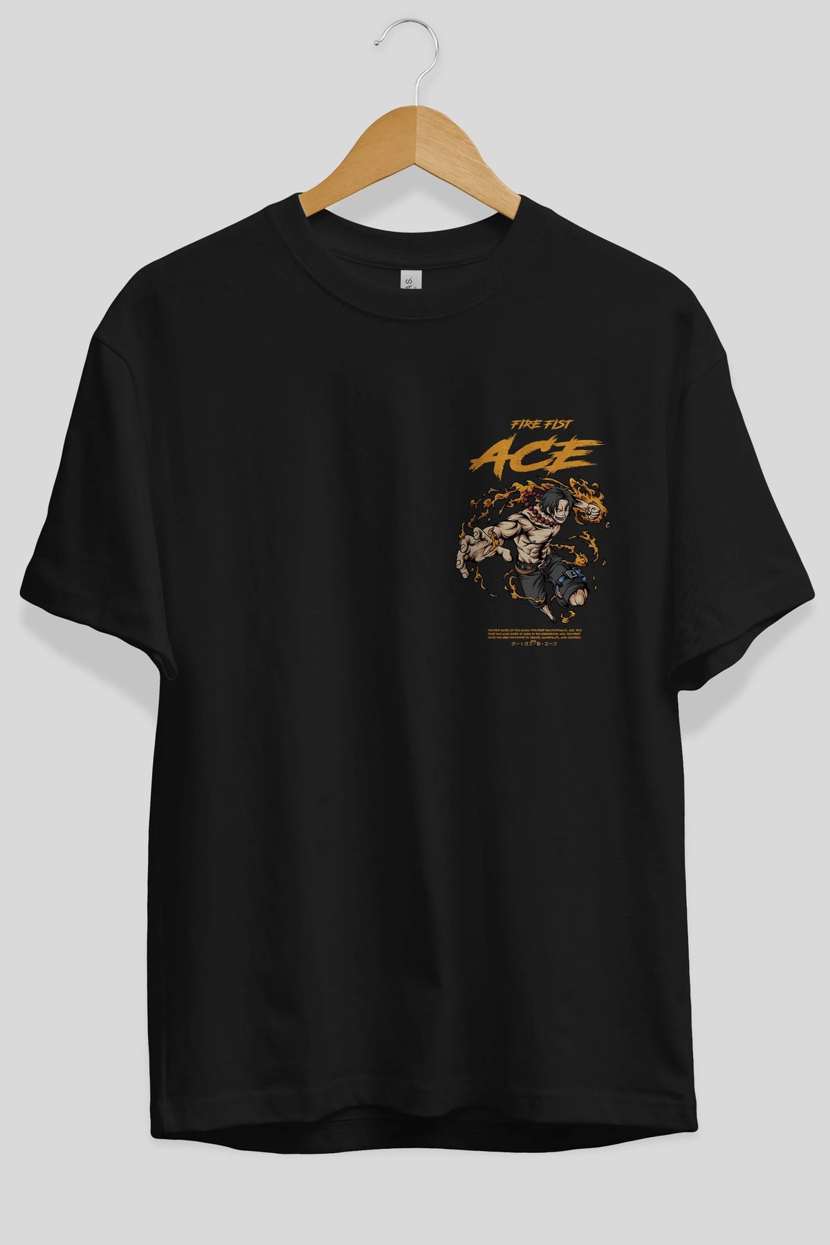 Fire Fist Ace Ön Sol Baskılı Oversize t-shirt Erkek Kadın Unisex %100 Pamuk Bisiklet Yaka tişort