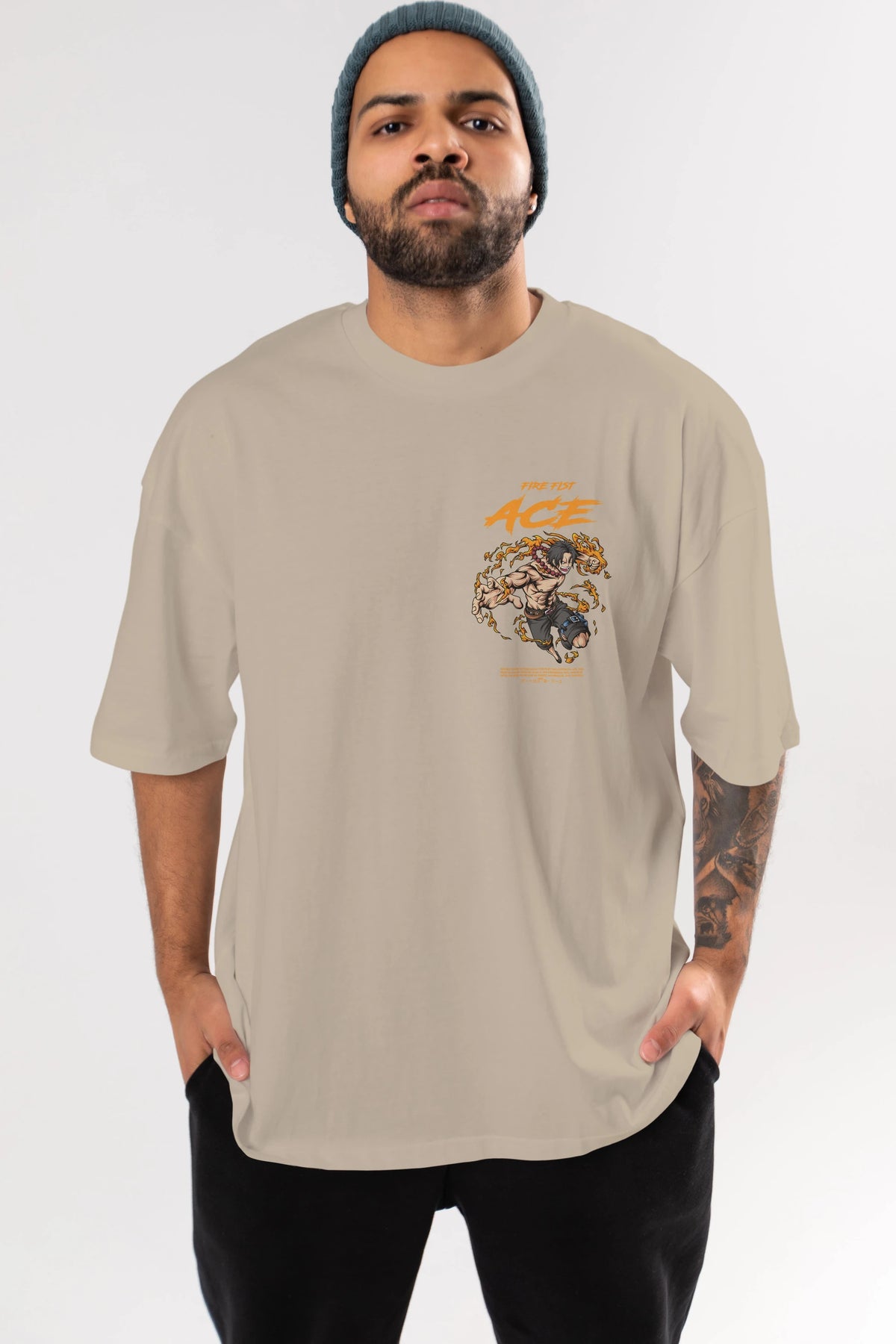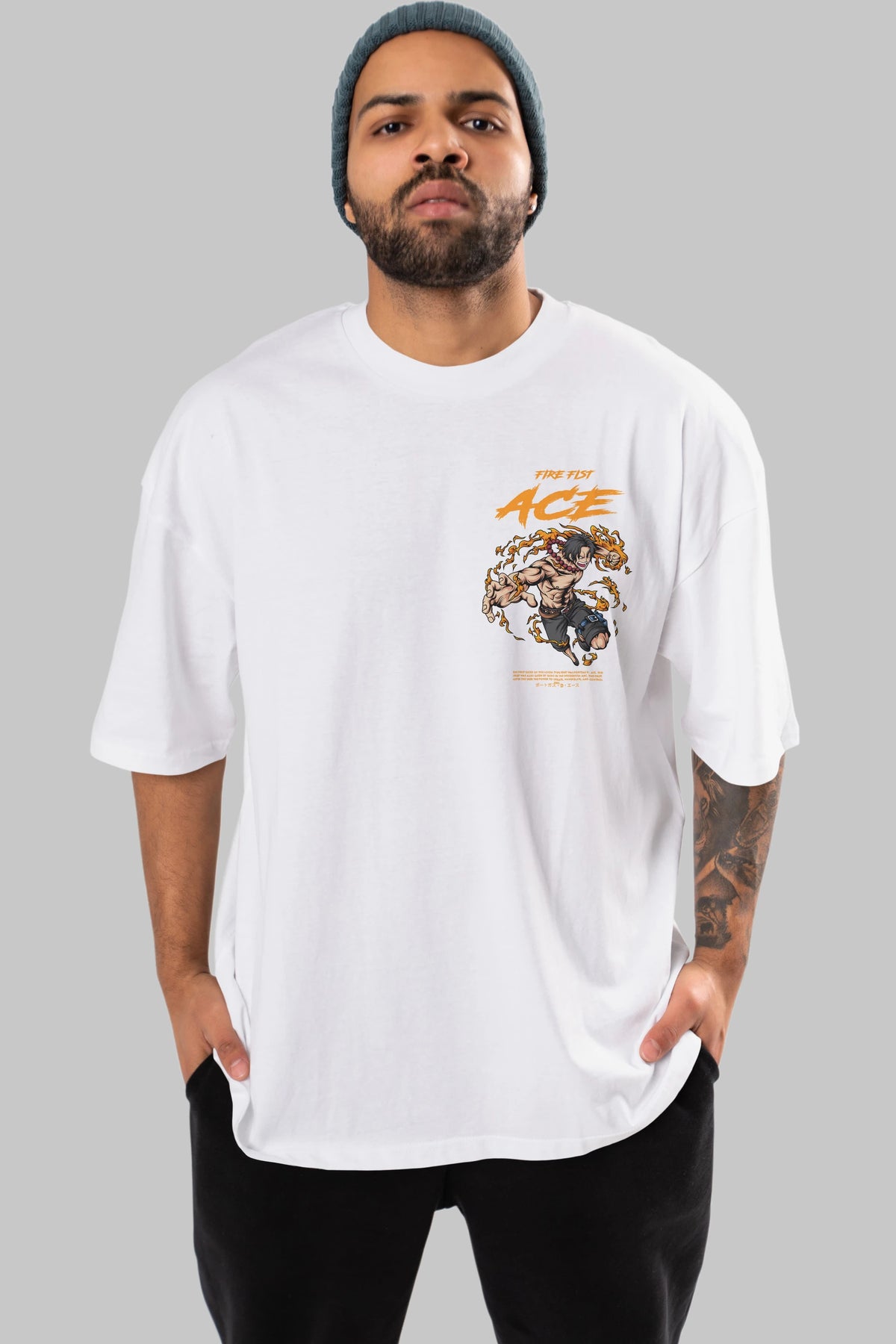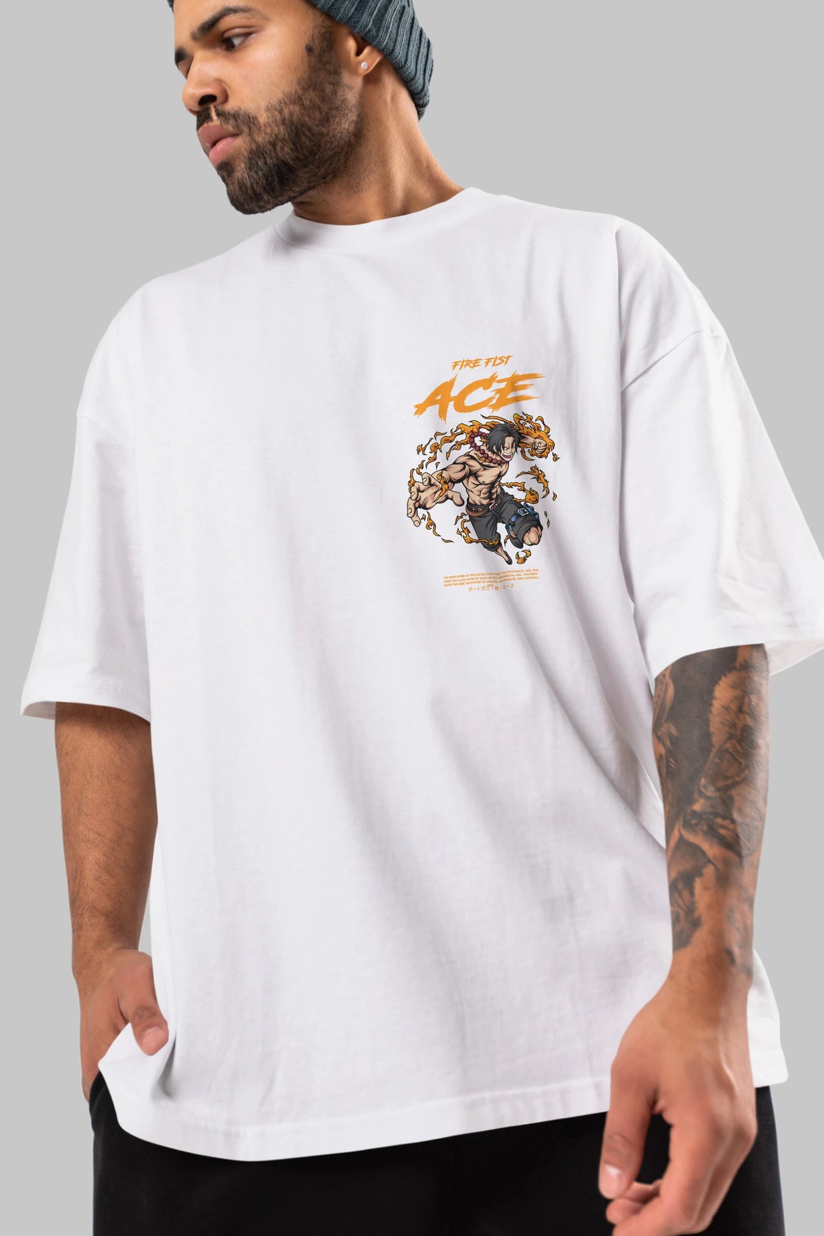 Fire Fist Ace Ön Sol Baskılı Oversize t-shirt Erkek Kadın Unisex %100 Pamuk Bisiklet Yaka tişort