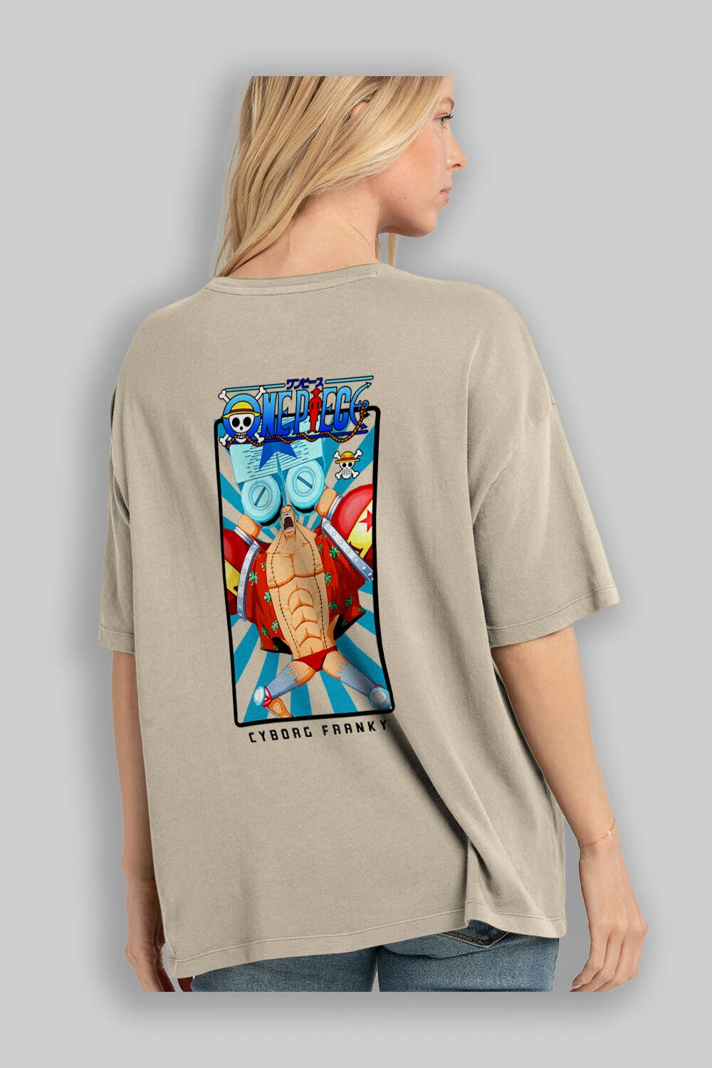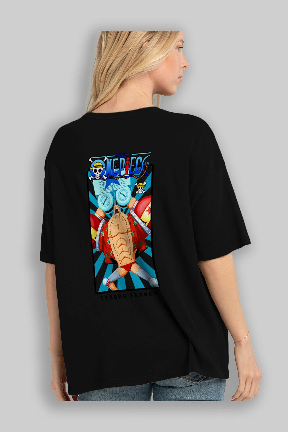 Franky Anime Arka Baskılı Oversize t-shirt Erkek Kadın Unisex %100 pamuk tişort