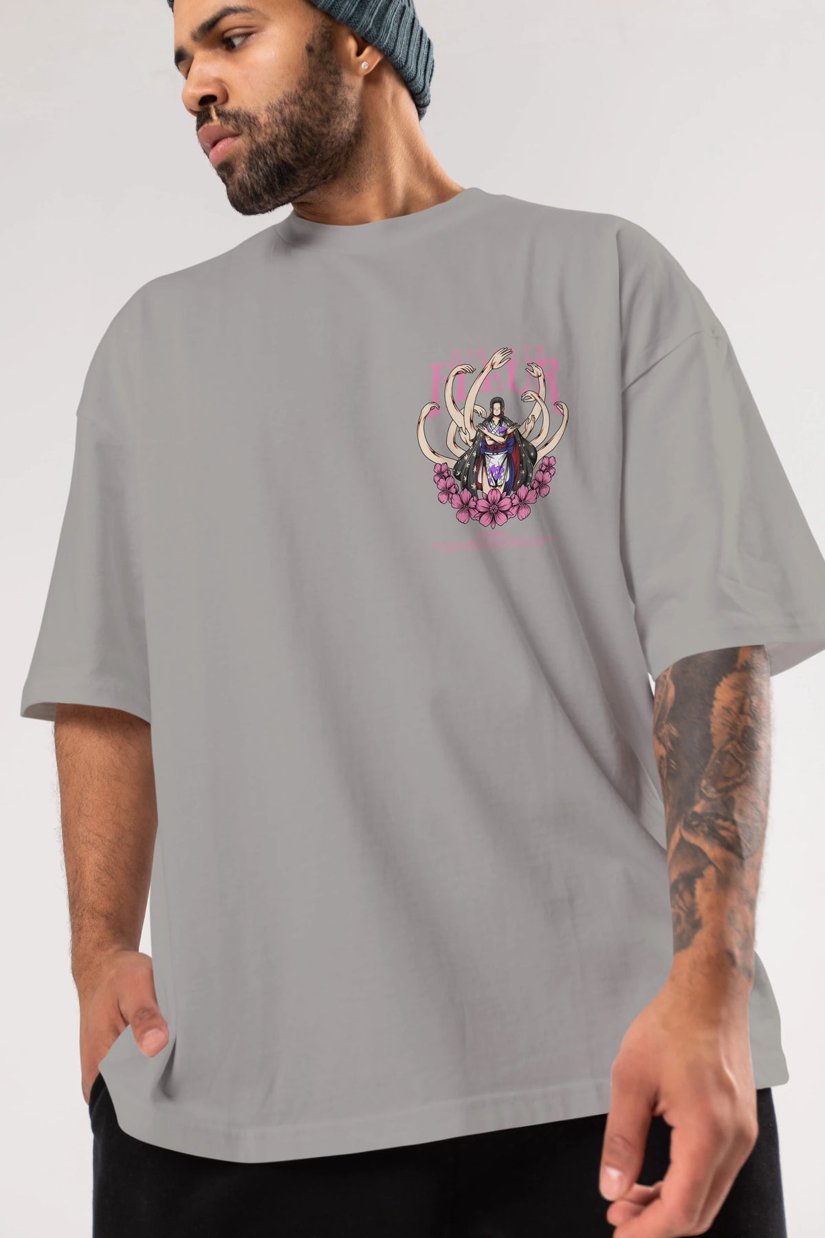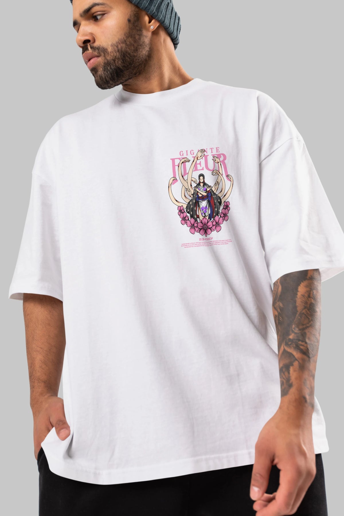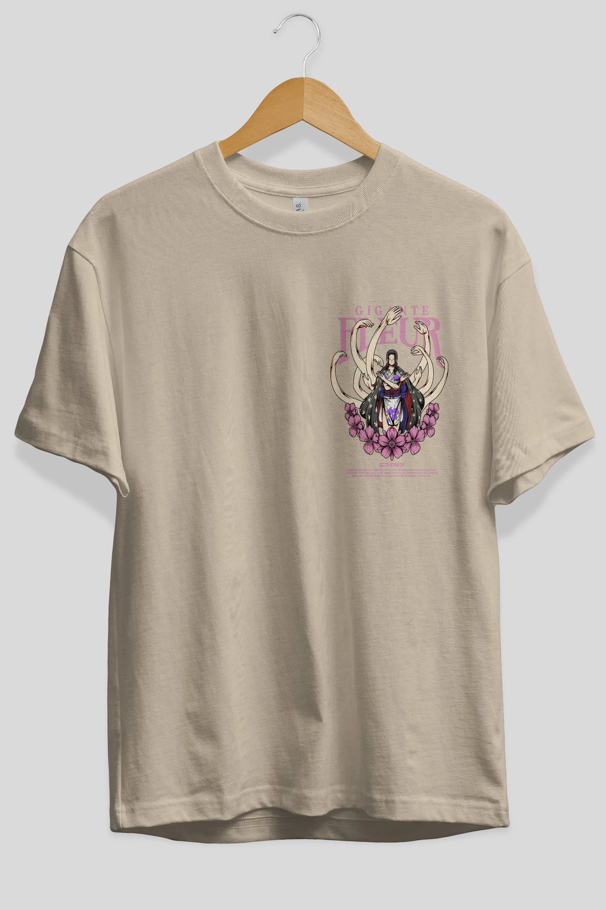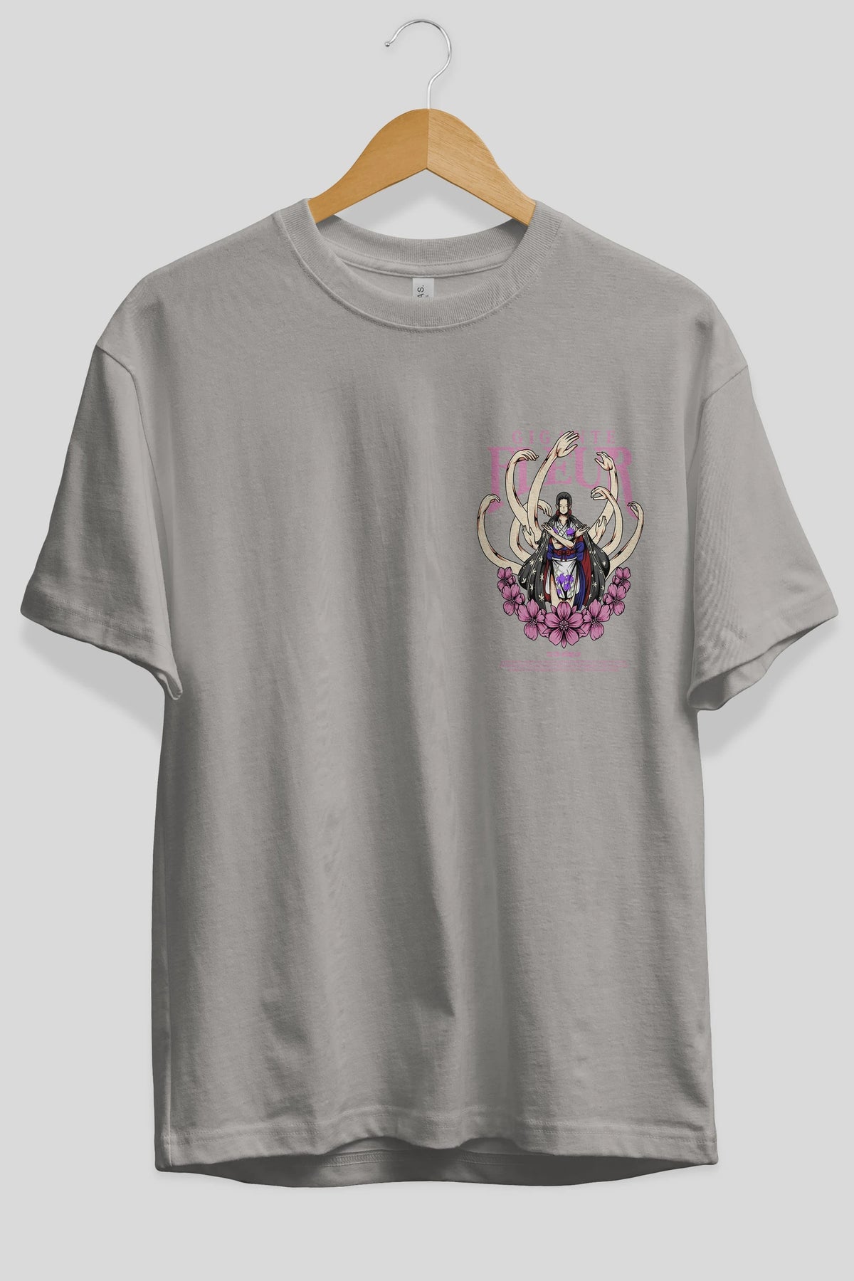Gigante Fleur Ön Sol Baskılı Oversize t-shirt Erkek Kadın Unisex %100 Pamuk Bisiklet Yaka tişort