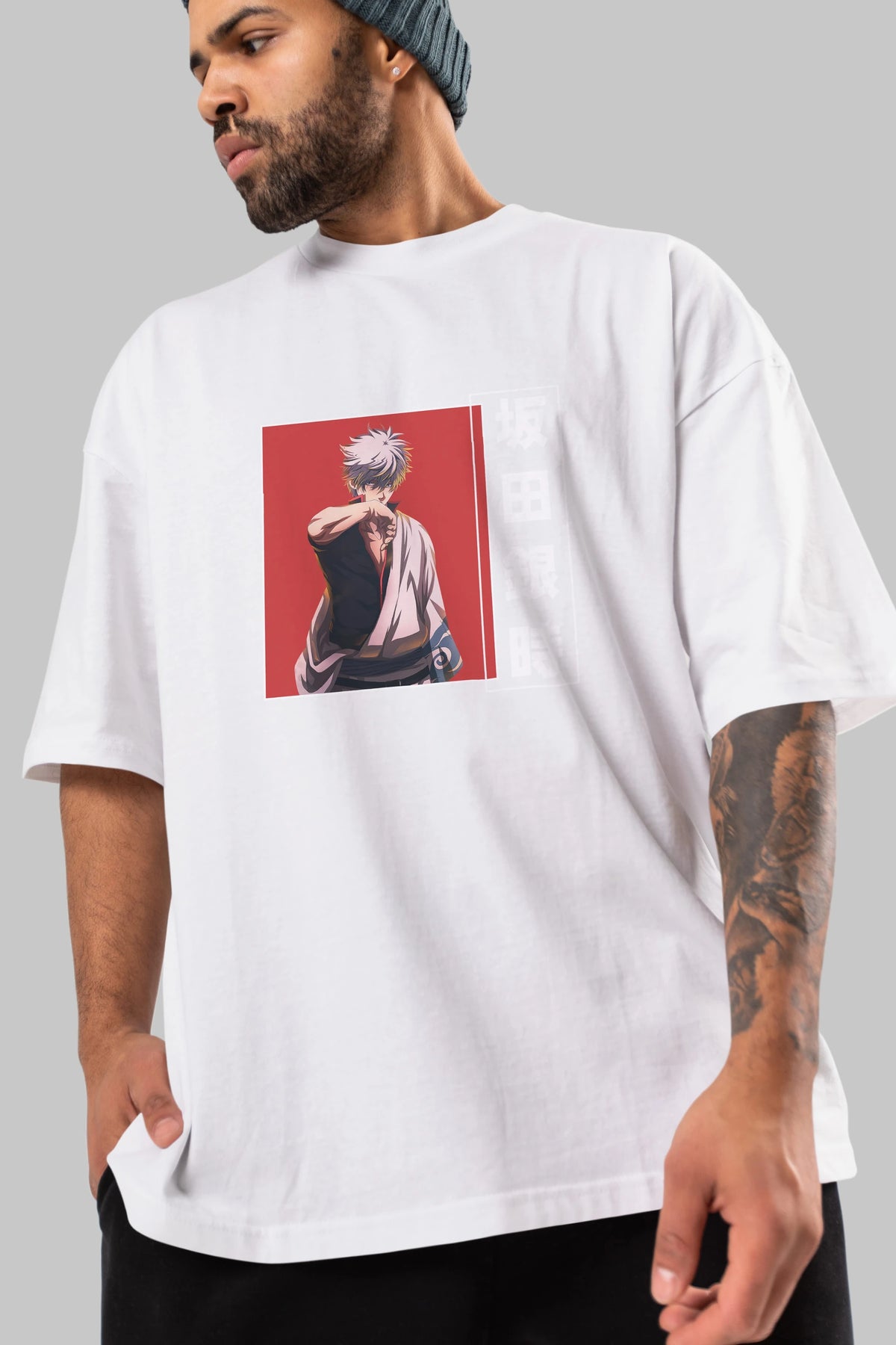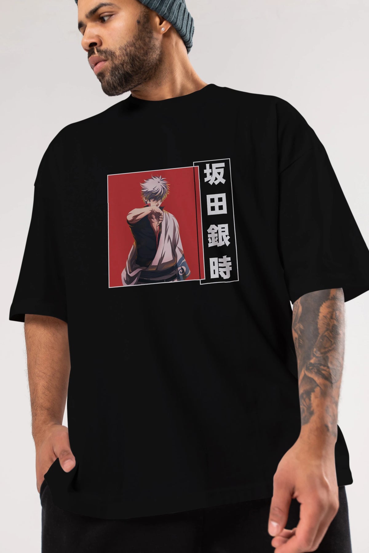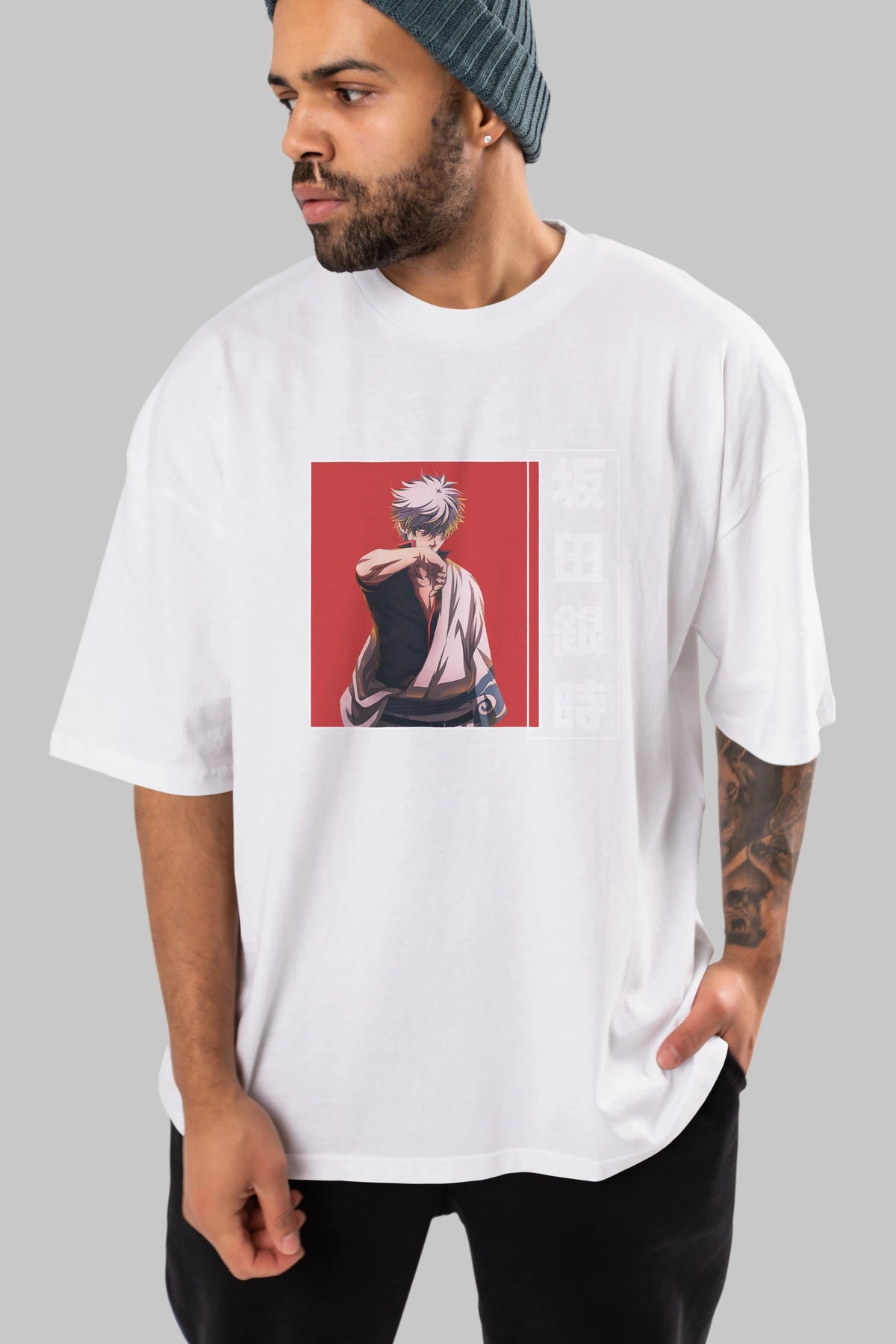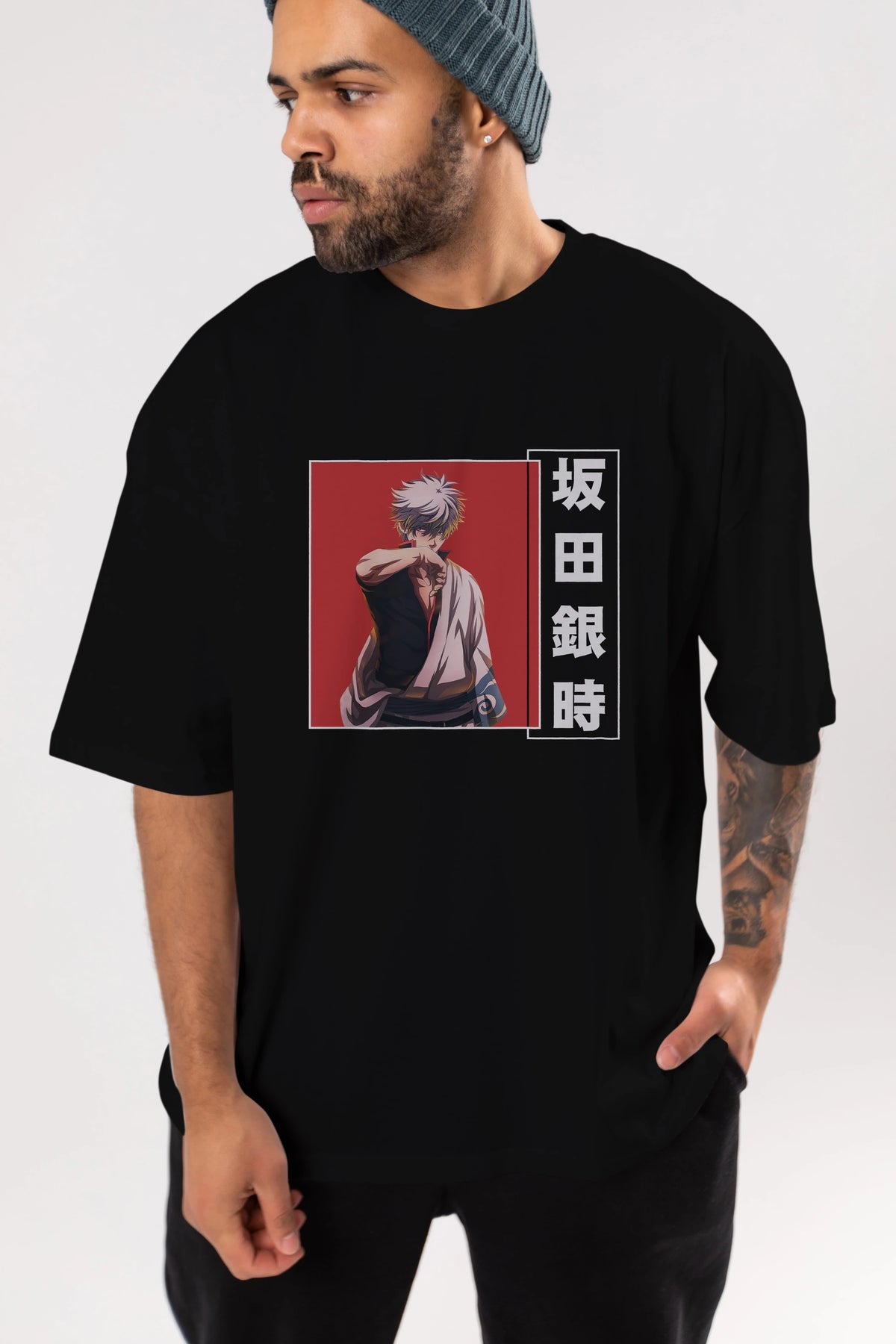 Gintoki Sakata GINTAMA 1 Anime Ön Baskılı Oversize t-shirt %100 pamuk Erkek Kadın Unisex