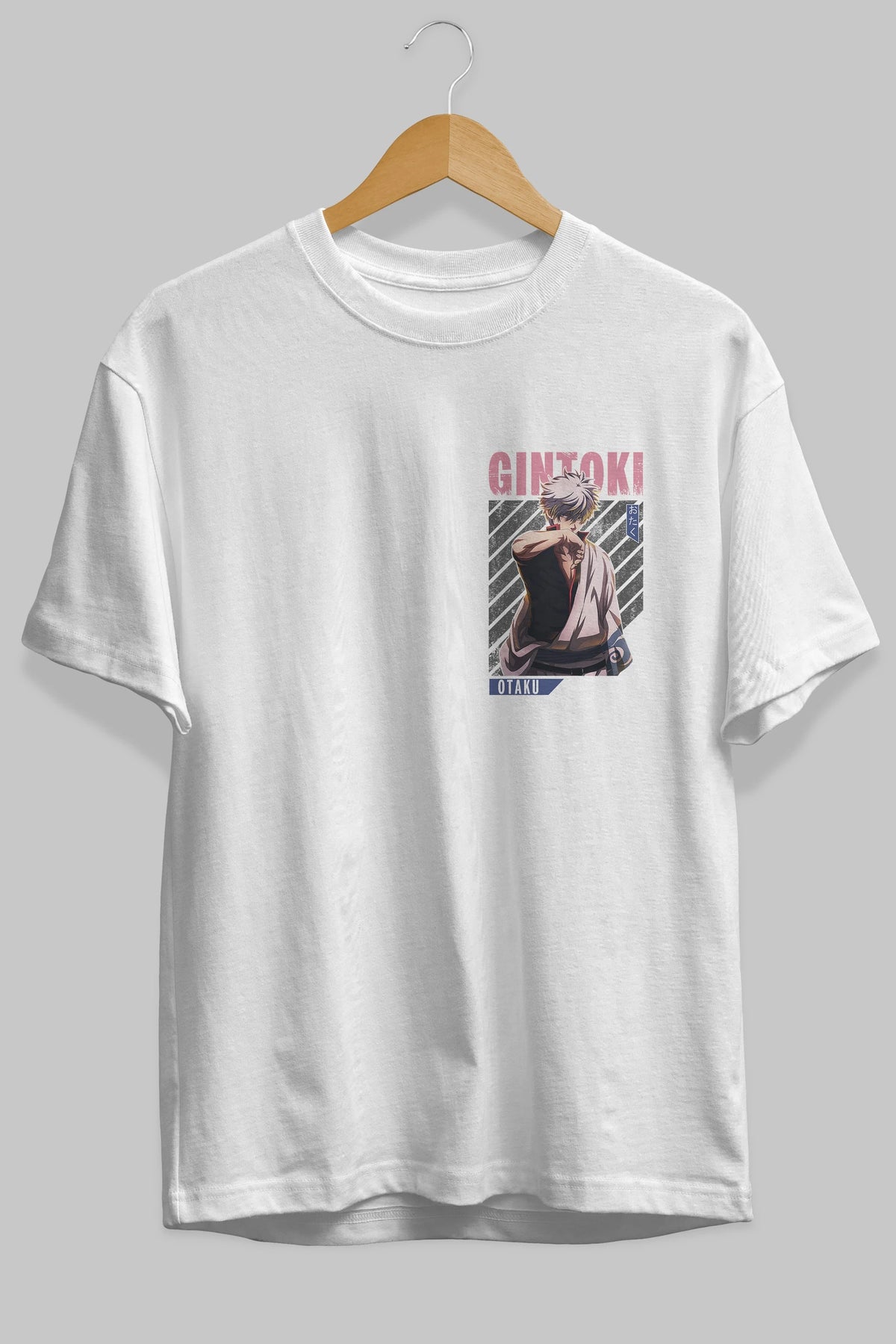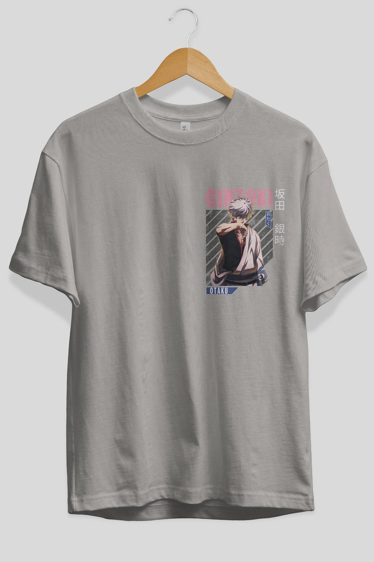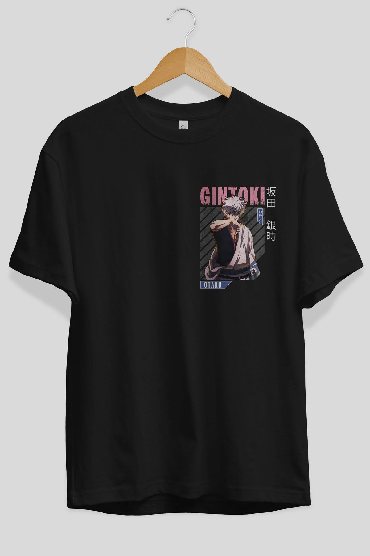Gintoki Sakata Ön Sol Baskılı Oversize t-shirt Erkek Kadın Unisex %100 Pamuk Bisiklet Yaka tişort