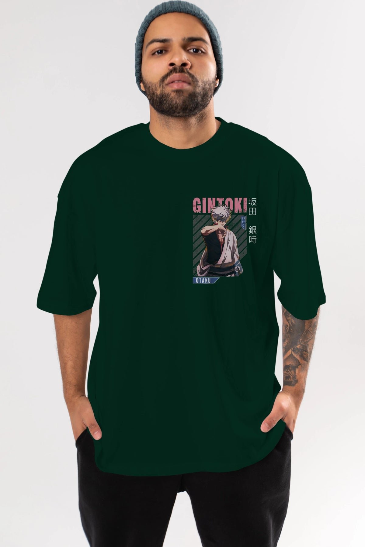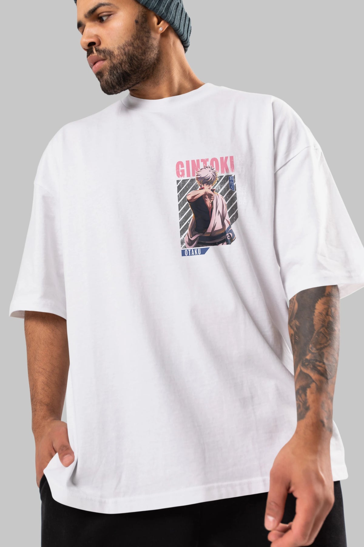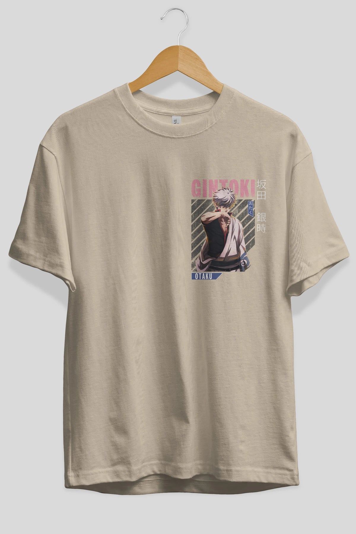 Gintoki Sakata Ön Sol Baskılı Oversize t-shirt Erkek Kadın Unisex %100 Pamuk Bisiklet Yaka tişort