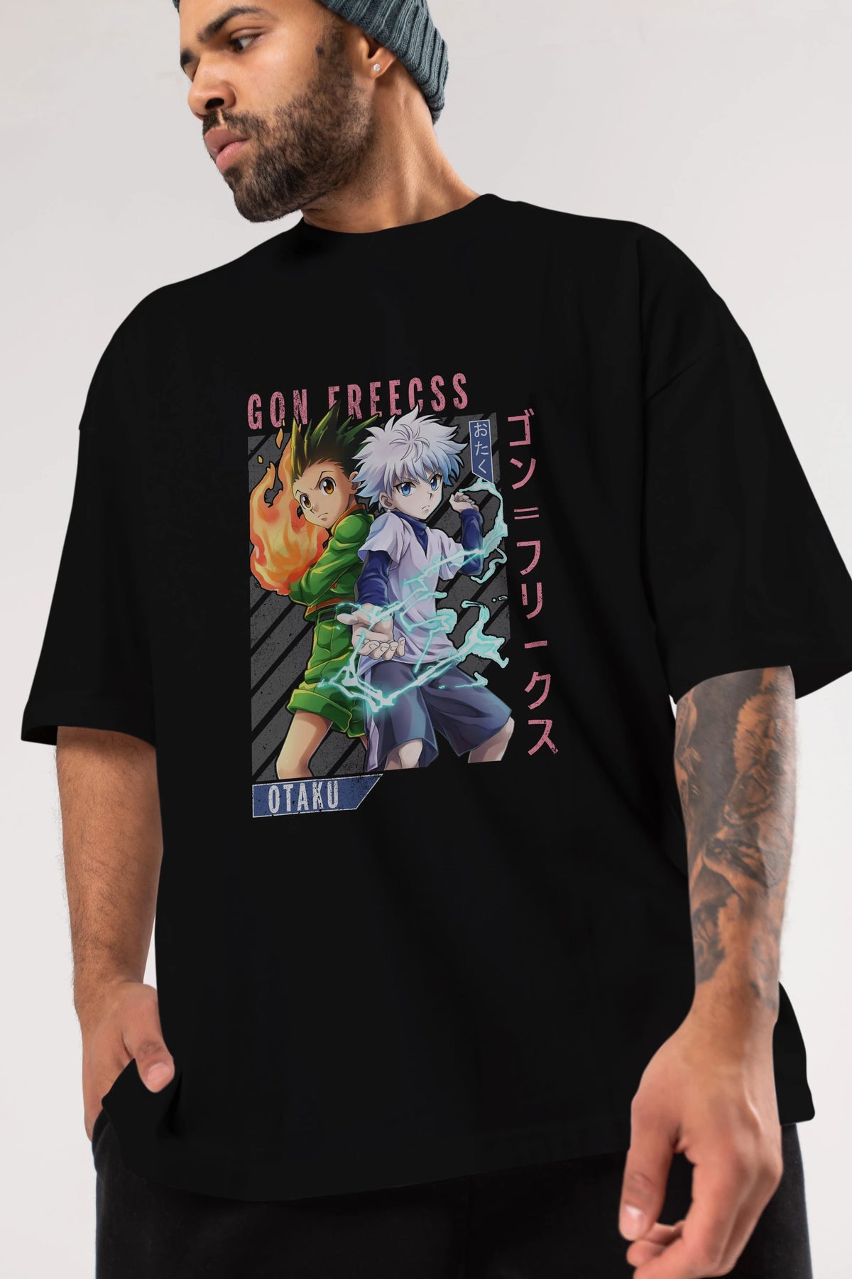 Gon Freecss HUNTER X HUNTER 1 Anime Ön Baskılı Oversize t-shirt %100 pamuk Erkek Kadın Unisex