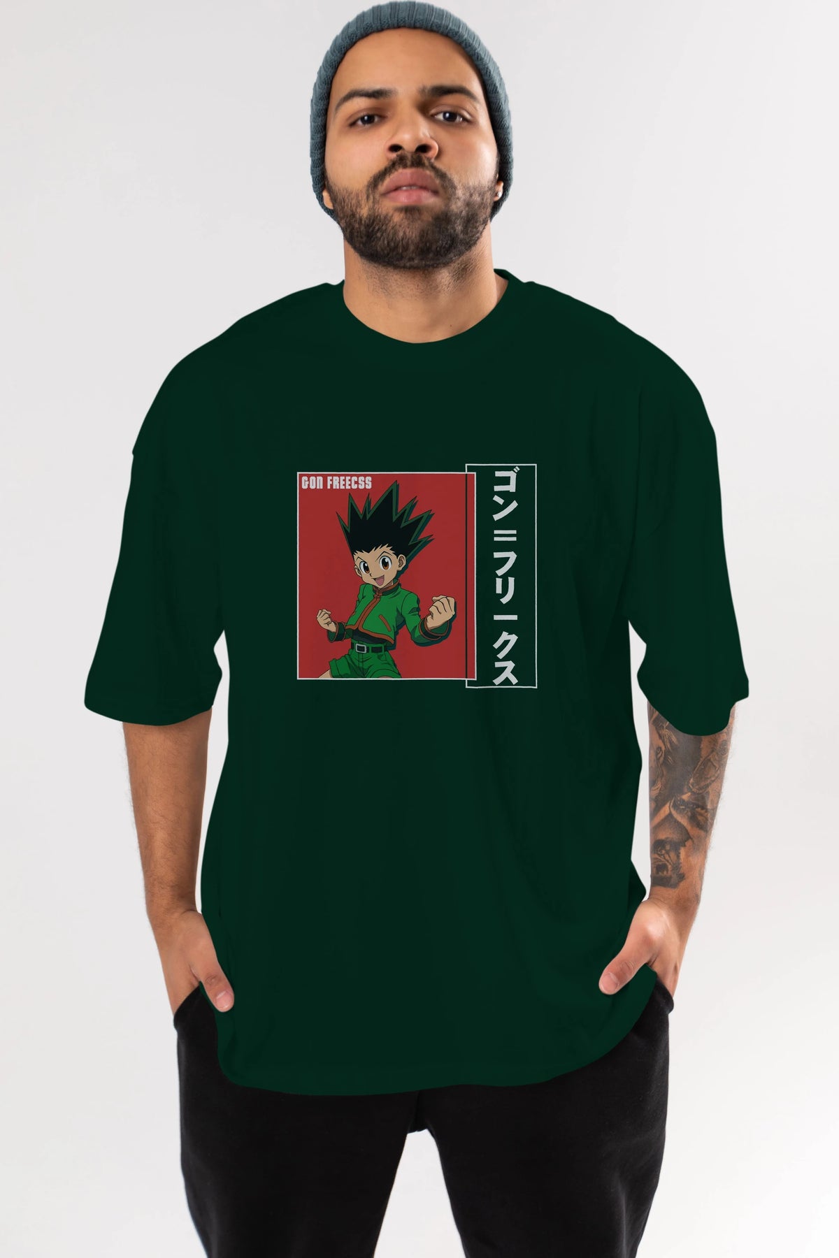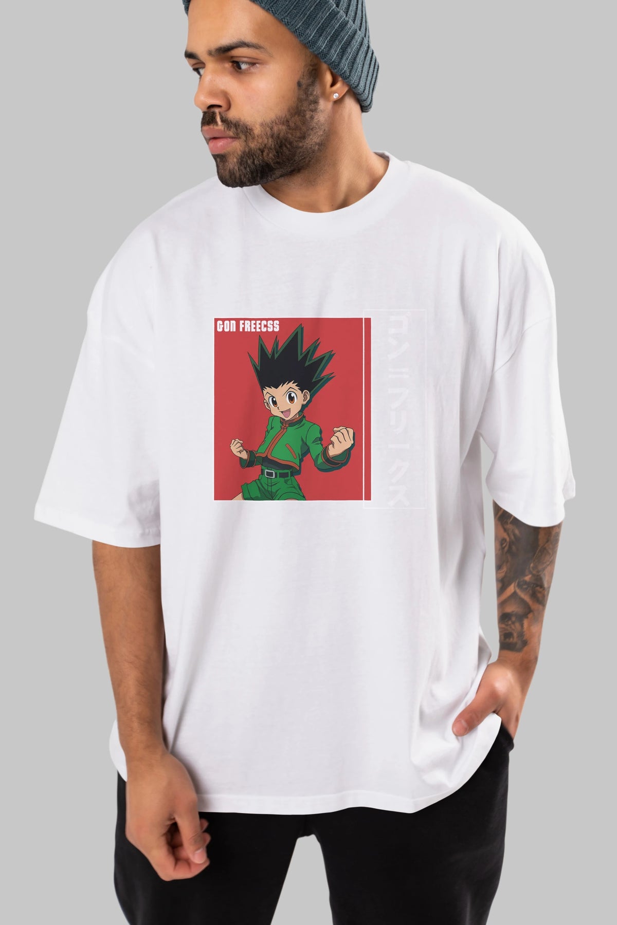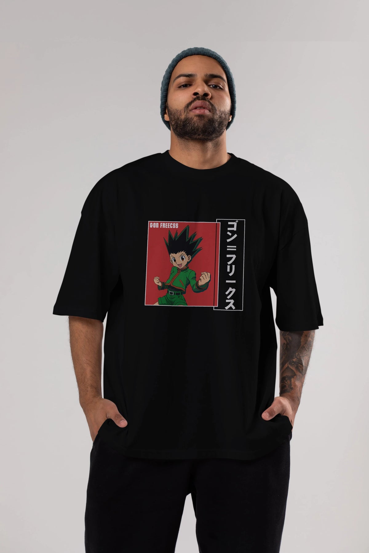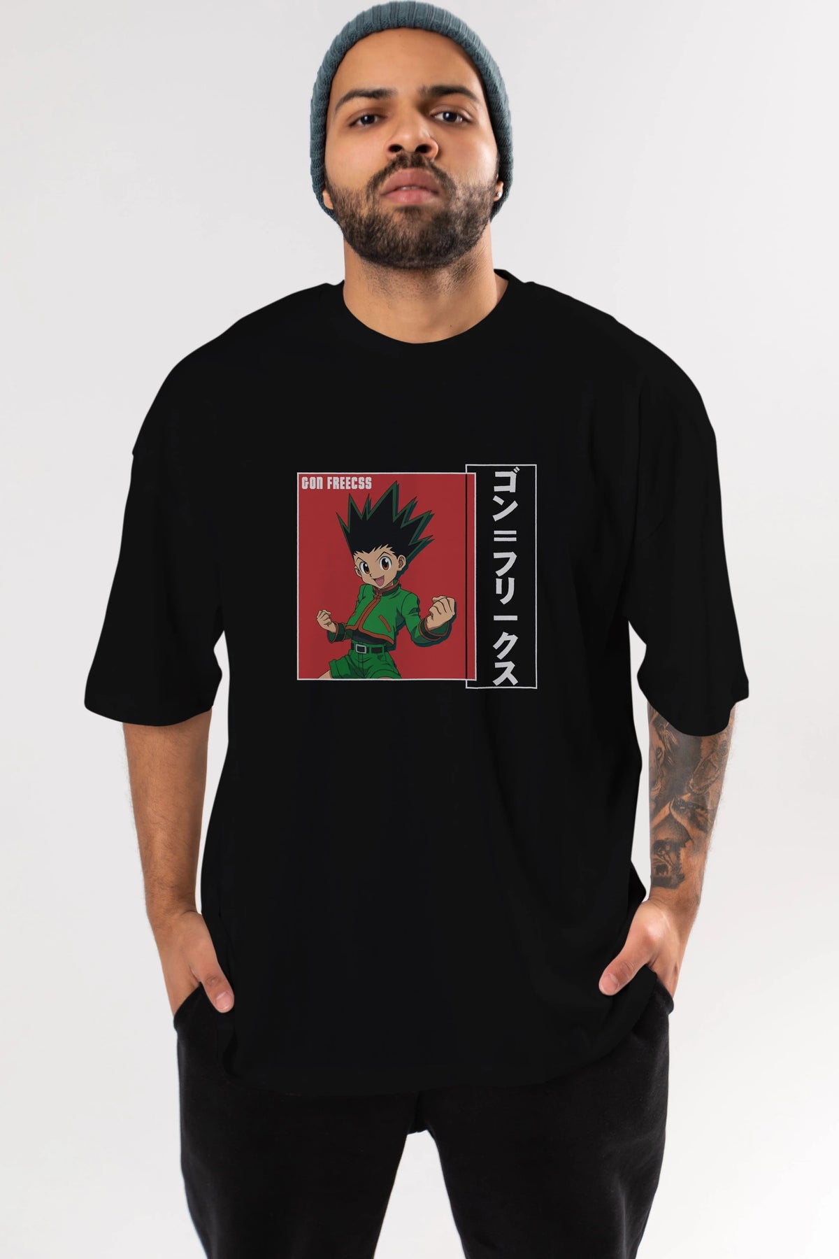Gon Freecss HUNTER X HUNTER 5 Anime Ön Baskılı Oversize t-shirt %100 pamuk Erkek Kadın Unisex