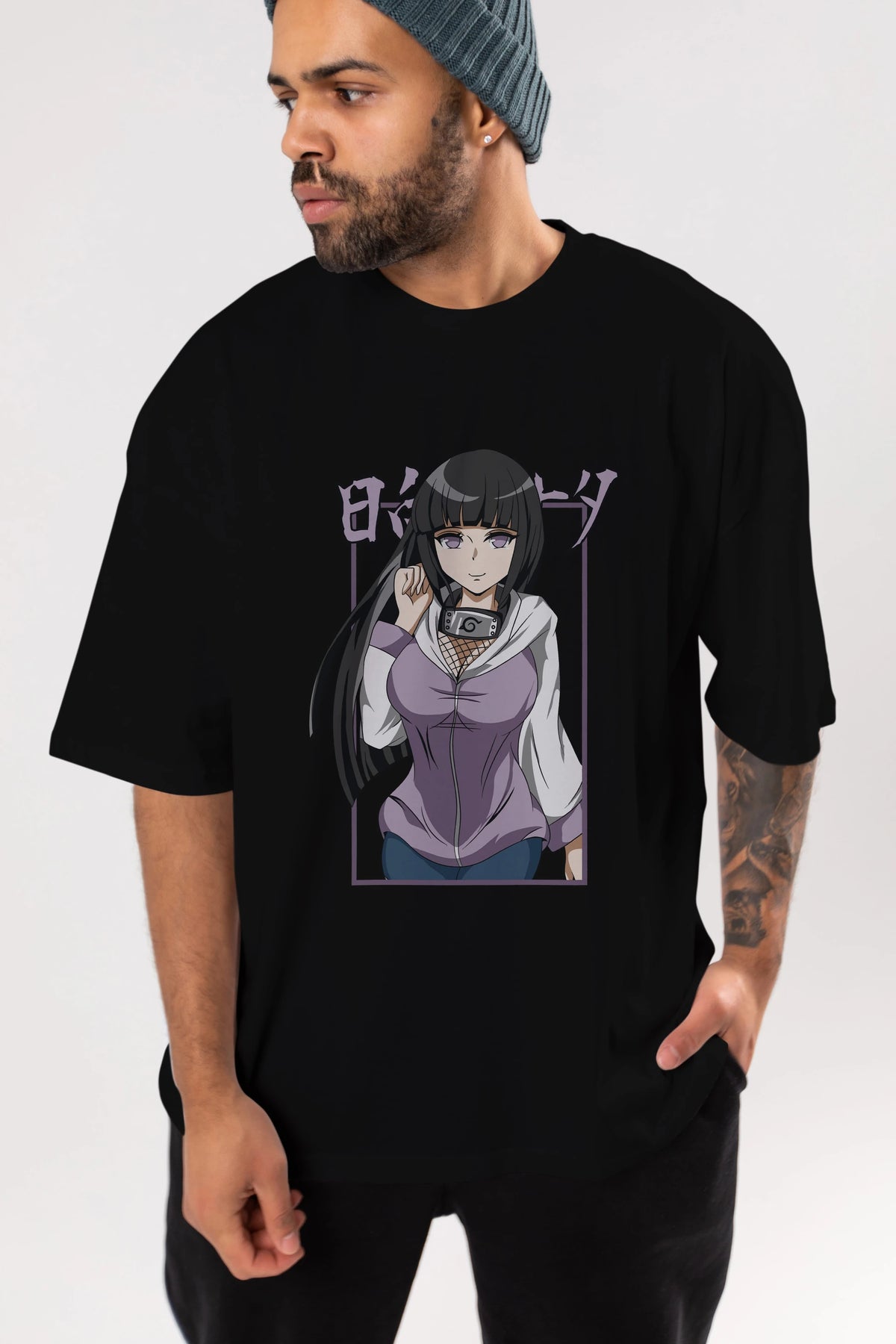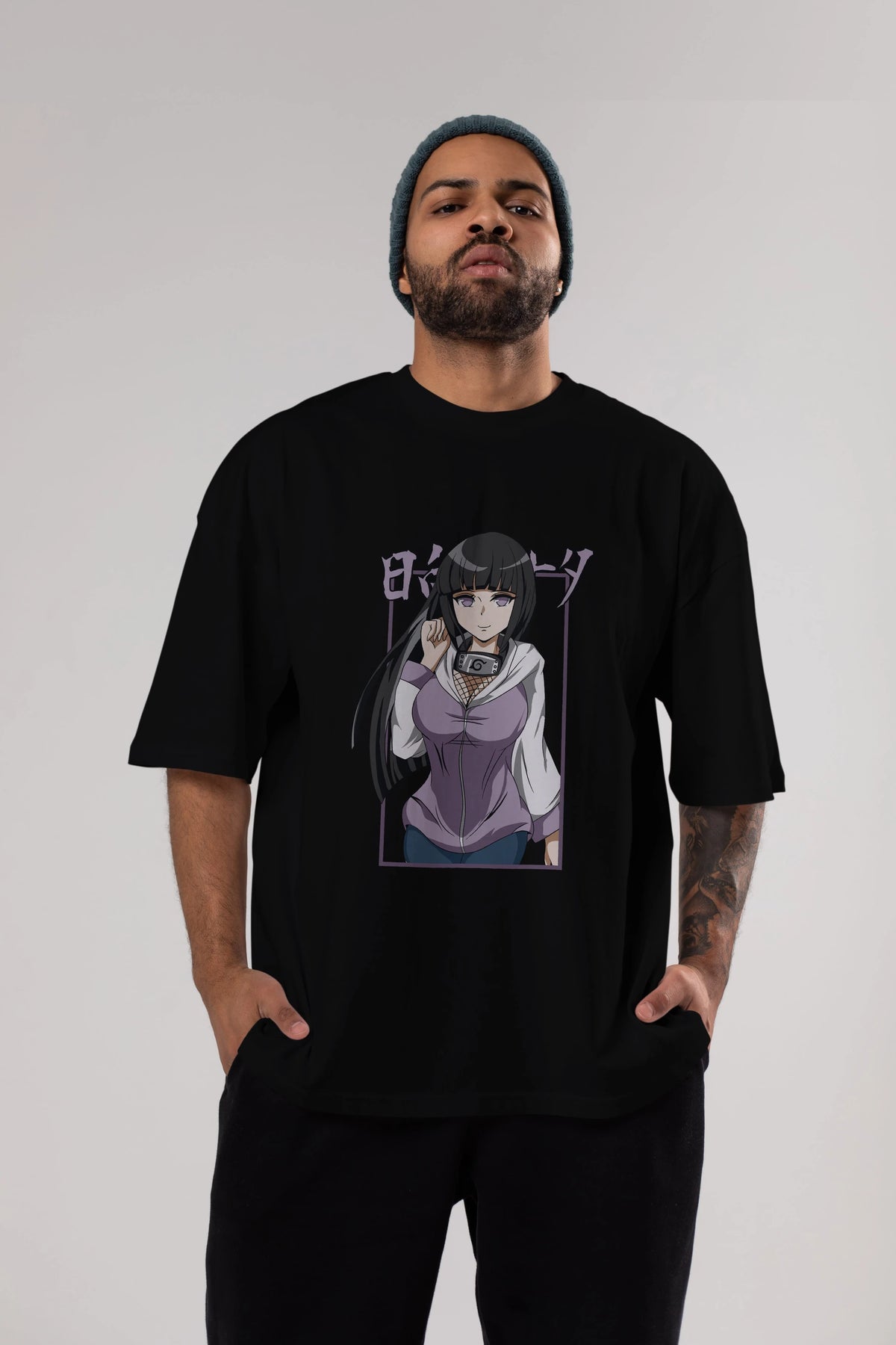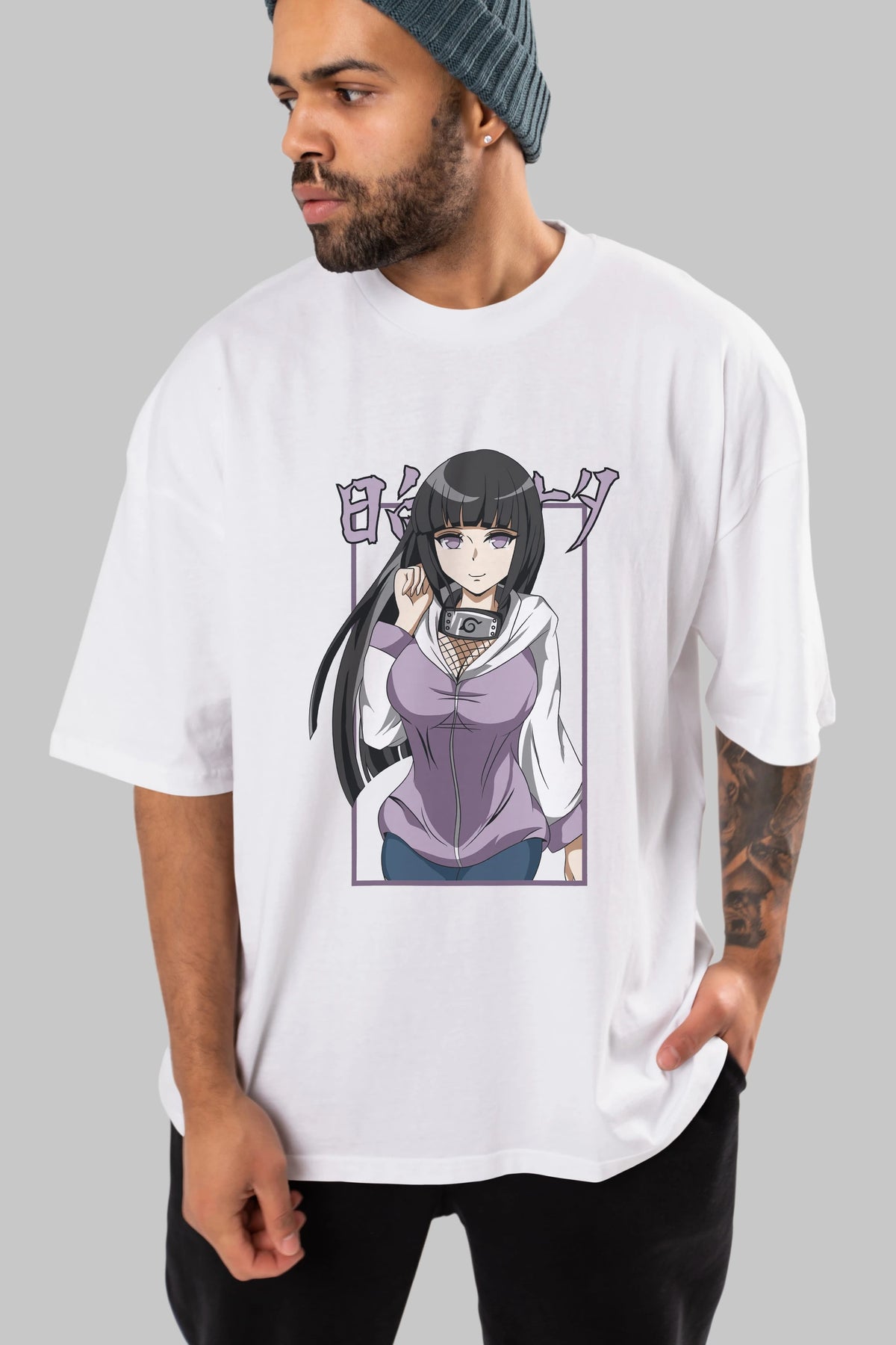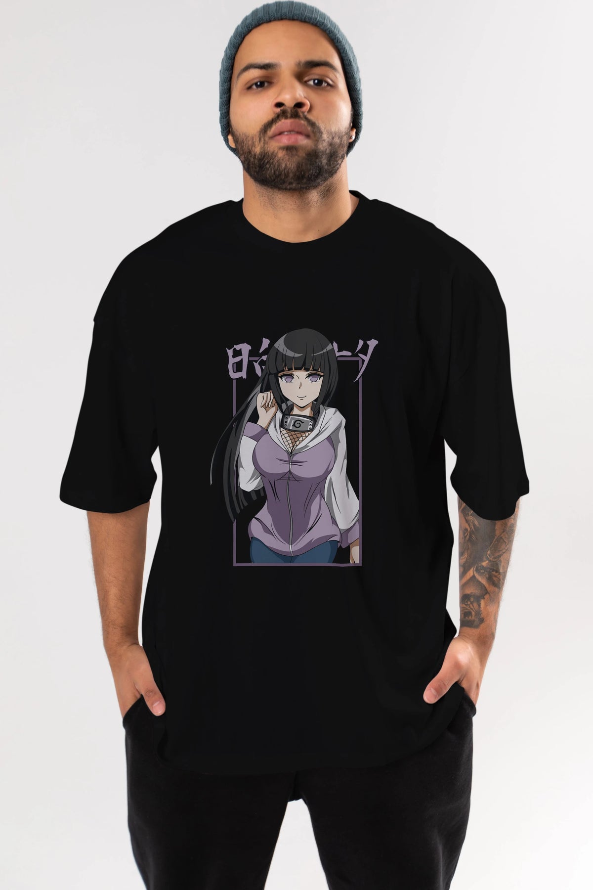 Hinata NARUTO Anime Ön Baskılı Oversize t-shirt %100 pamuk Erkek Kadın Unisex