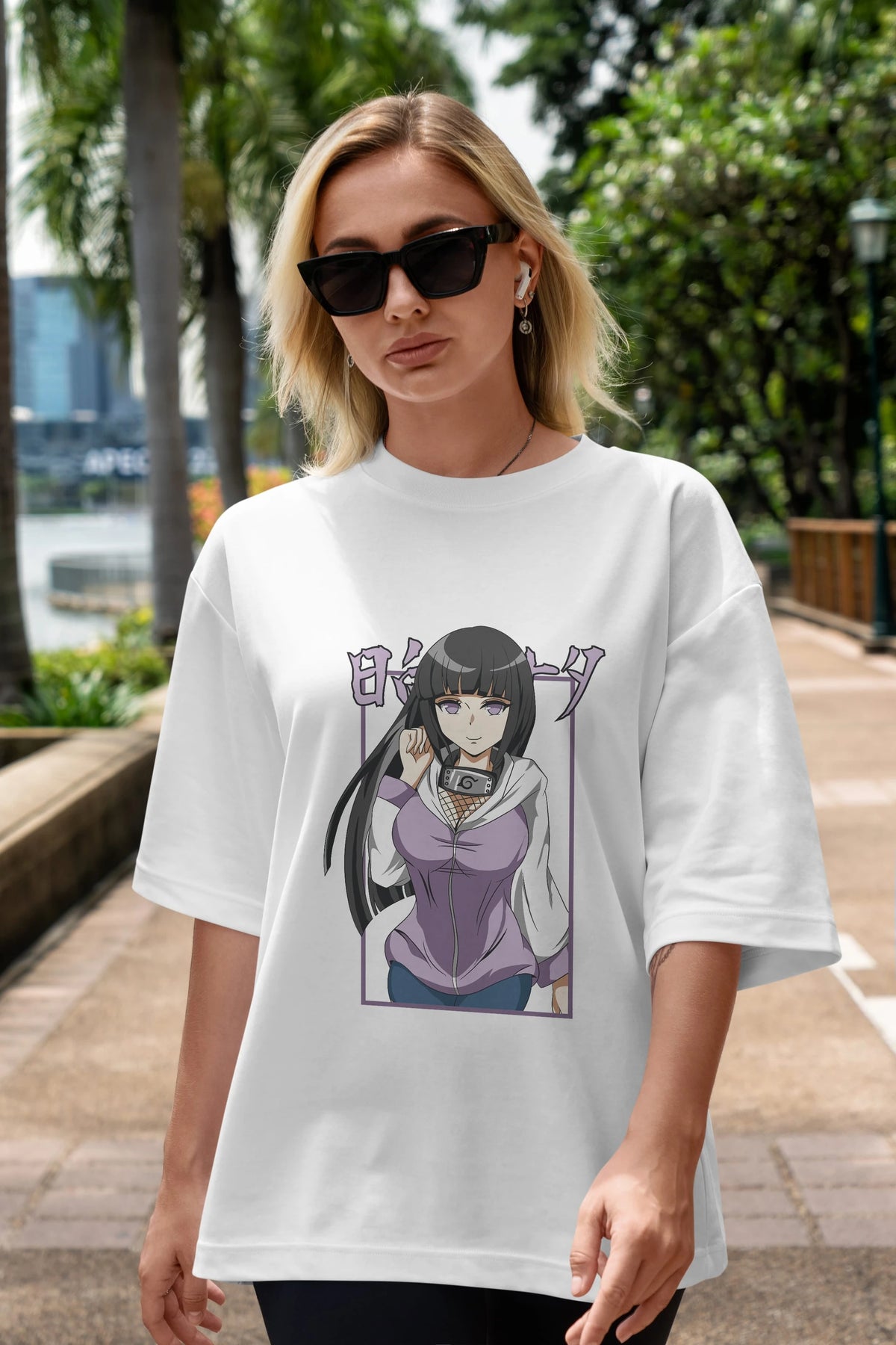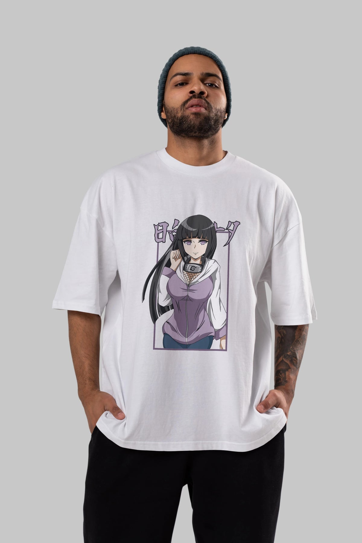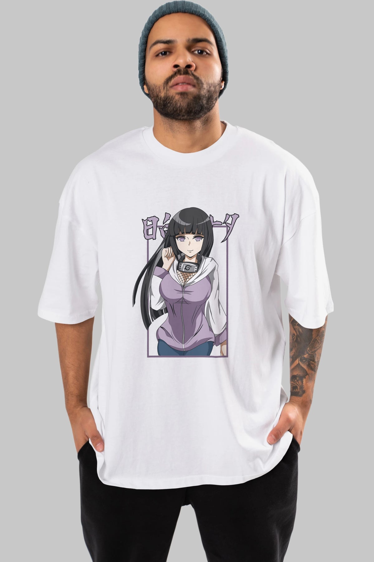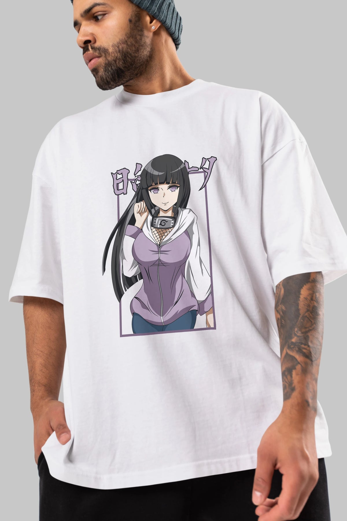Hinata NARUTO Anime Ön Baskılı Oversize t-shirt %100 pamuk Erkek Kadın Unisex