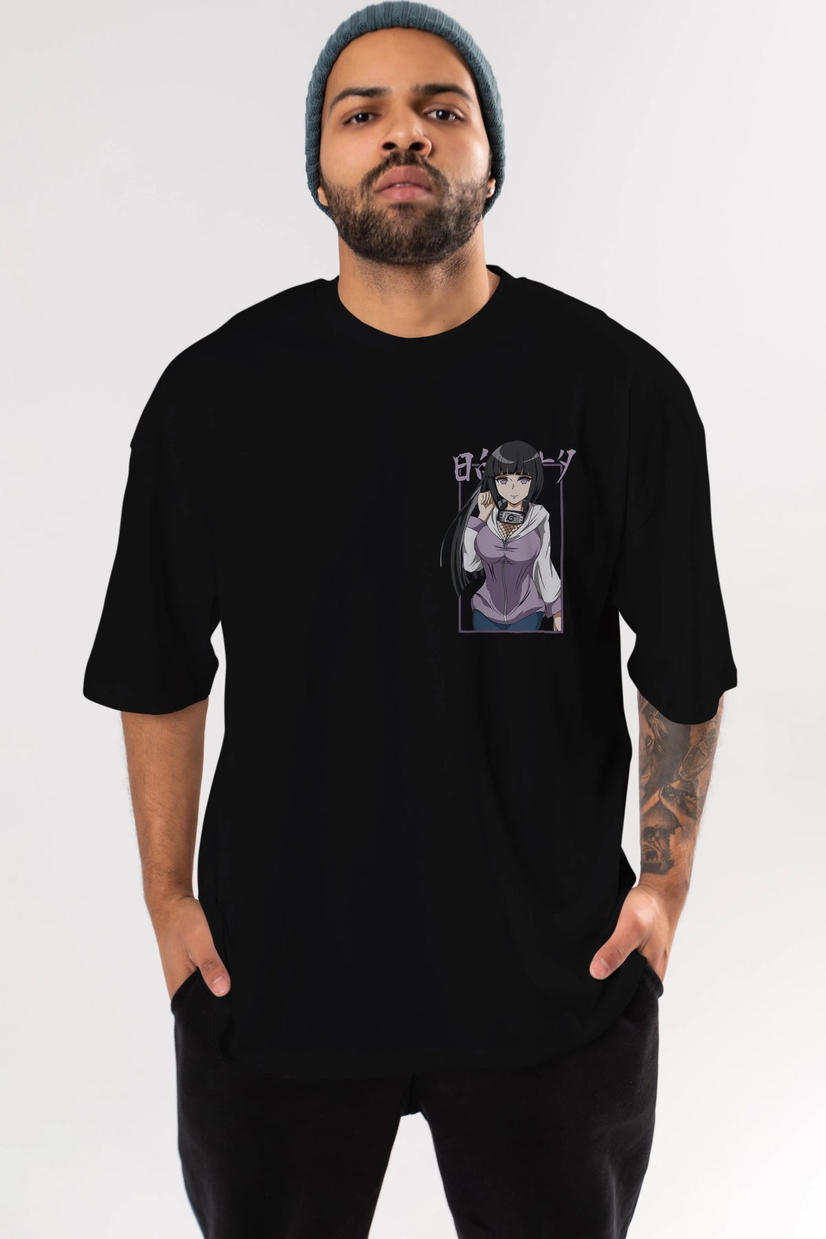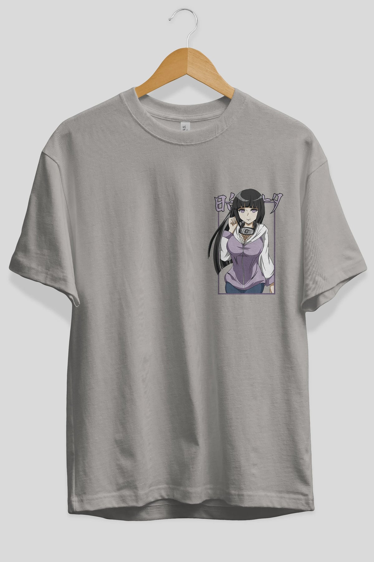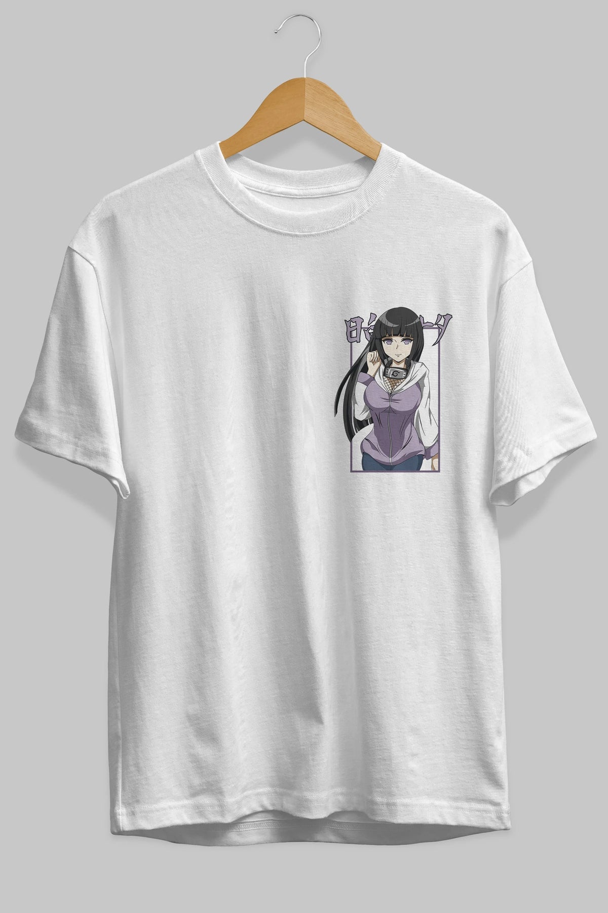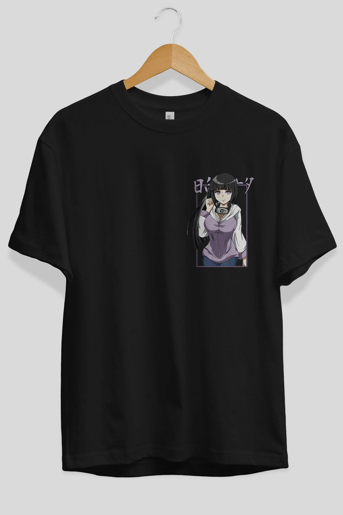 Hinata NARUTO Ön Sol Baskılı Oversize t-shirt Erkek Kadın Unisex %100 Pamuk Bisiklet Yaka tişort